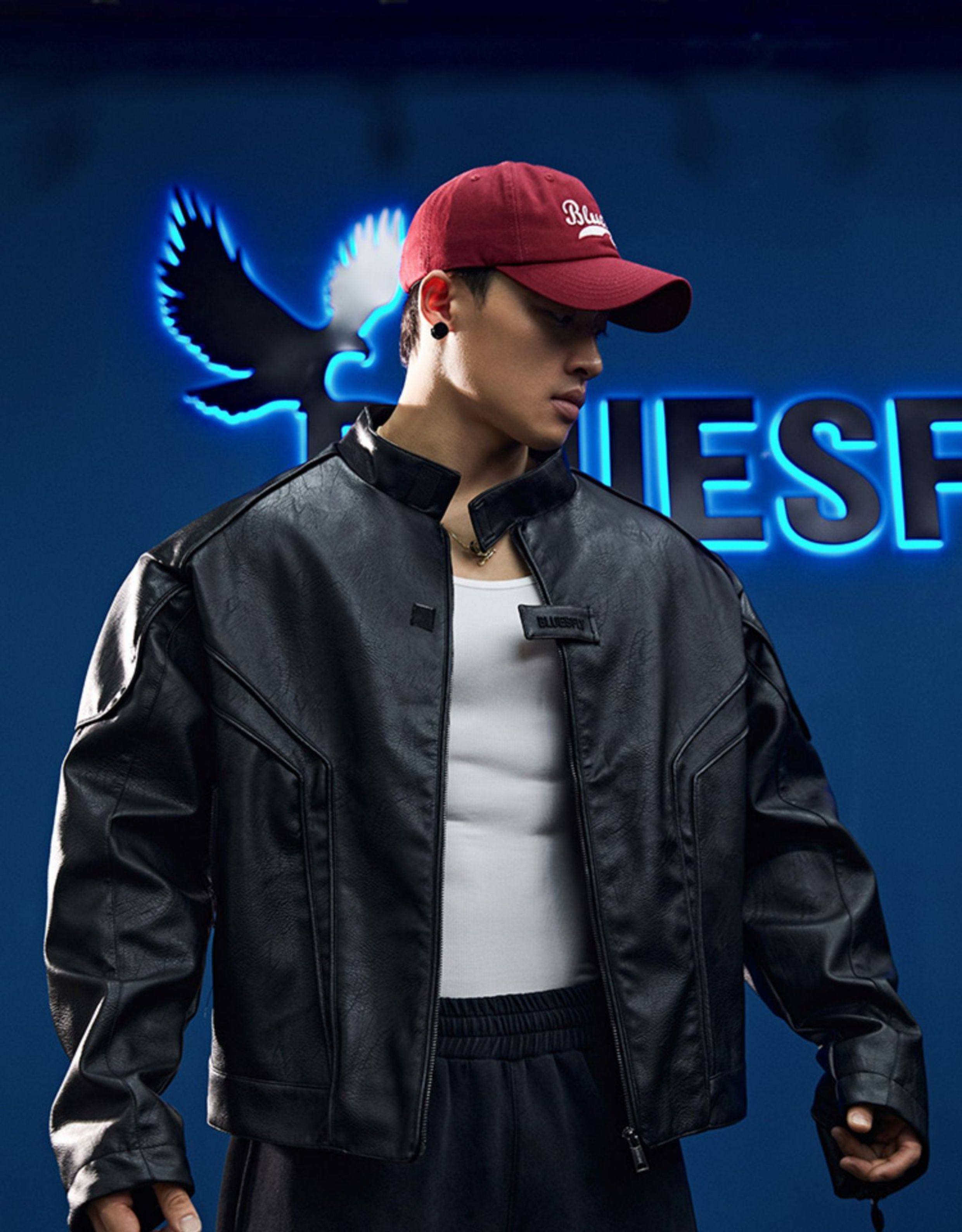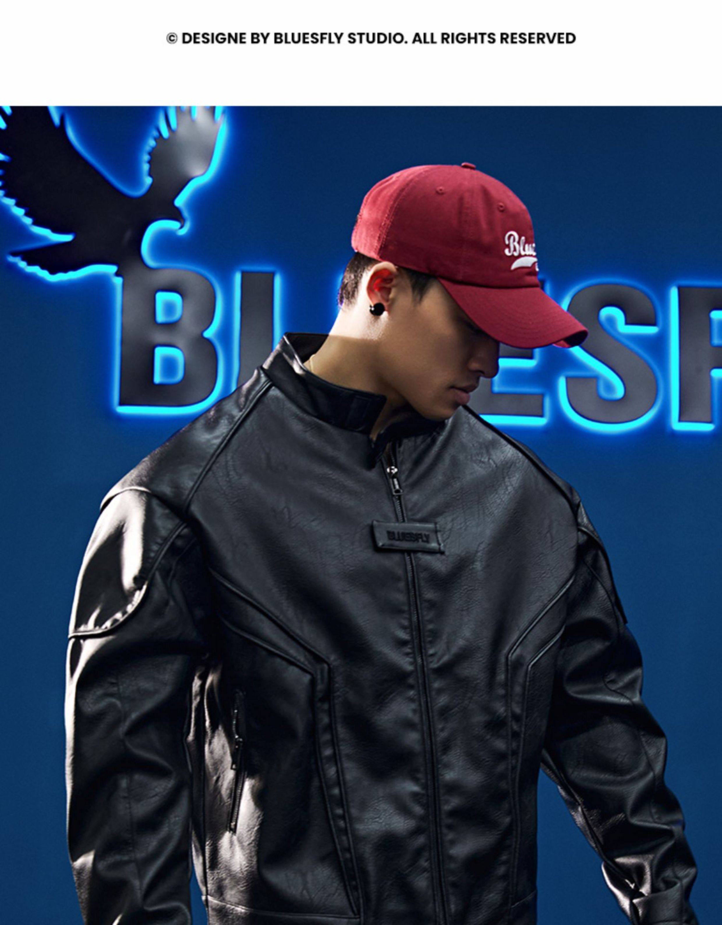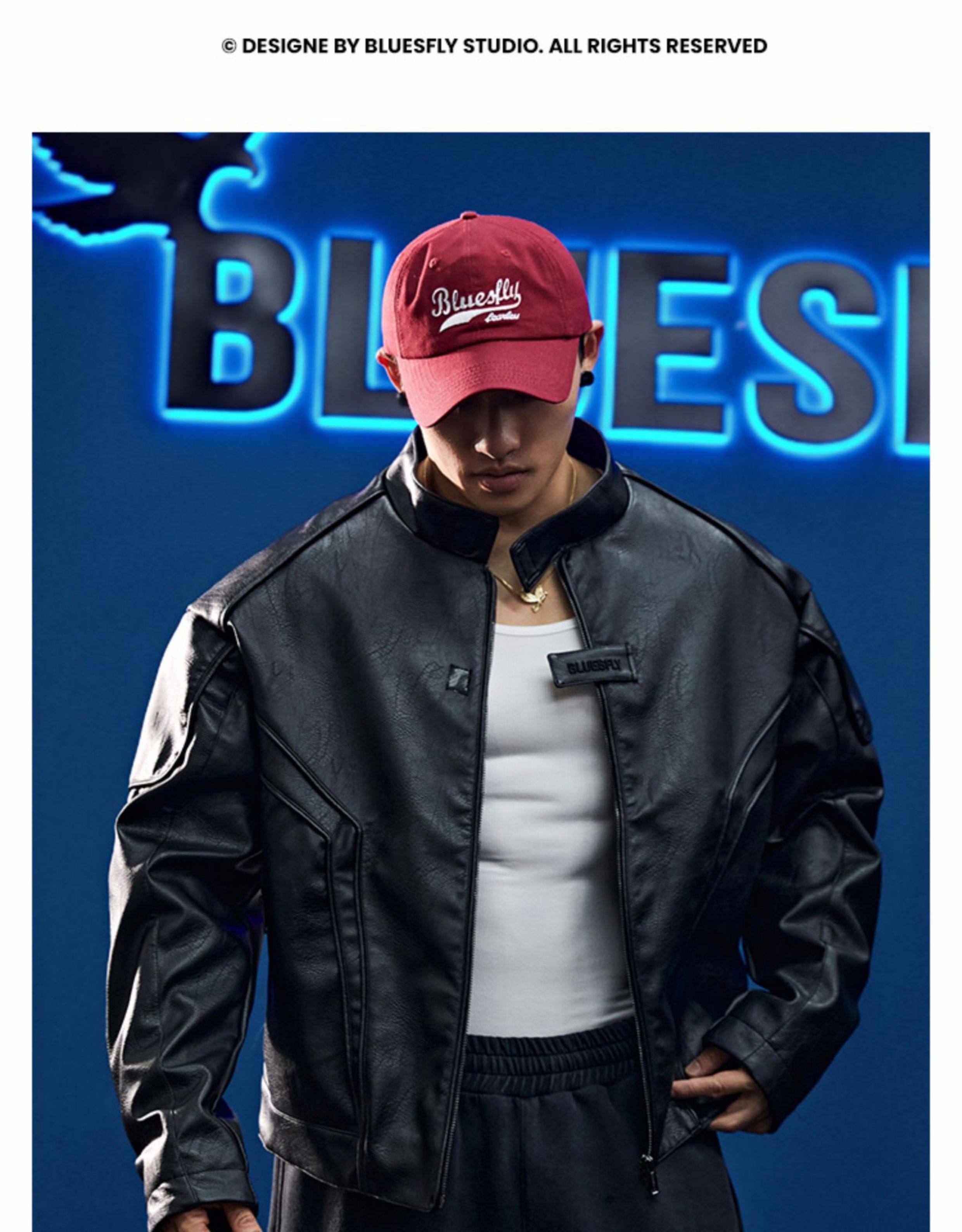 Bluesfly American-Style Leather Jacket for Men, Cool and Stylish Silhouette, Three-Dimensional Cut, Deconstructed Zipper, Biker Jacket