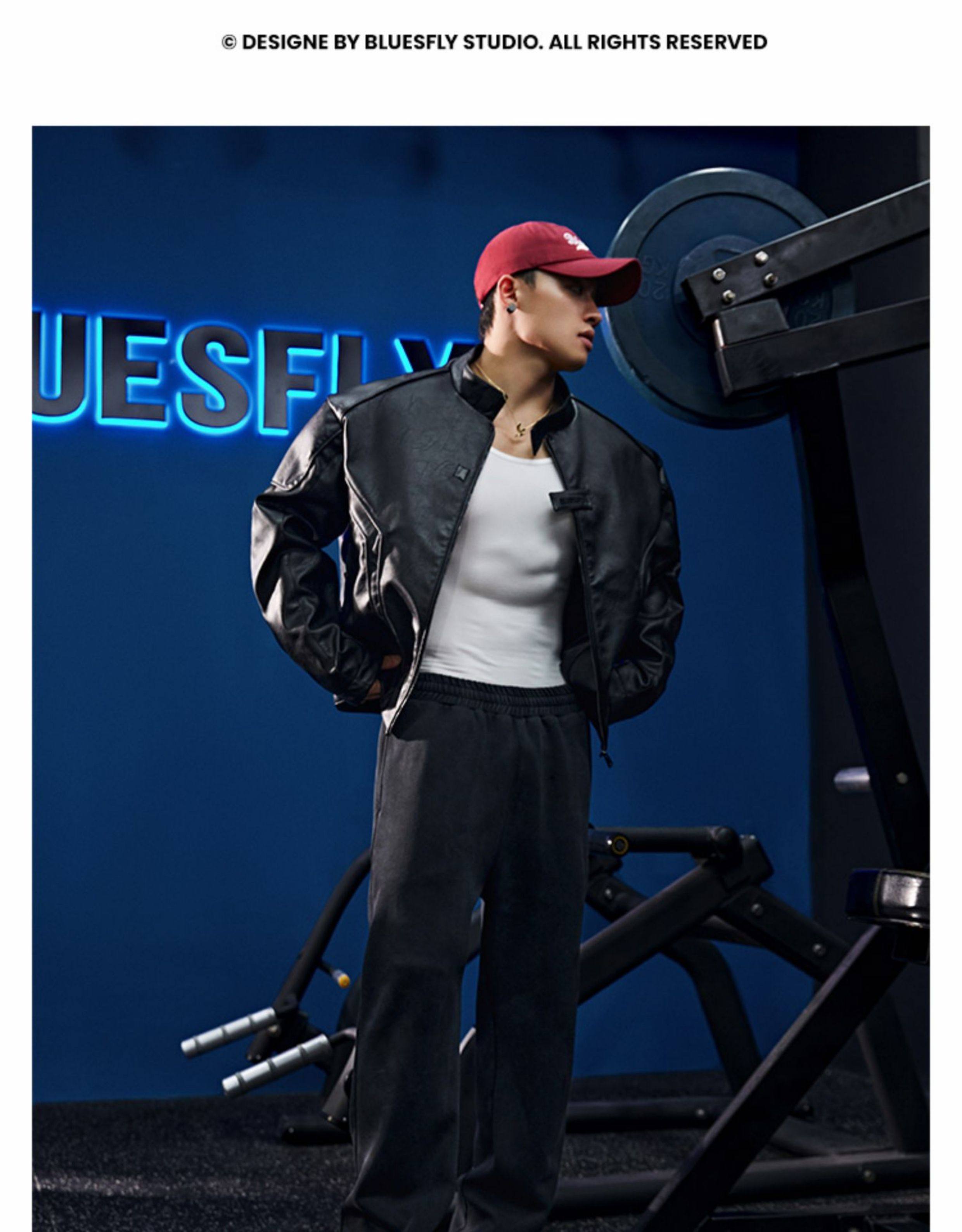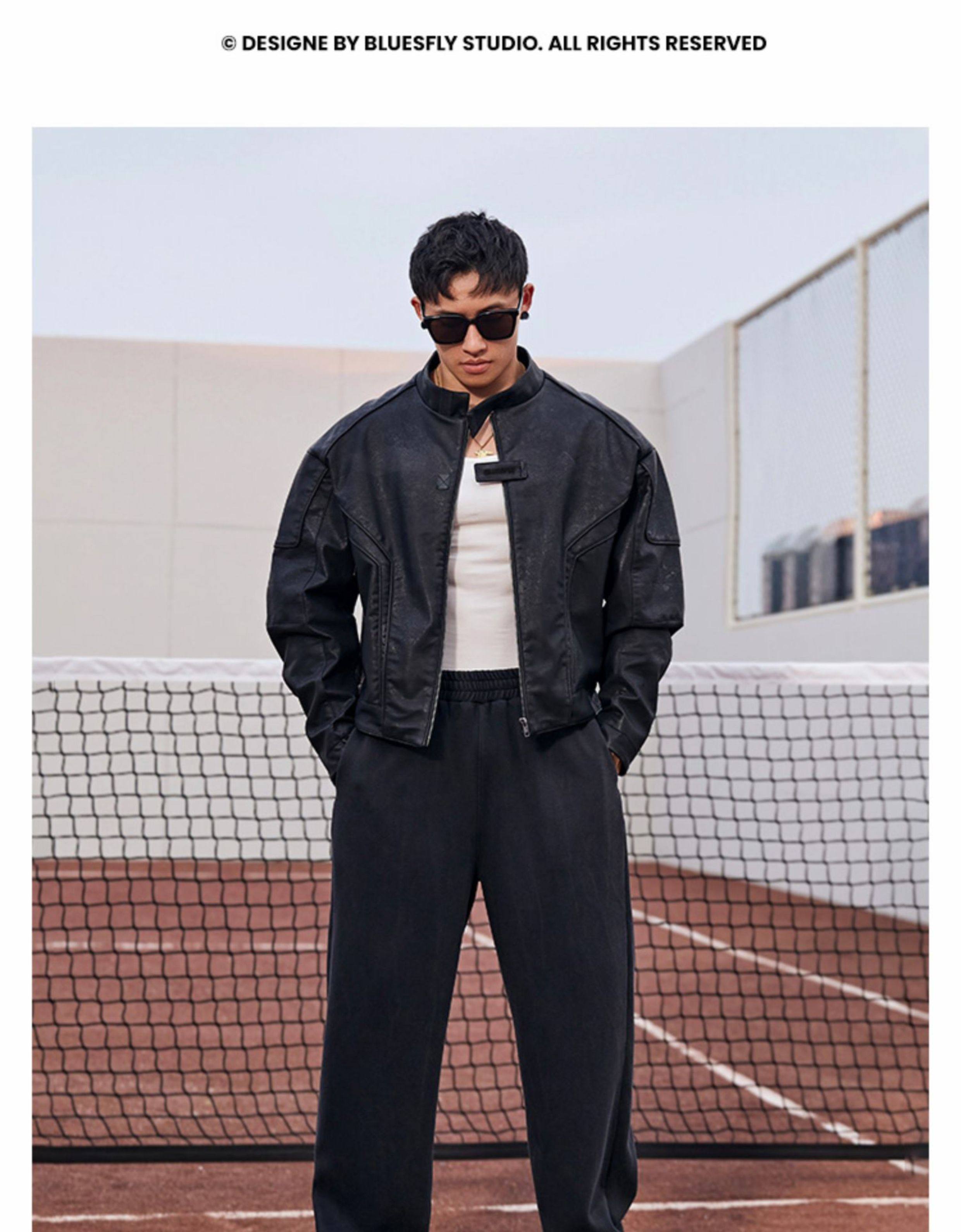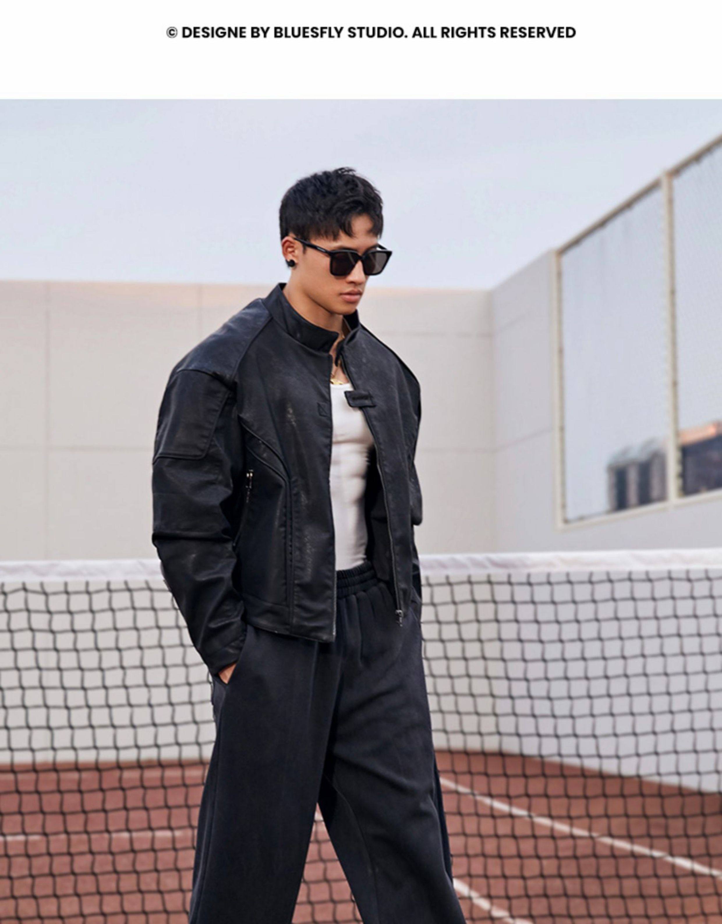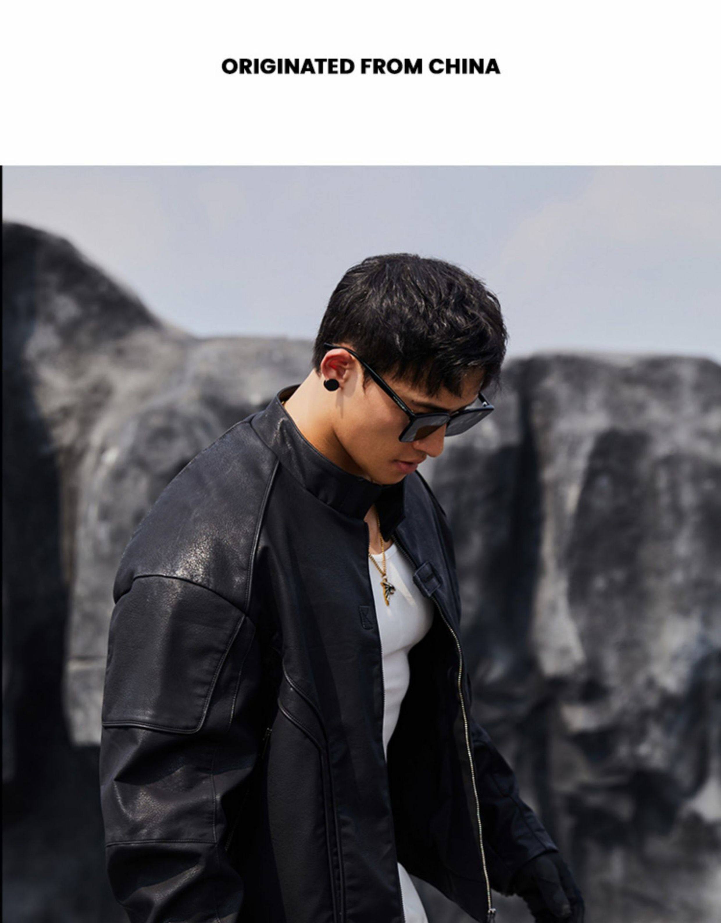 Bluesfly American-Style Leather Jacket for Men, Cool and Stylish Silhouette, Three-Dimensional Cut, Deconstructed Zipper, Biker Jacket