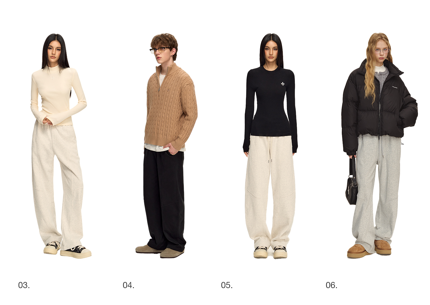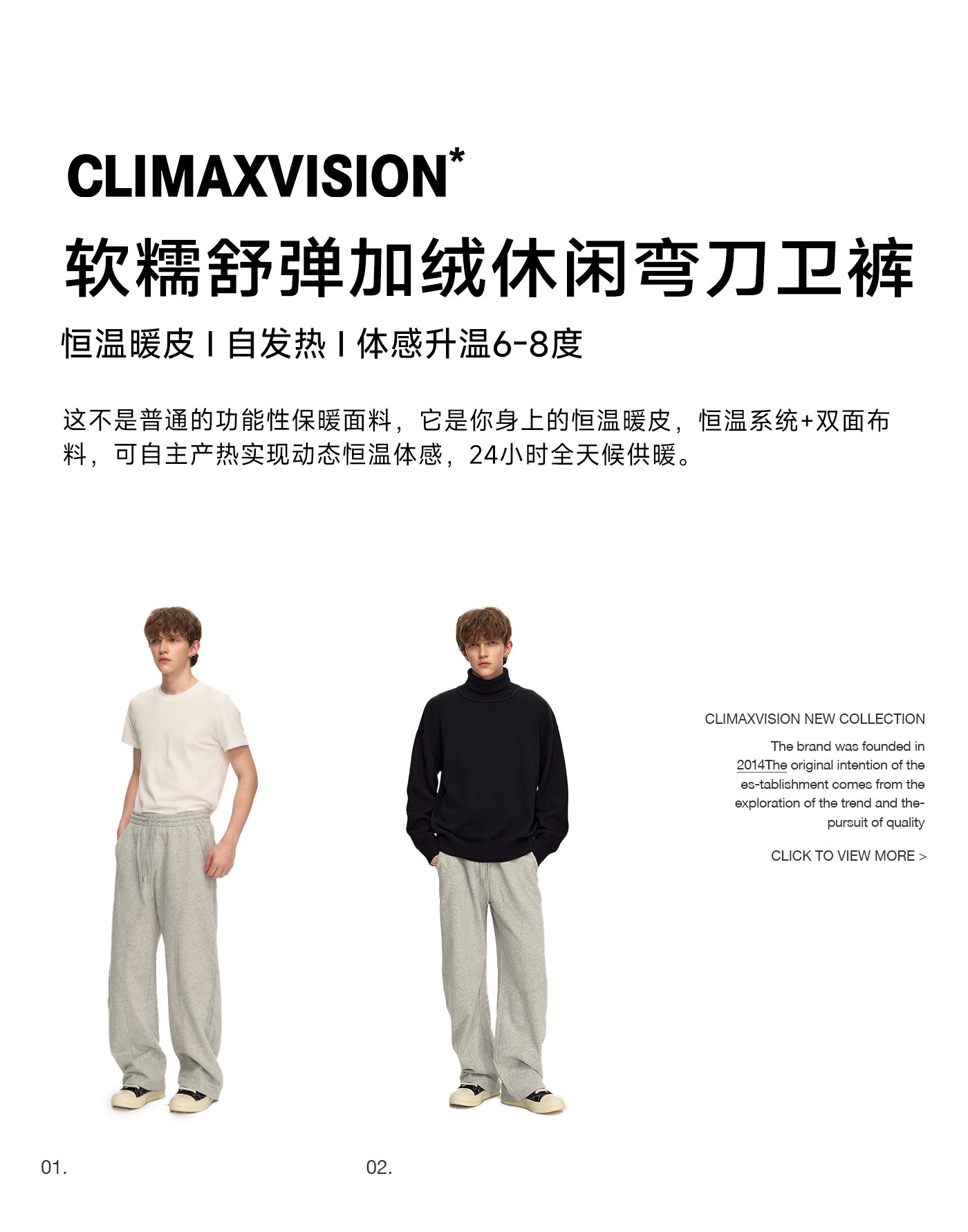 Climax Vision Soft and Comfortable Stretchy Fleece-Lined Casual Curved-Leg Sweatpants Unisex Versatile Loose Straight-Leg Pants