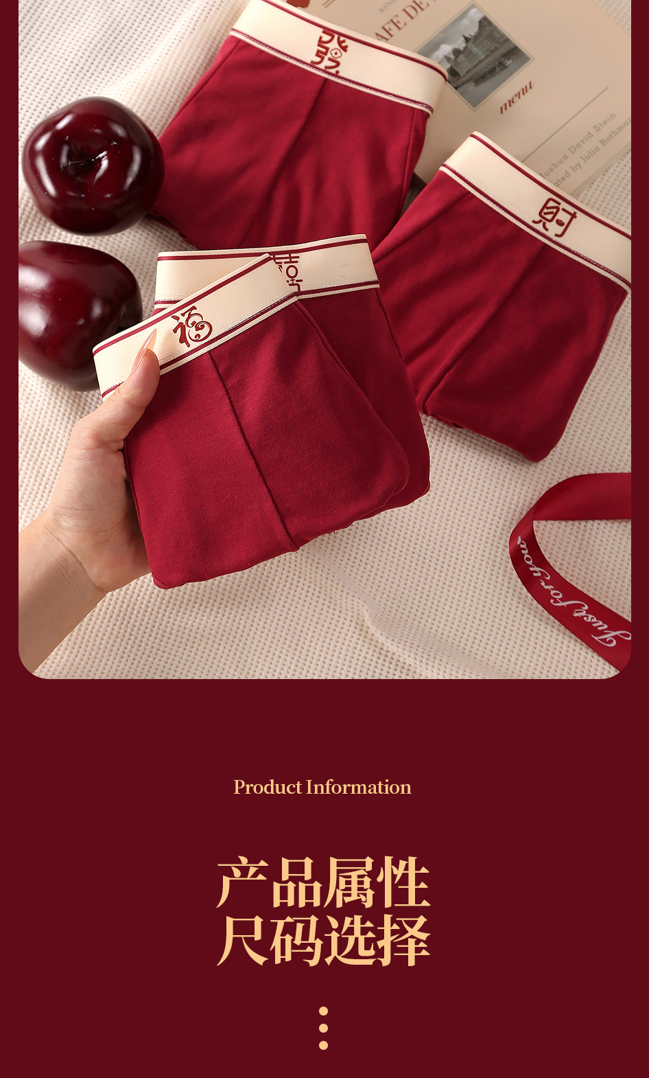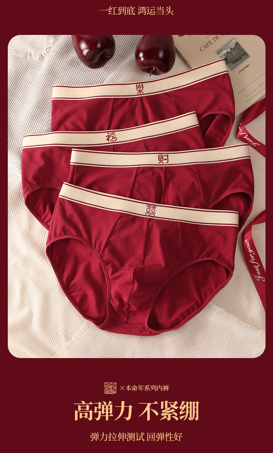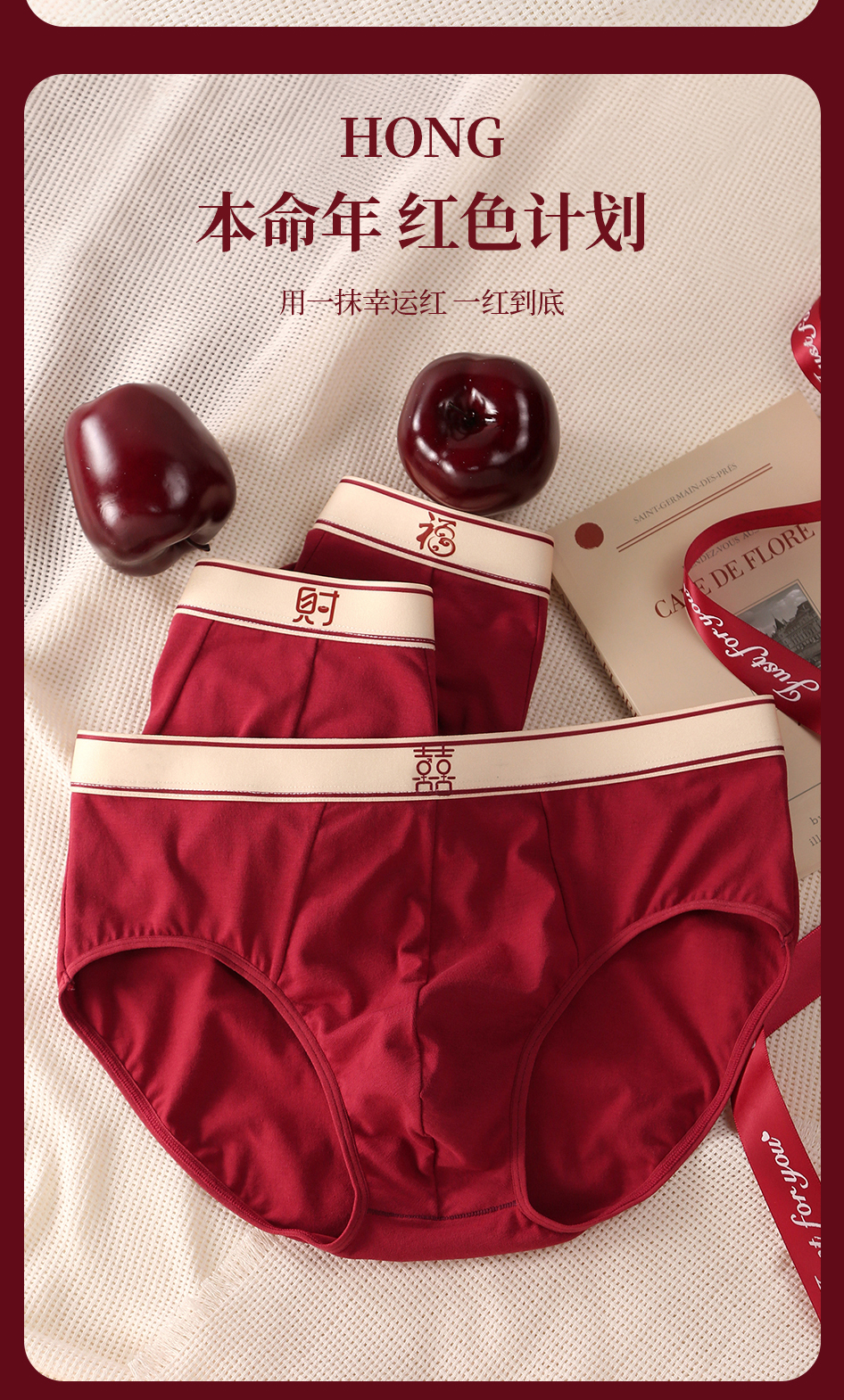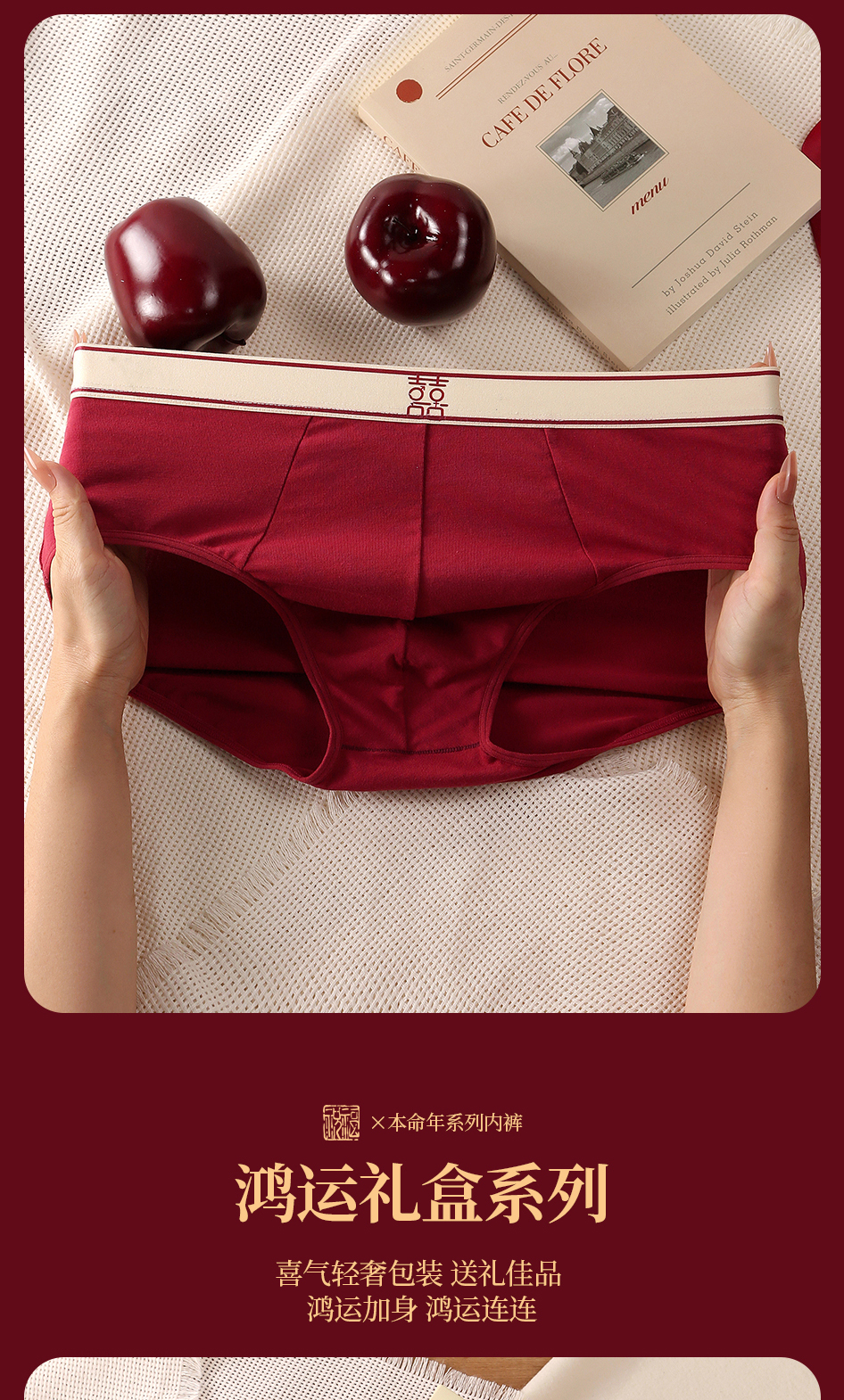 Cat-Themed Men's Underwear for the Year of Birth, Men's Pure Cotton Briefs, Bright Red, 2025 New Model, New Year's Wedding Gift Shorts