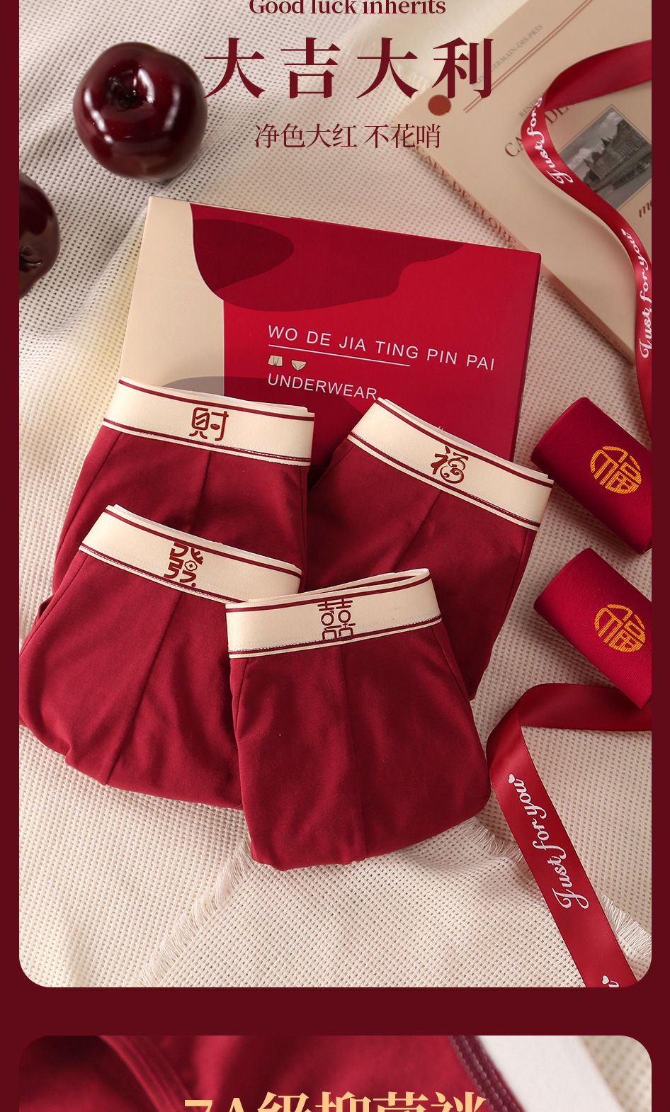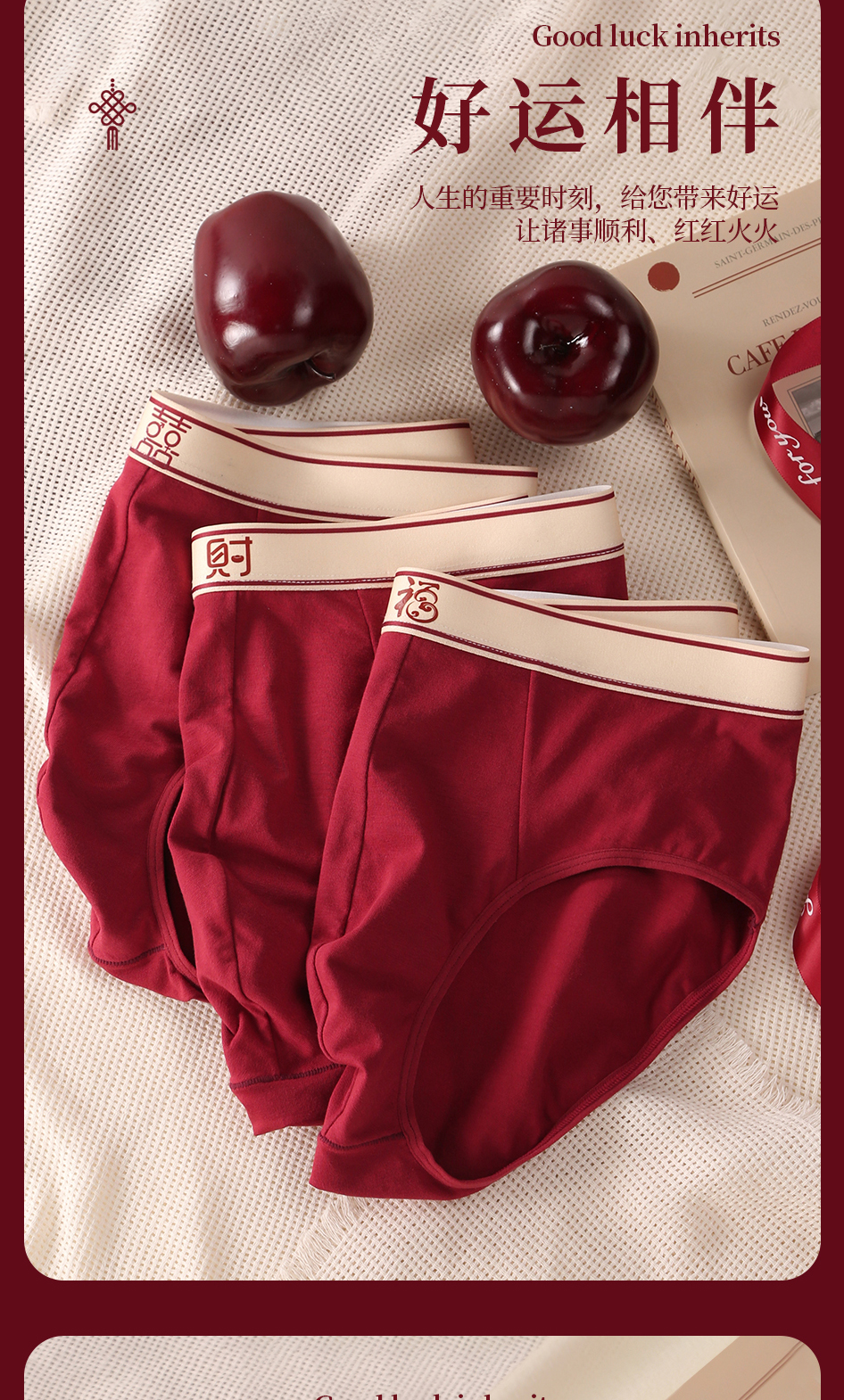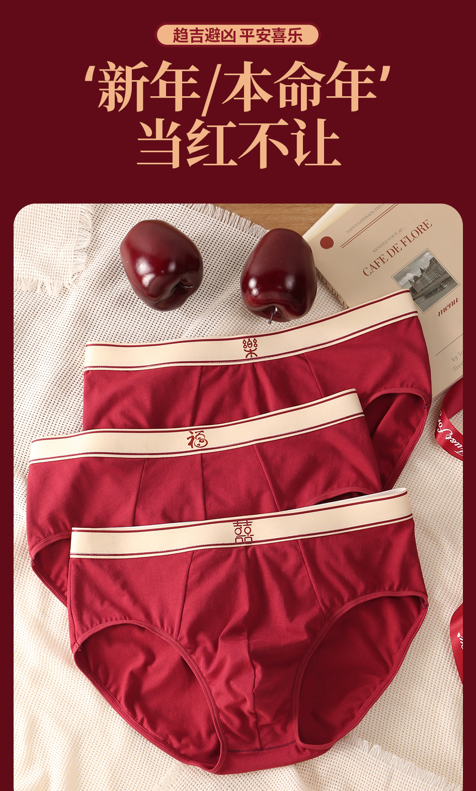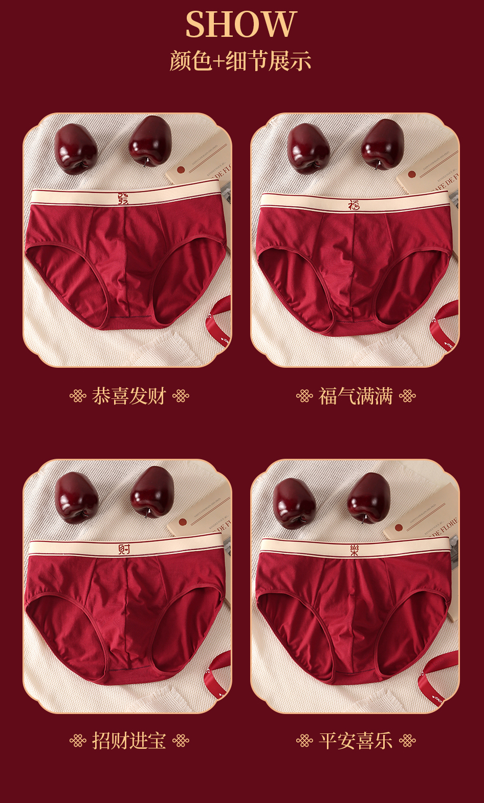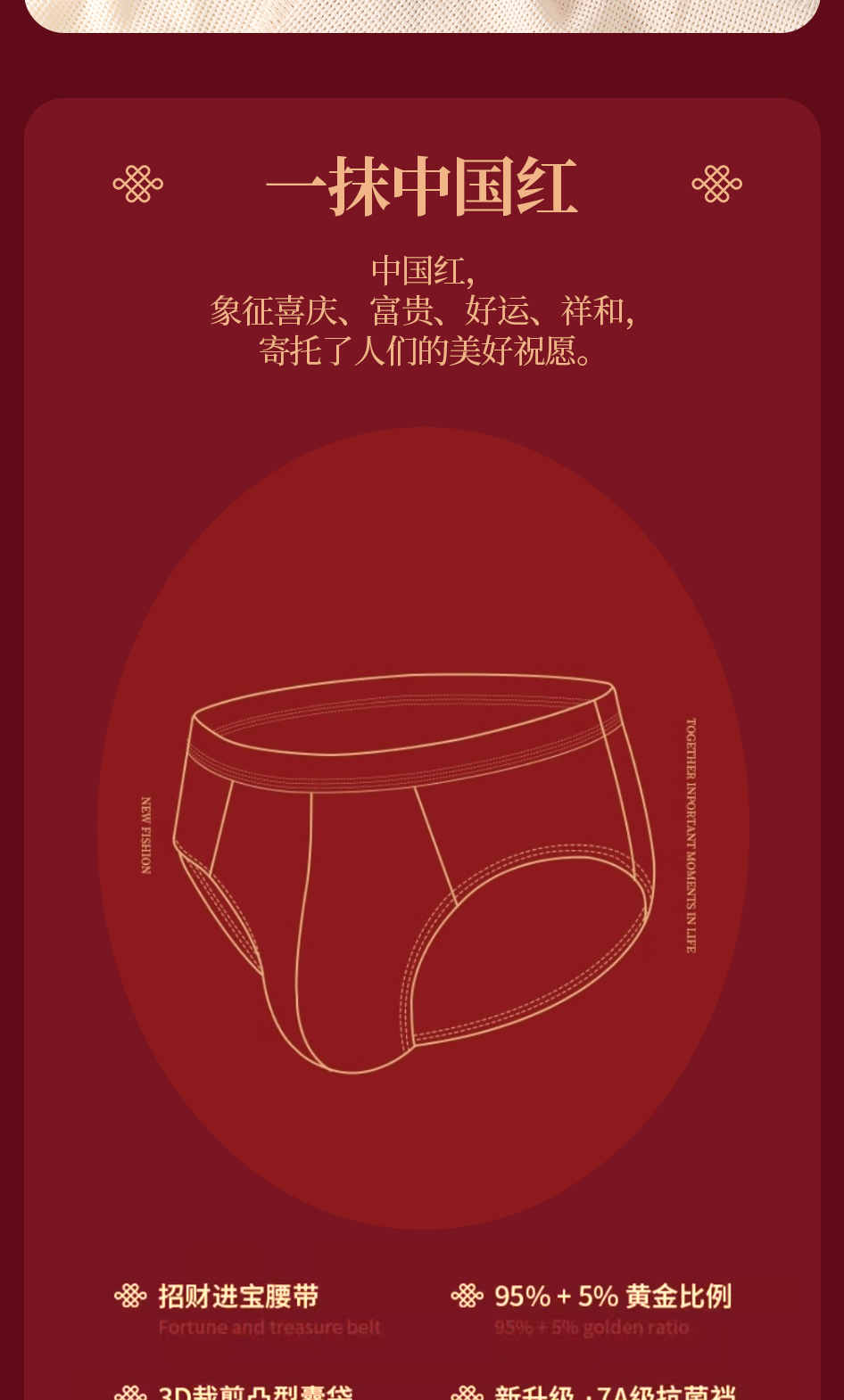 Cat-Themed Men's Underwear for the Year of Birth, Men's Pure Cotton Briefs, Bright Red, 2025 New Model, New Year's Wedding Gift Shorts