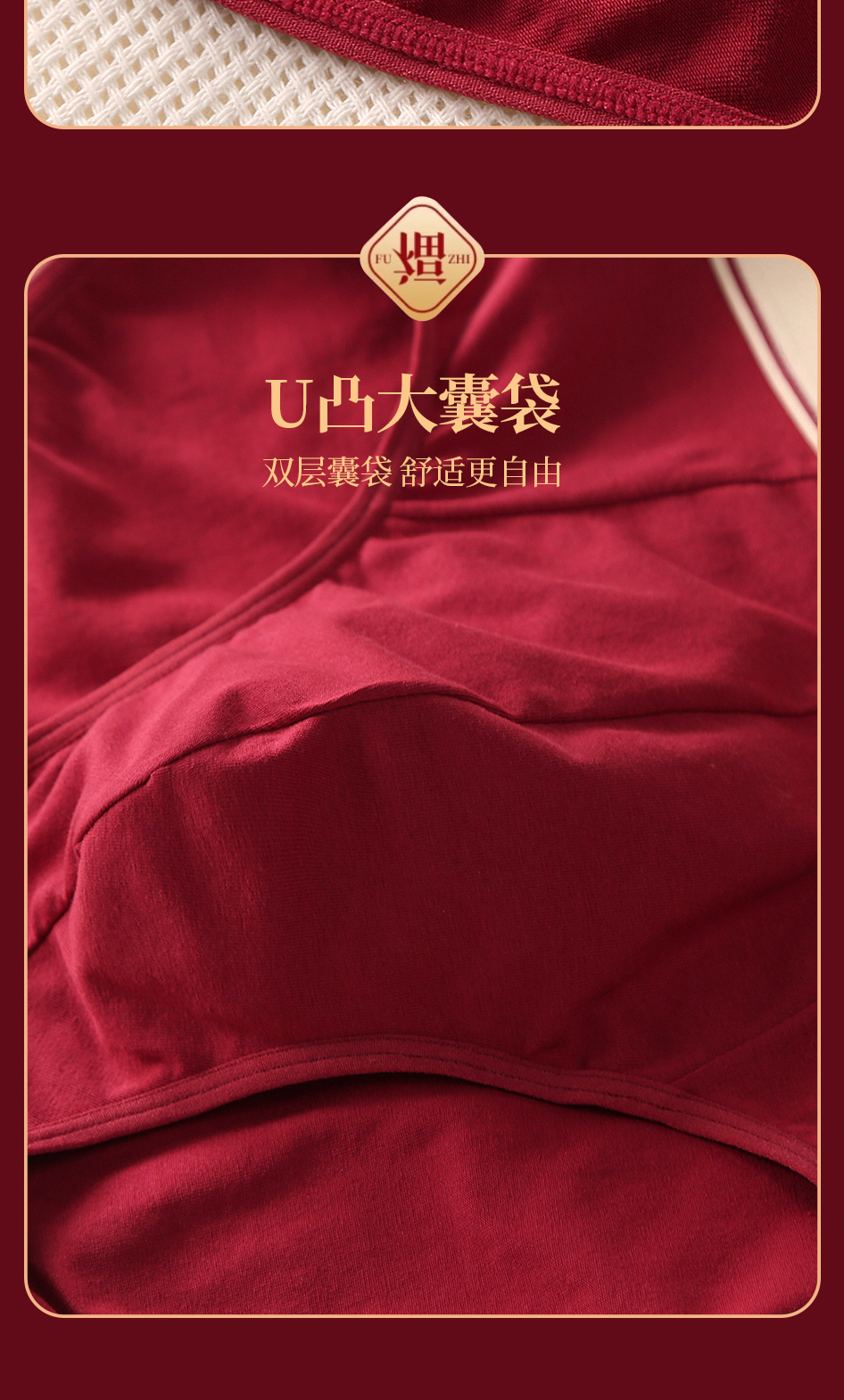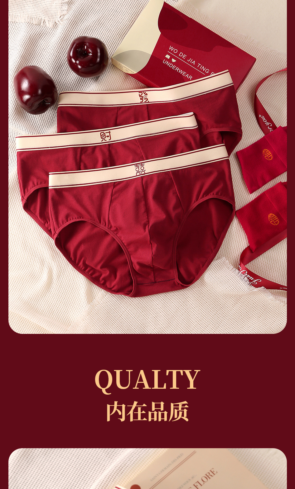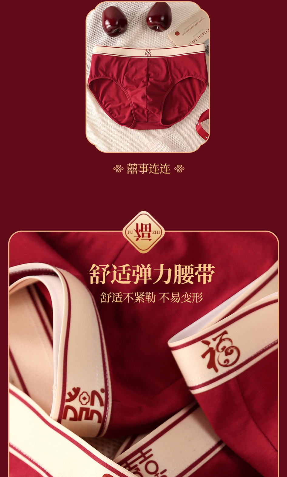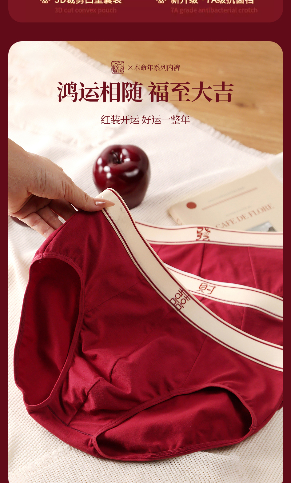 Cat-Themed Men's Underwear for the Year of Birth, Men's Pure Cotton Briefs, Bright Red, 2025 New Model, New Year's Wedding Gift Shorts