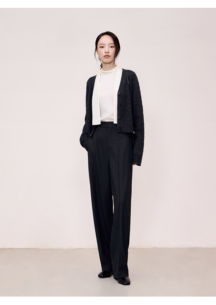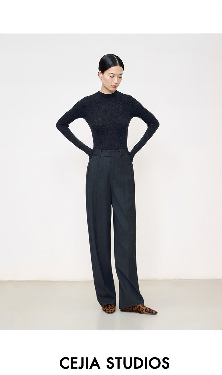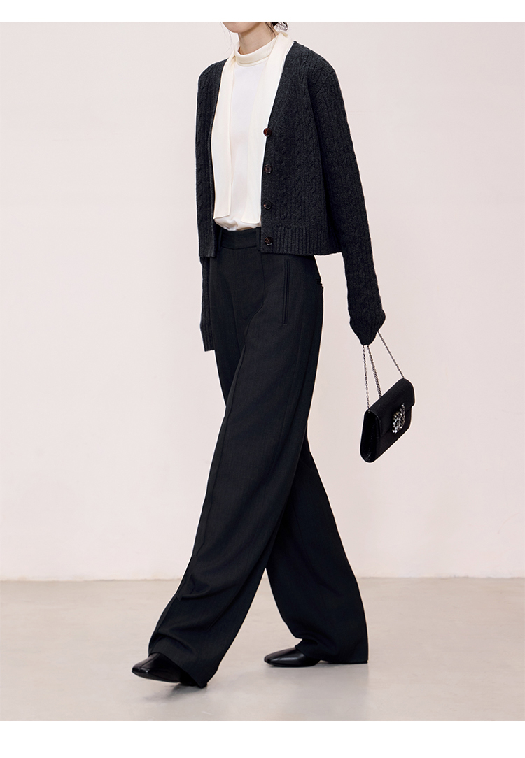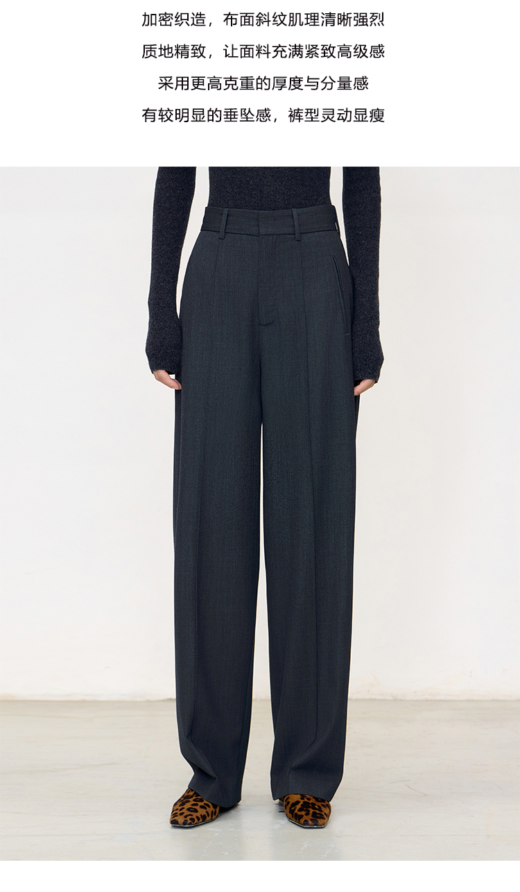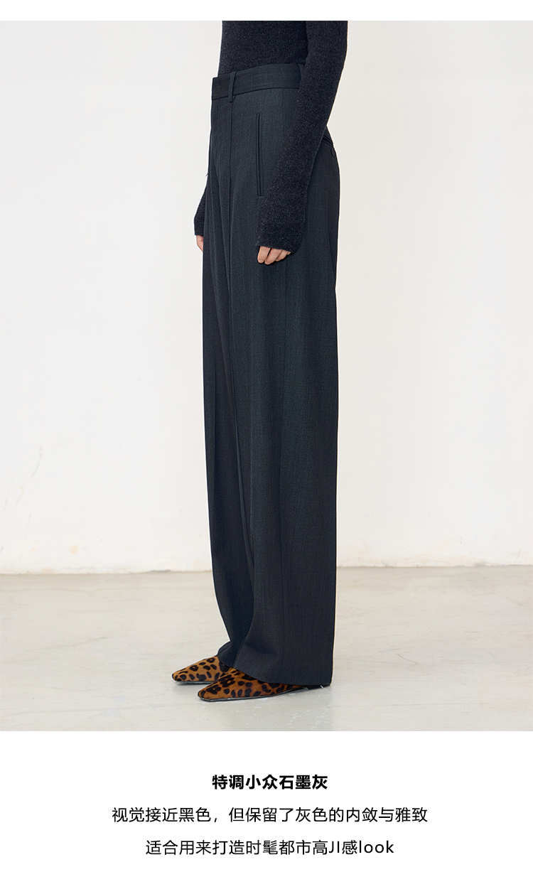 Cejia Dark Gray Sheep Wool Versatile Commuter Suit Pants for Women, Slimming Straight Wide-Leg Trousers, 2025 Autumn and Winter New Style