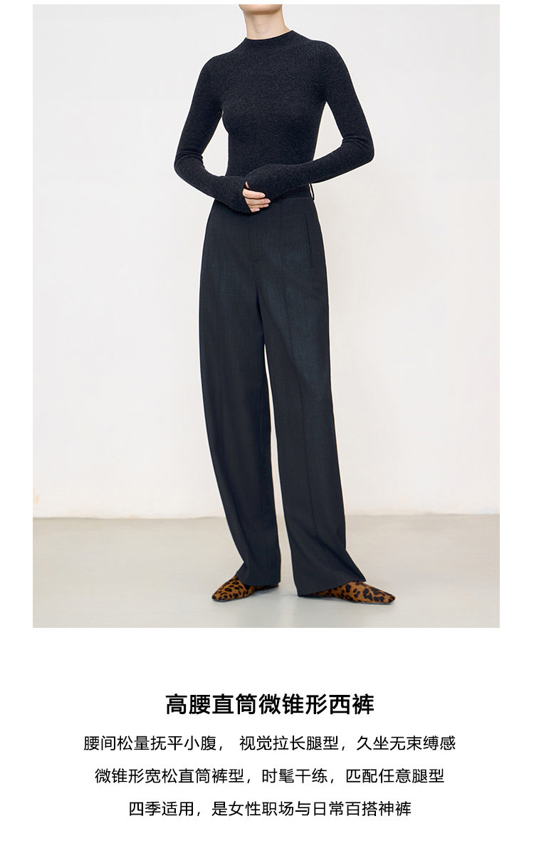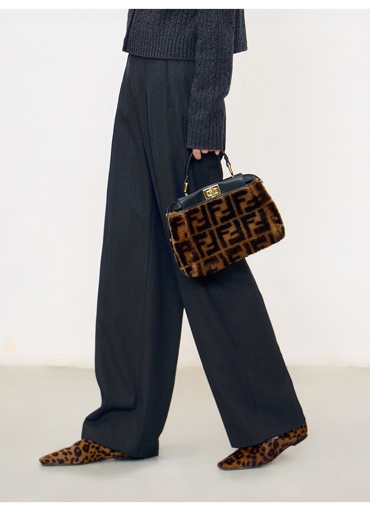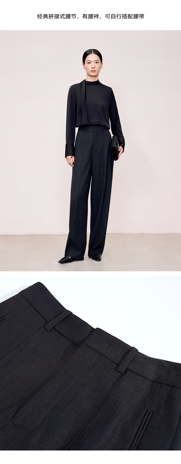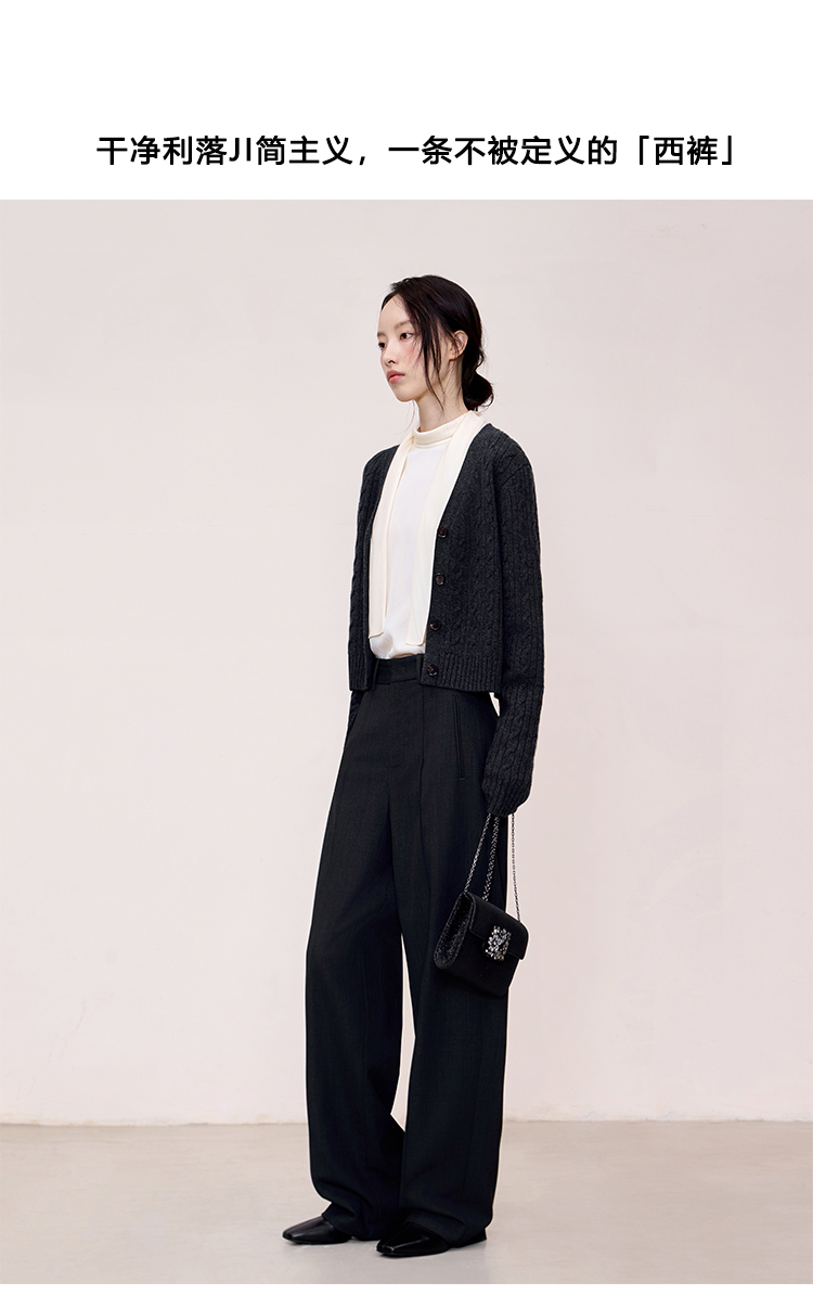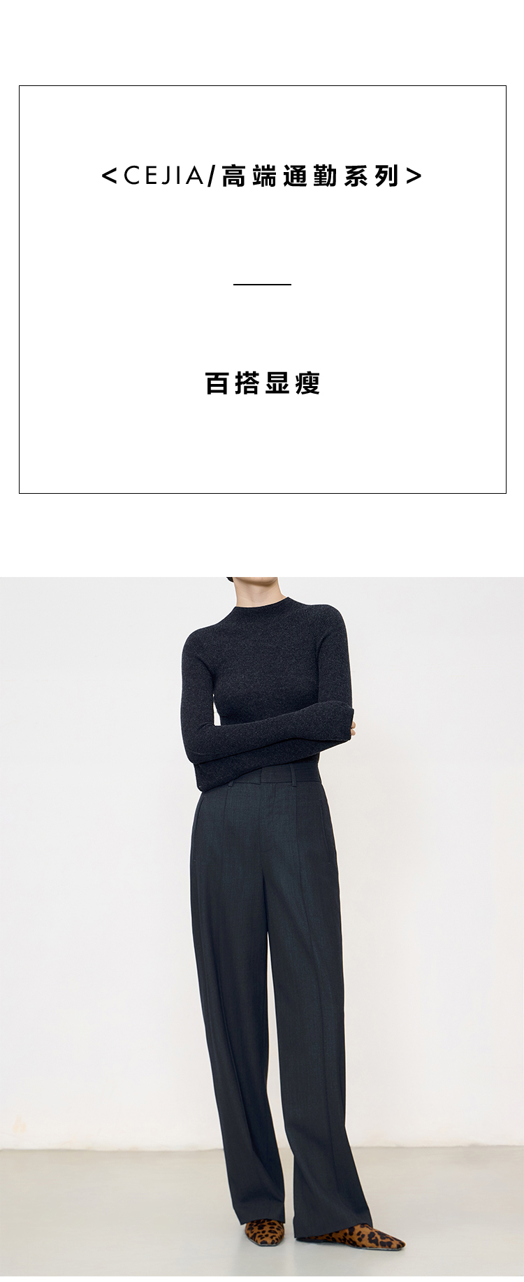 Cejia Dark Gray Sheep Wool Versatile Commuter Suit Pants for Women, Slimming Straight Wide-Leg Trousers, 2025 Autumn and Winter New Style