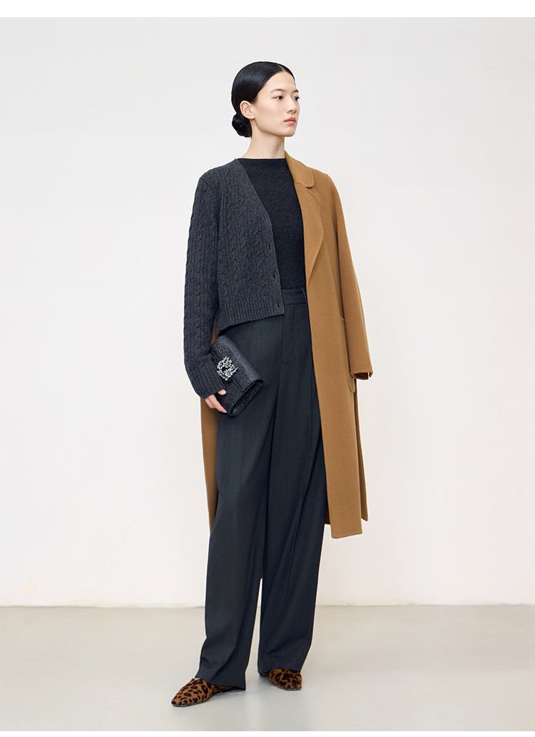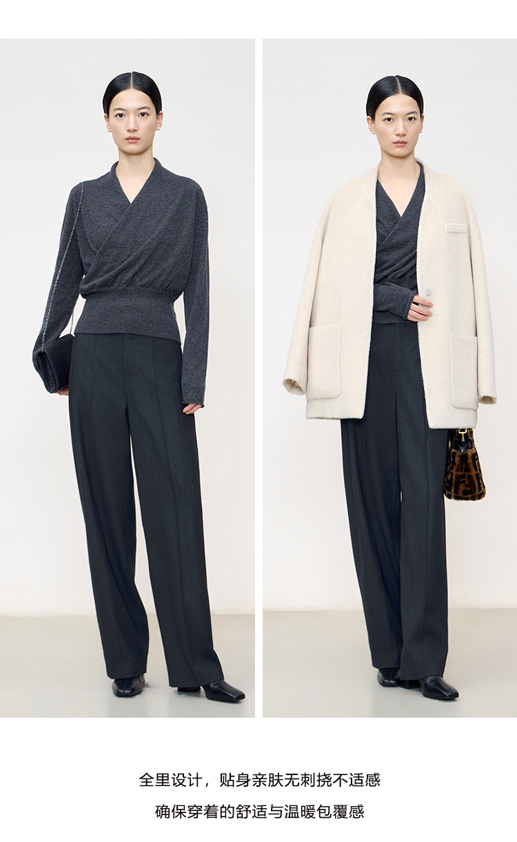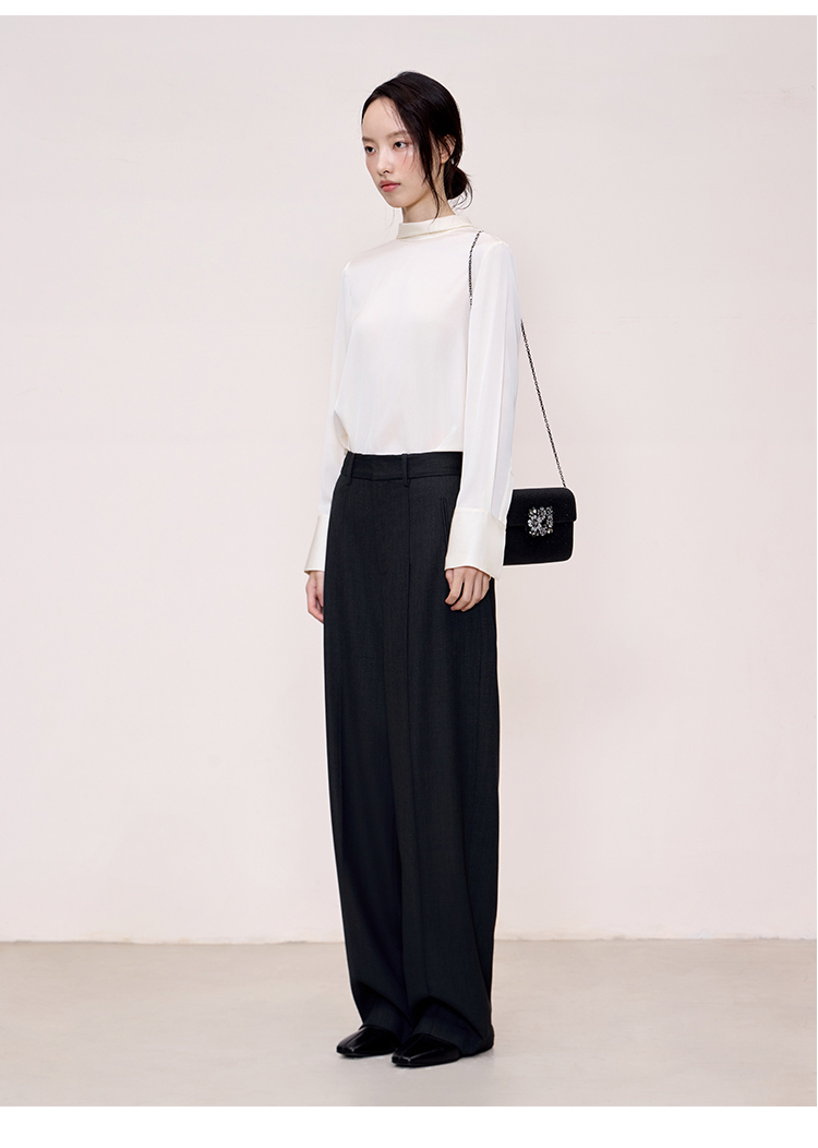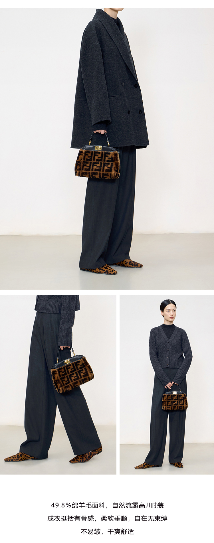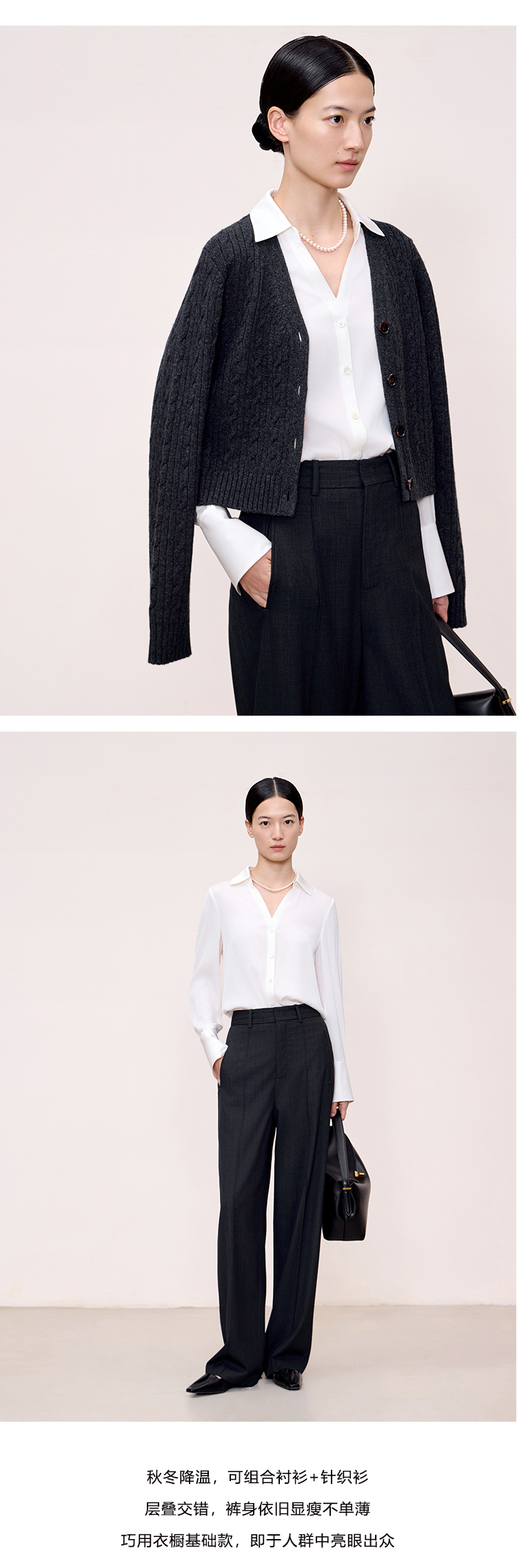 Cejia Dark Gray Sheep Wool Versatile Commuter Suit Pants for Women, Slimming Straight Wide-Leg Trousers, 2025 Autumn and Winter New Style