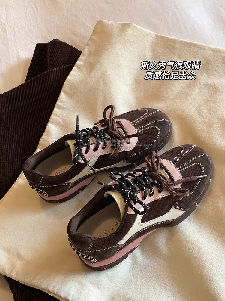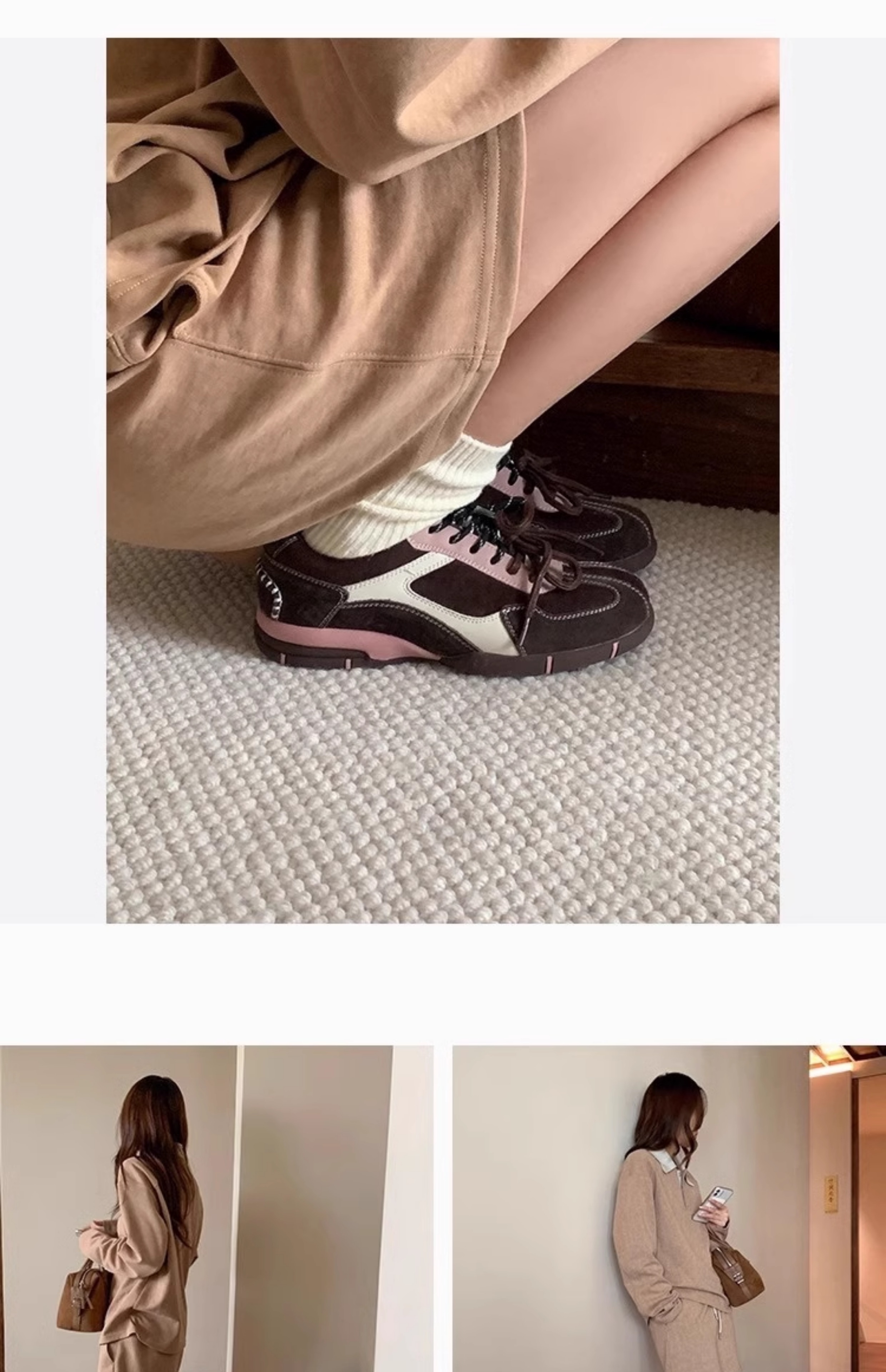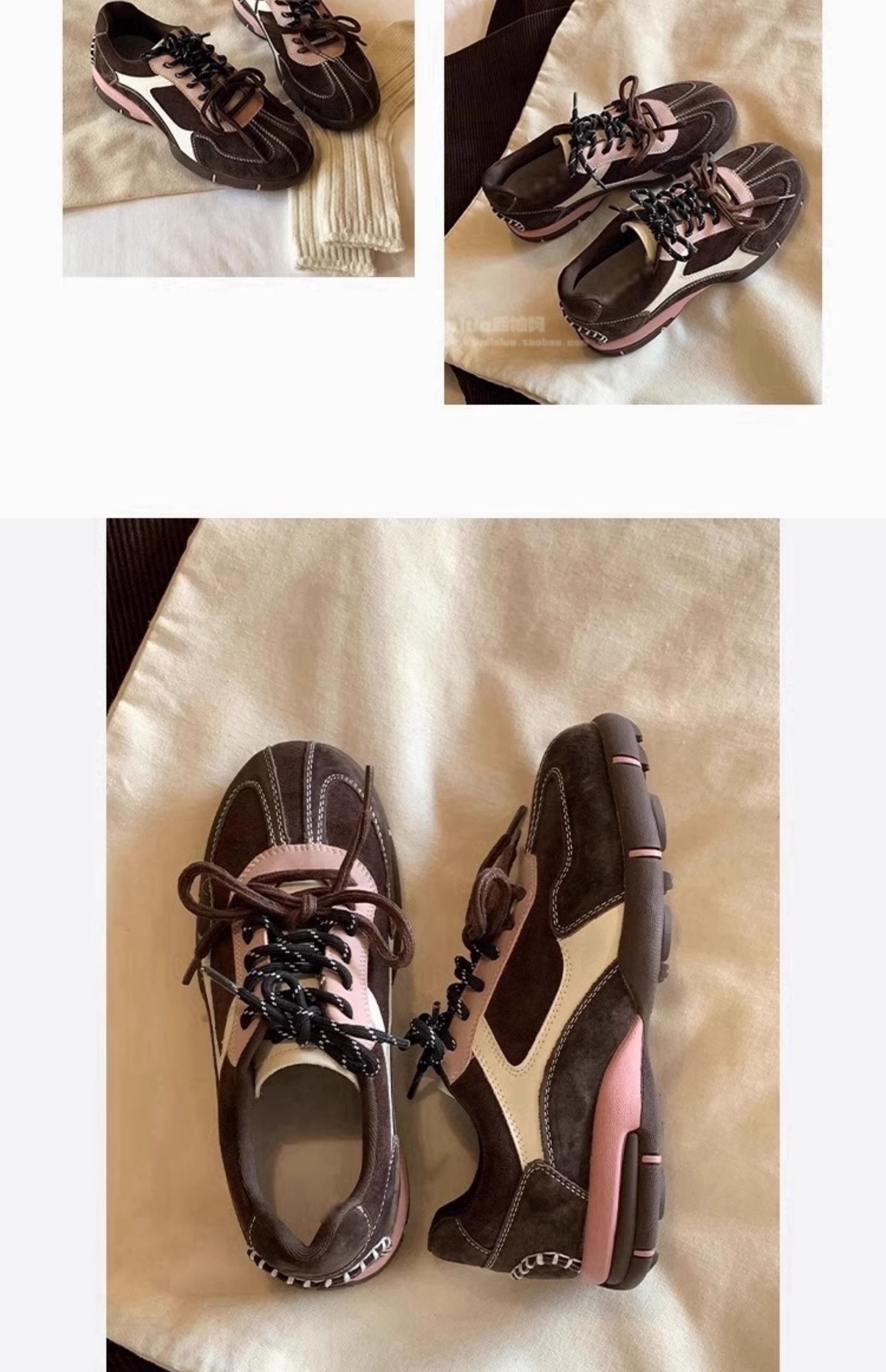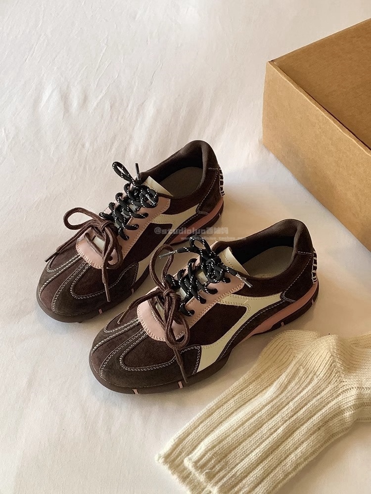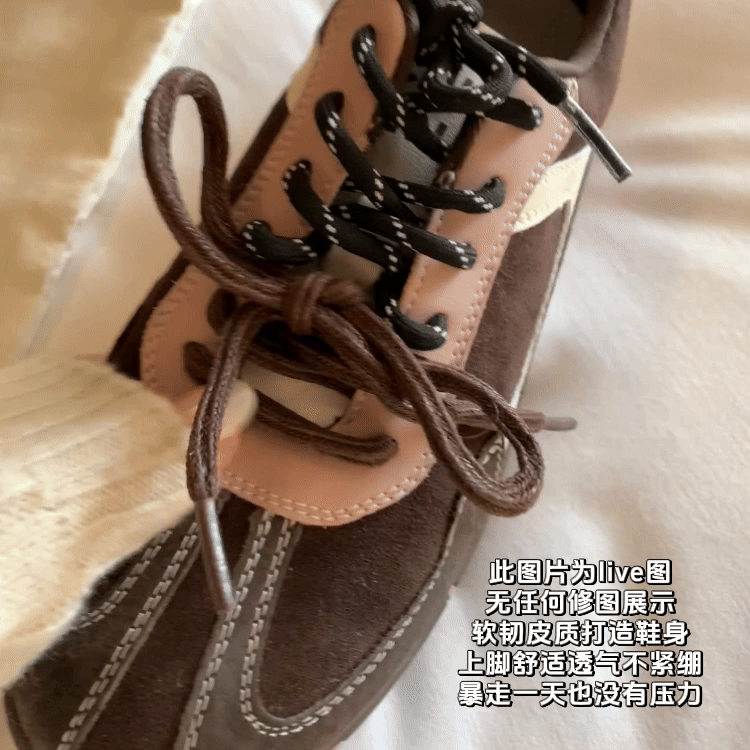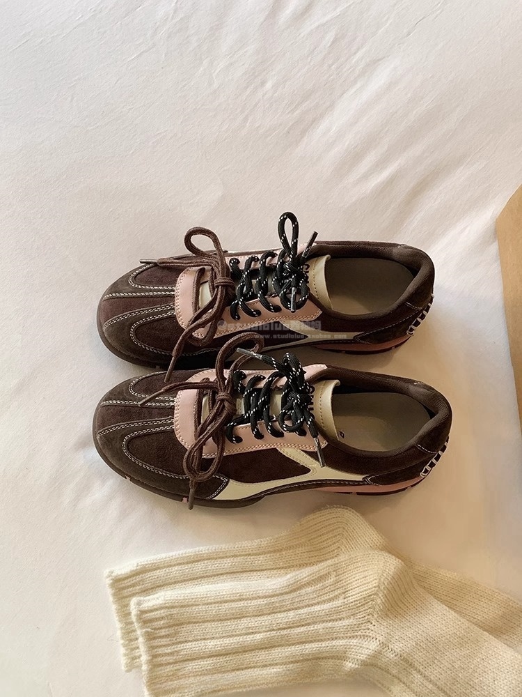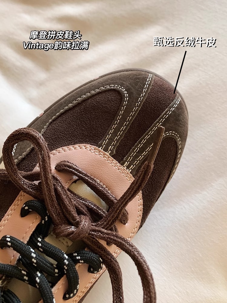 Hong Kong Genuine Leather Fashion Thick-Soled German Training Shoes for Women 2025 Spring and Autumn Double Shoelaces Color-Blocking Casual Lightweight Versatile Sneakers