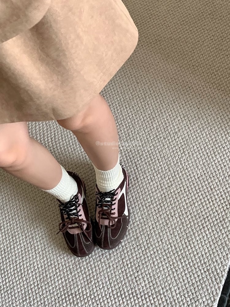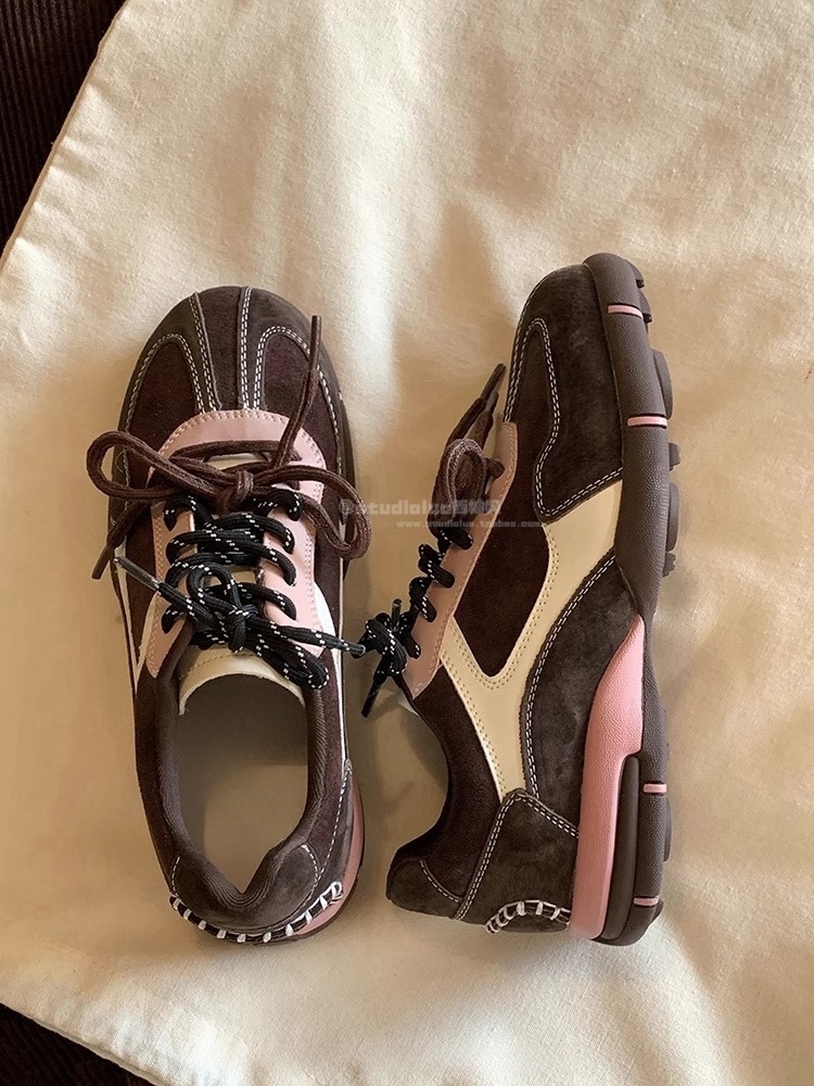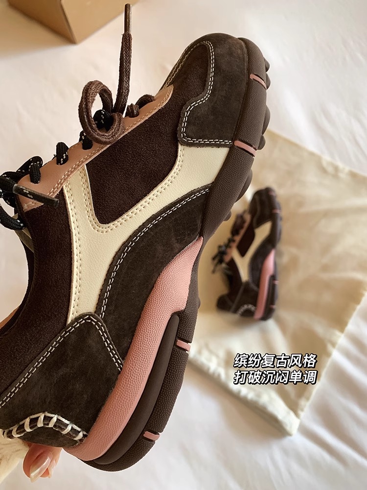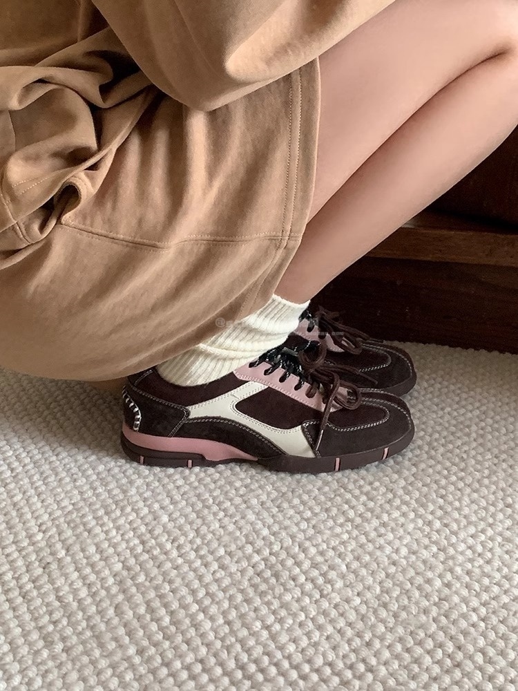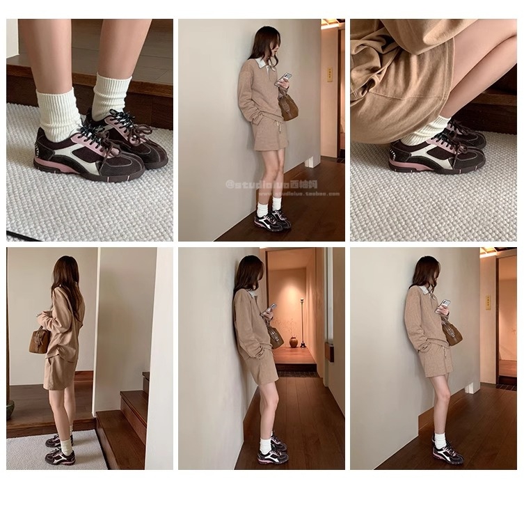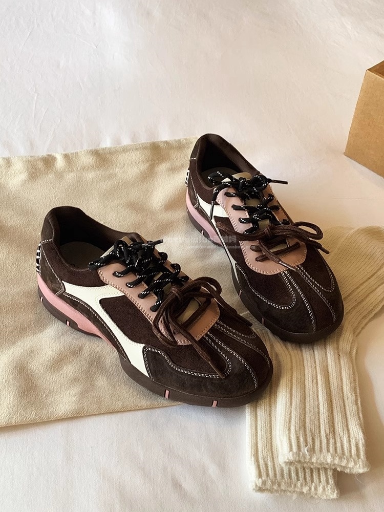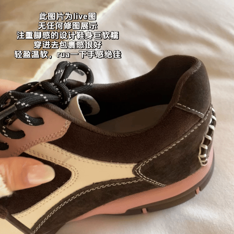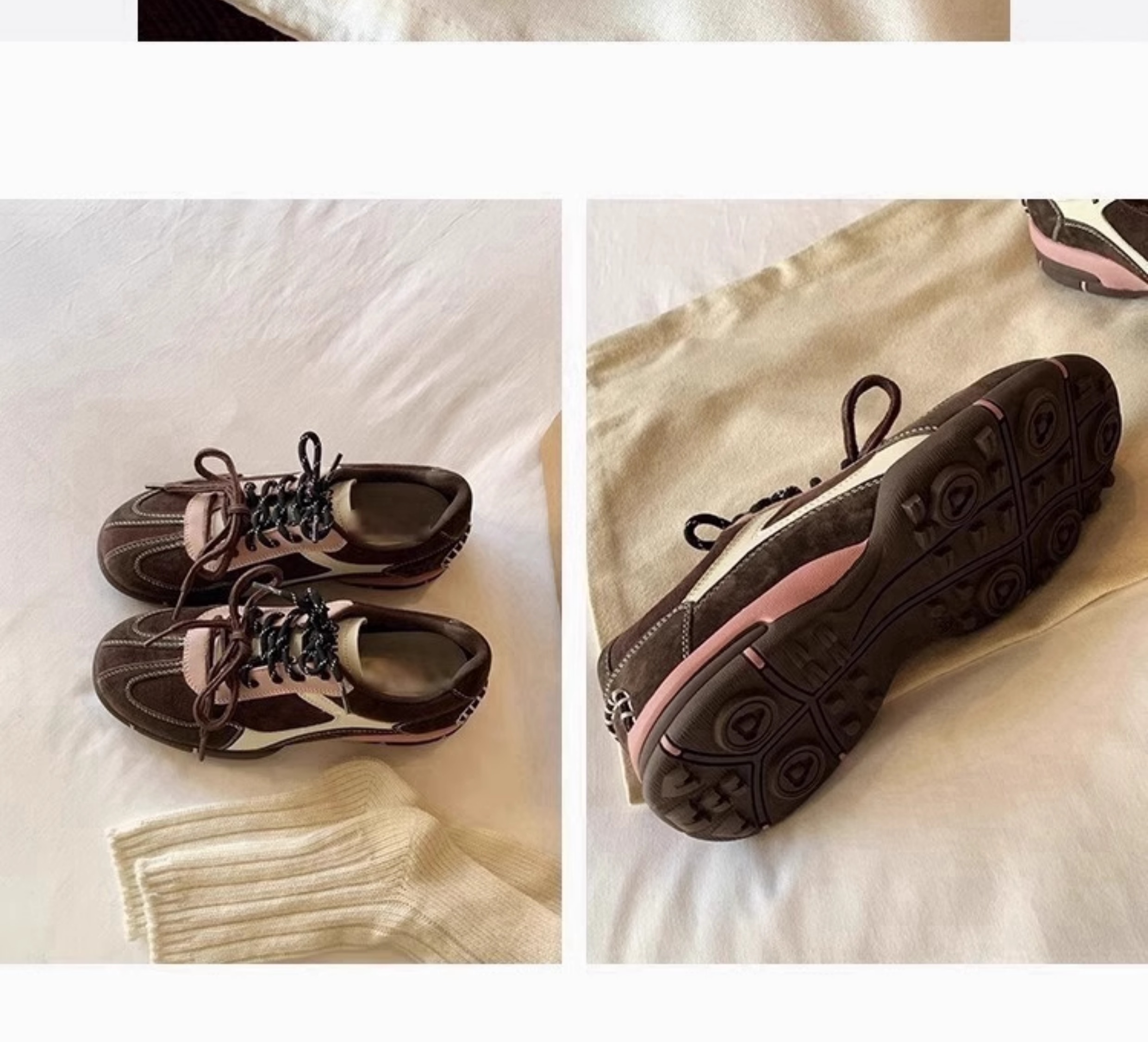 Hong Kong Genuine Leather Fashion Thick-Soled German Training Shoes for Women 2025 Spring and Autumn Double Shoelaces Color-Blocking Casual Lightweight Versatile Sneakers