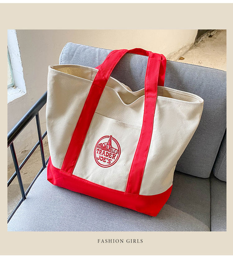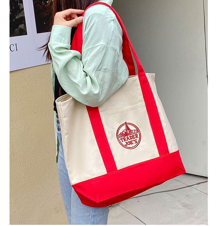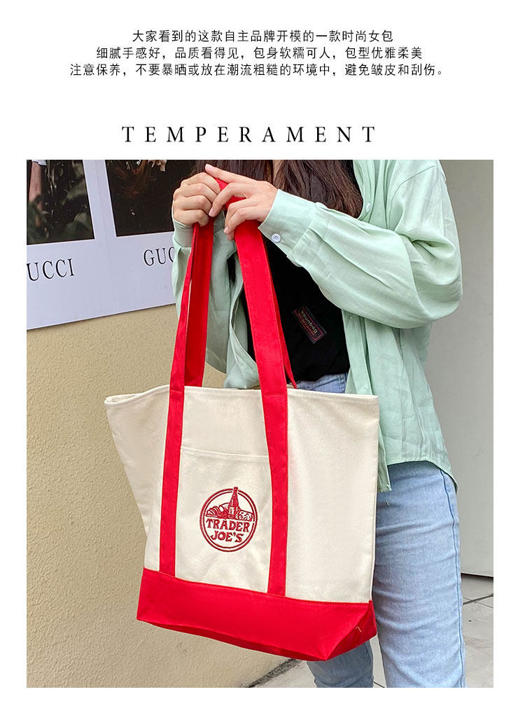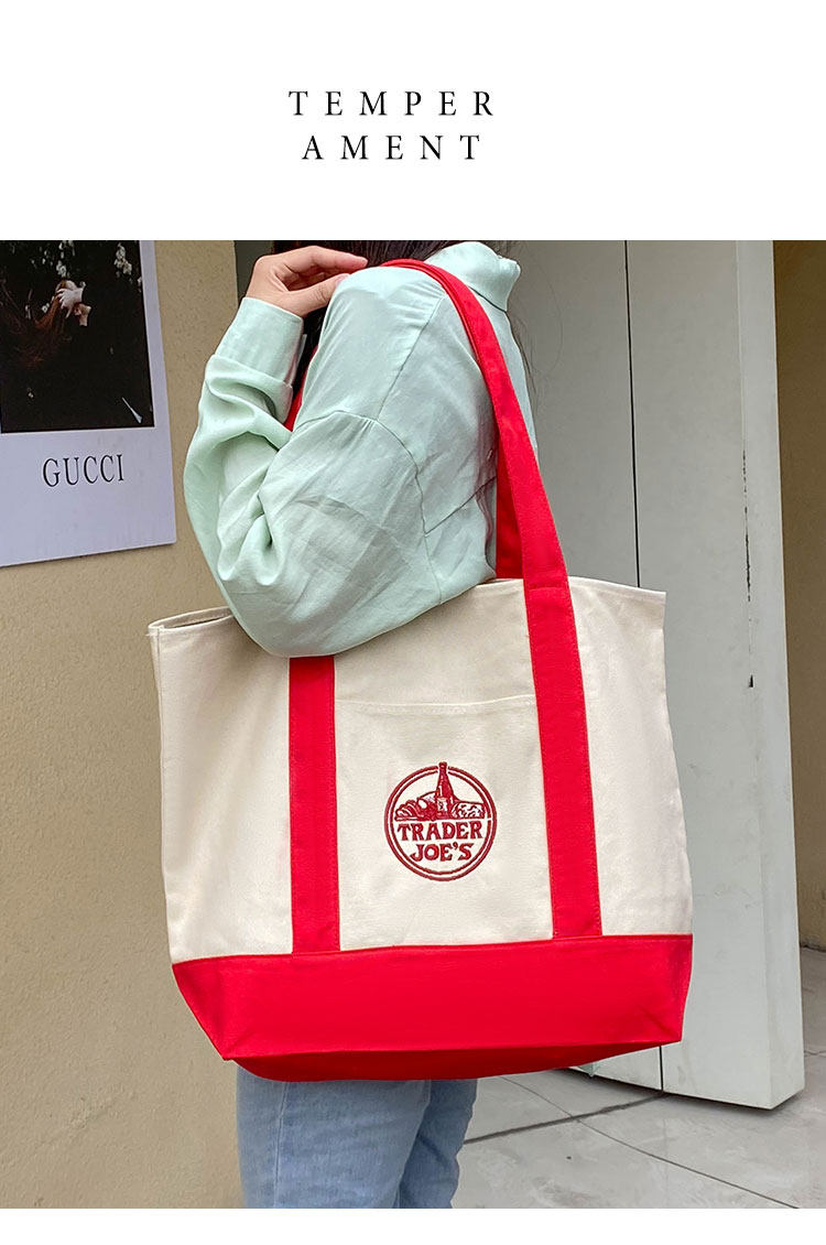 American Uncle Deed Fashion Trendy Color-Blocked Logo Large-Capacity Embroidered Shopping Bag Canvas Bag Shoulder Bag Tote Bag