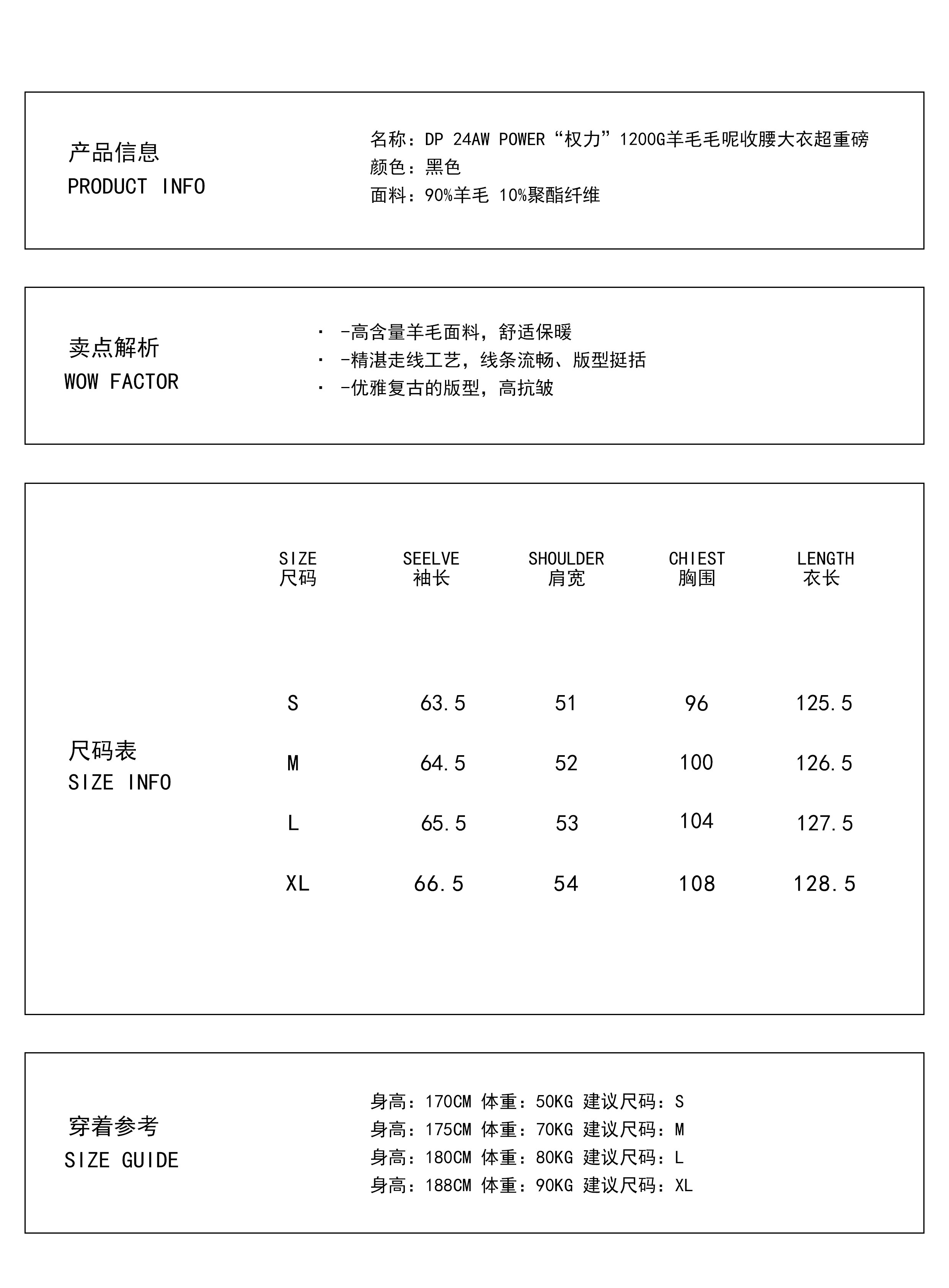Dp Paradis 24Aw Power "Powerful" 1200g Wool Woolen Waist-Cinching Coat L Super Heavyweight