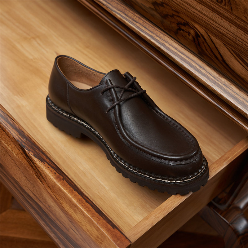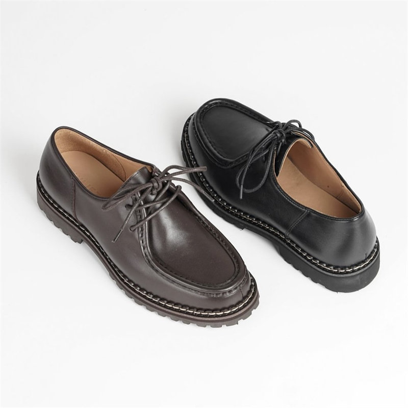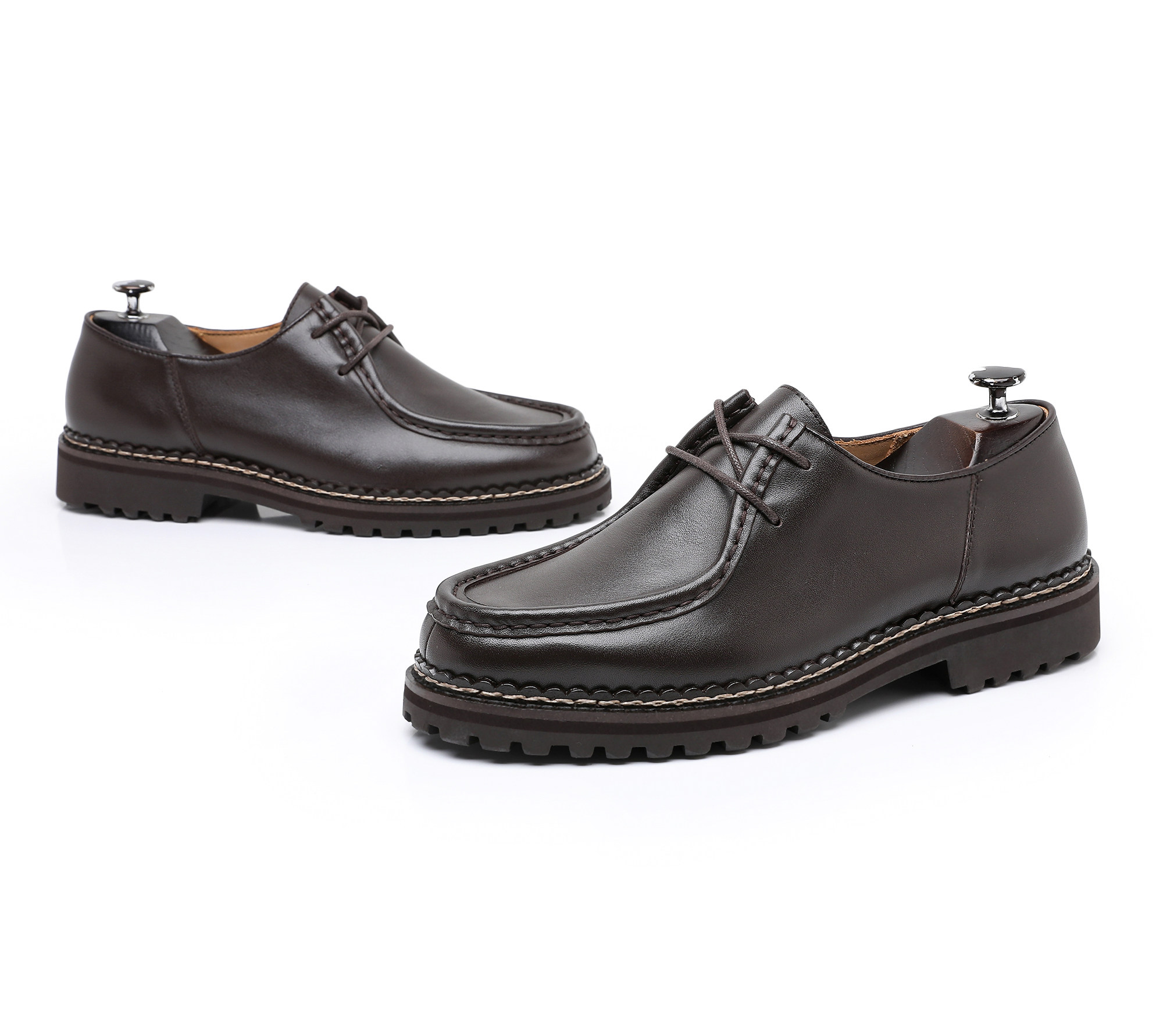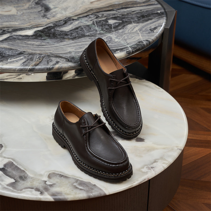 Yueshen Derby Shoes for Men, Vintage British Genuine Leather, Goodyear Work Loafers, First Layer Cowhide, Round Toe Kangaroo Shoes