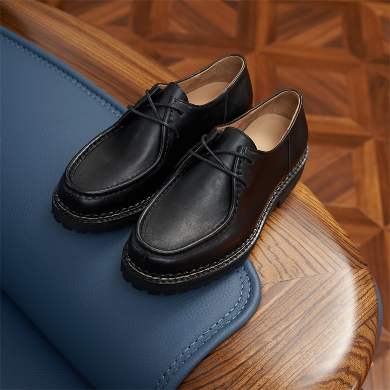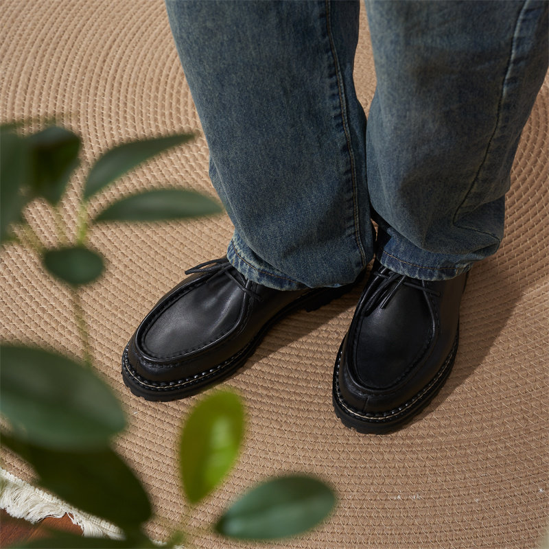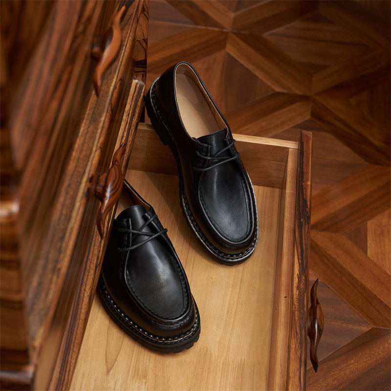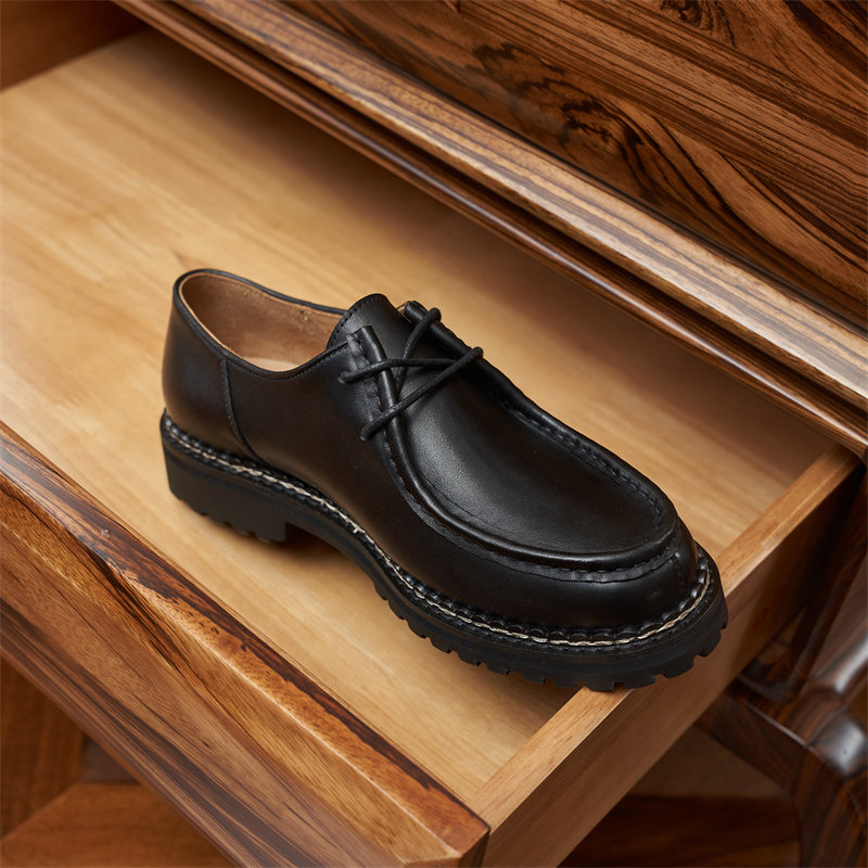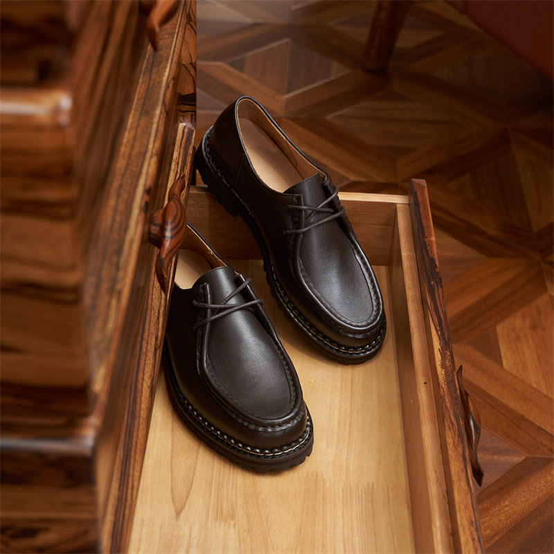 Yueshen Derby Shoes for Men, Vintage British Genuine Leather, Goodyear Work Loafers, First Layer Cowhide, Round Toe Kangaroo Shoes