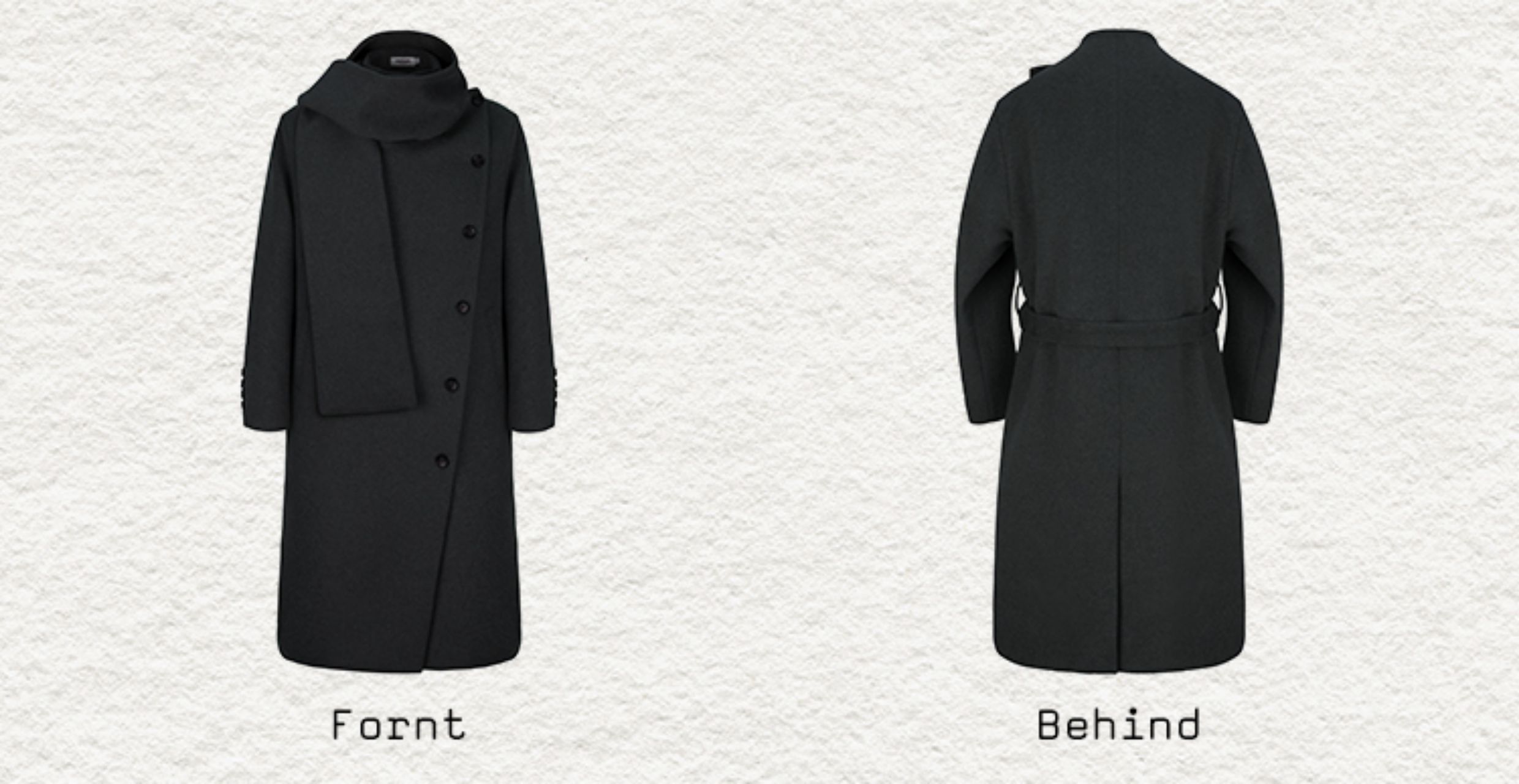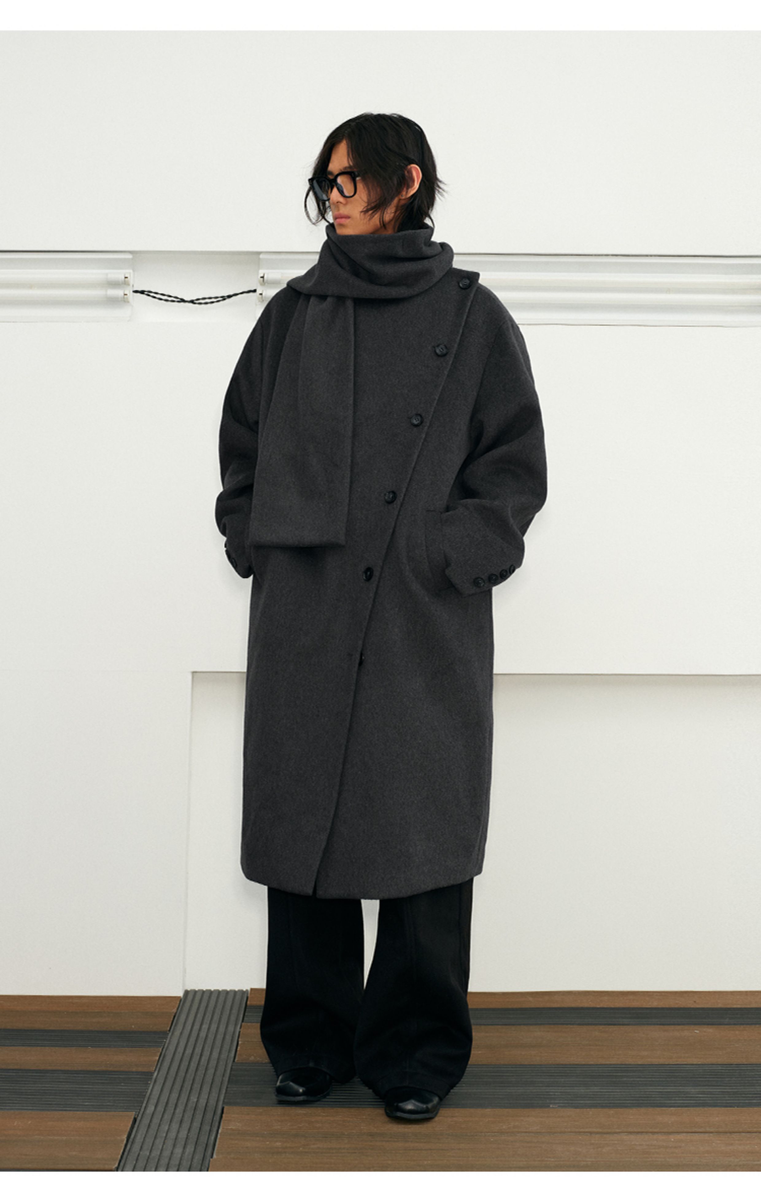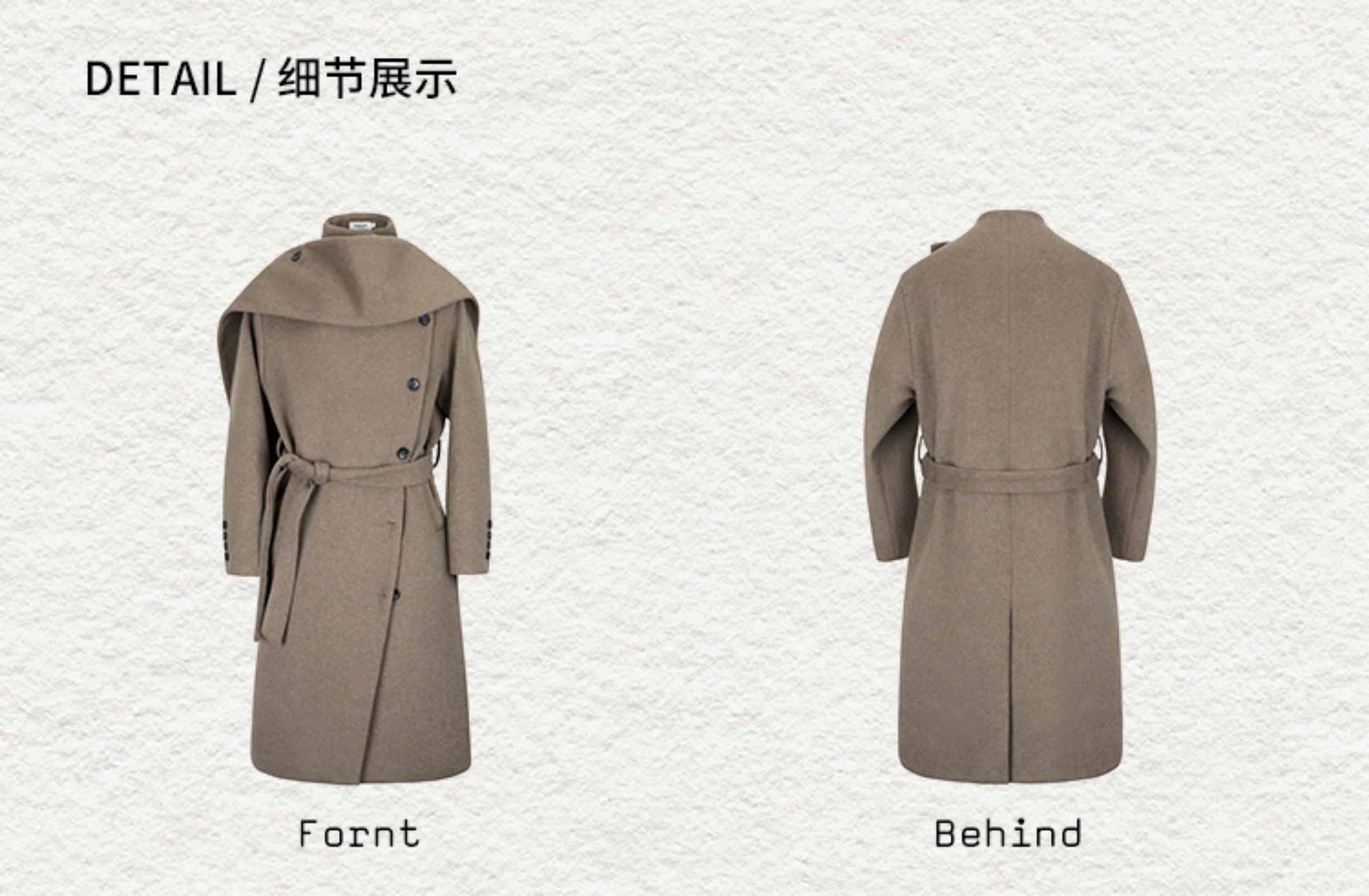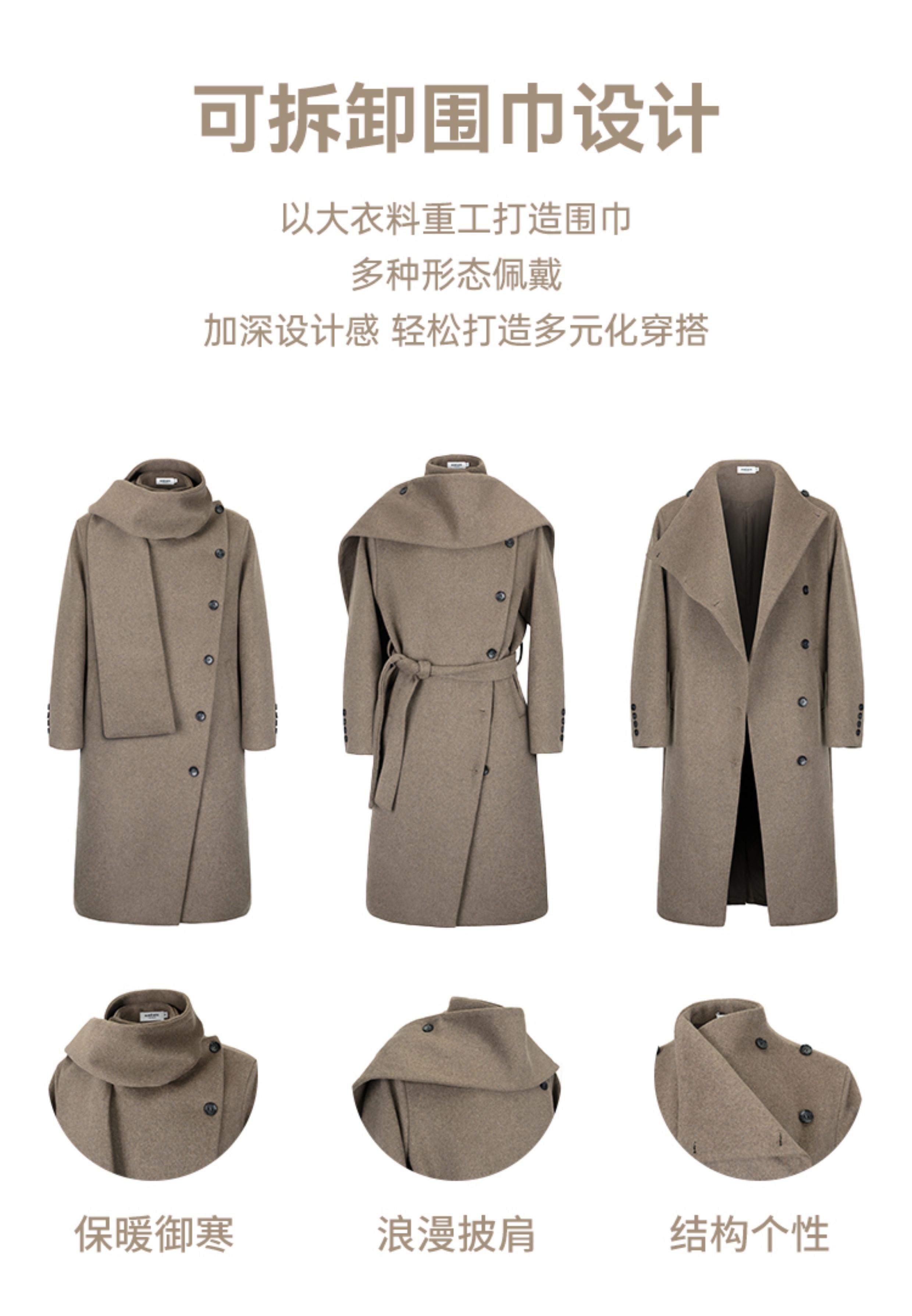 Kreate Wool Swing-Collar Multi-Style Scarf Woolen Coat Styling Essential Men's Long Coat Zhang Guiyuan Same Style