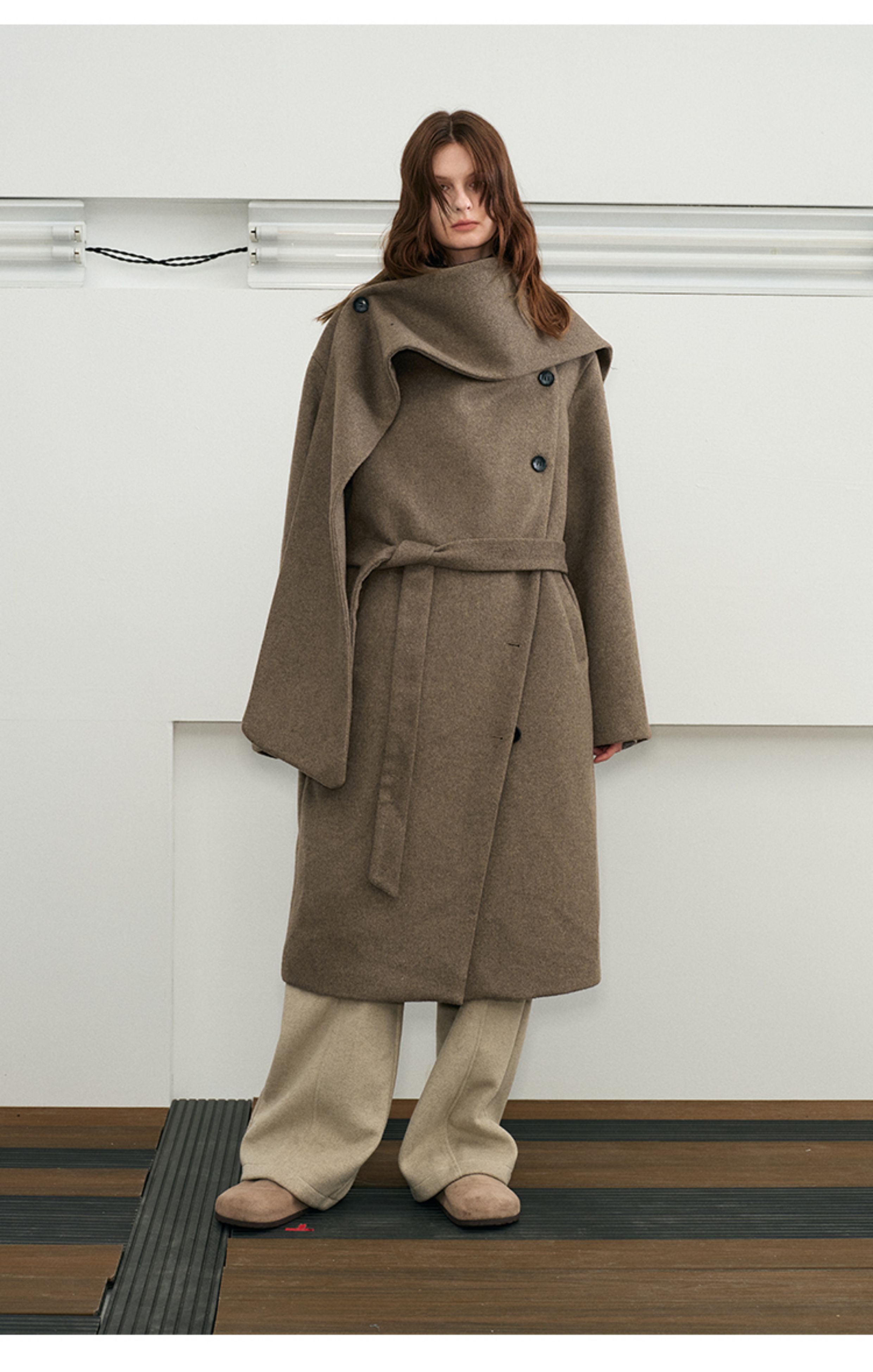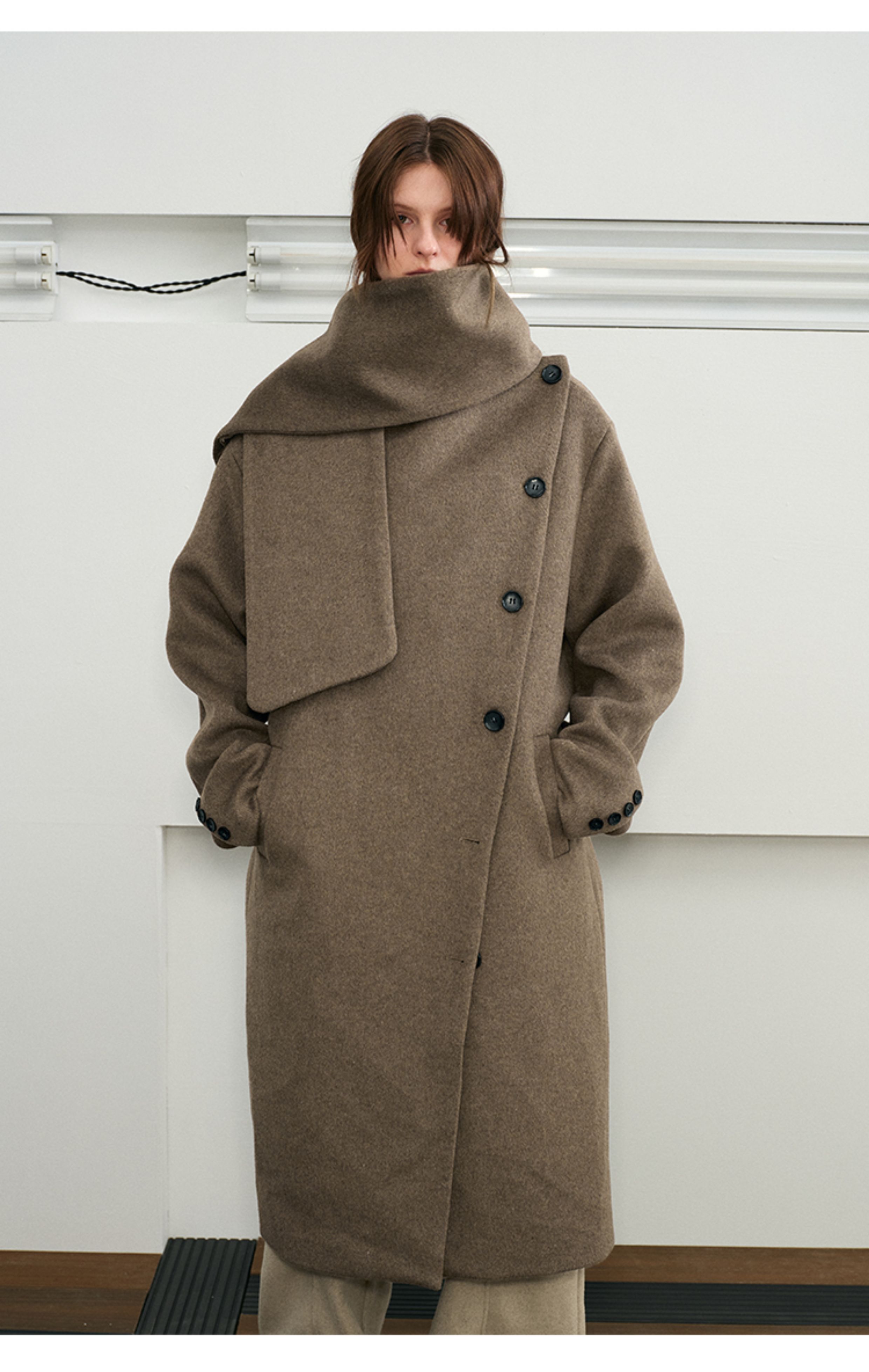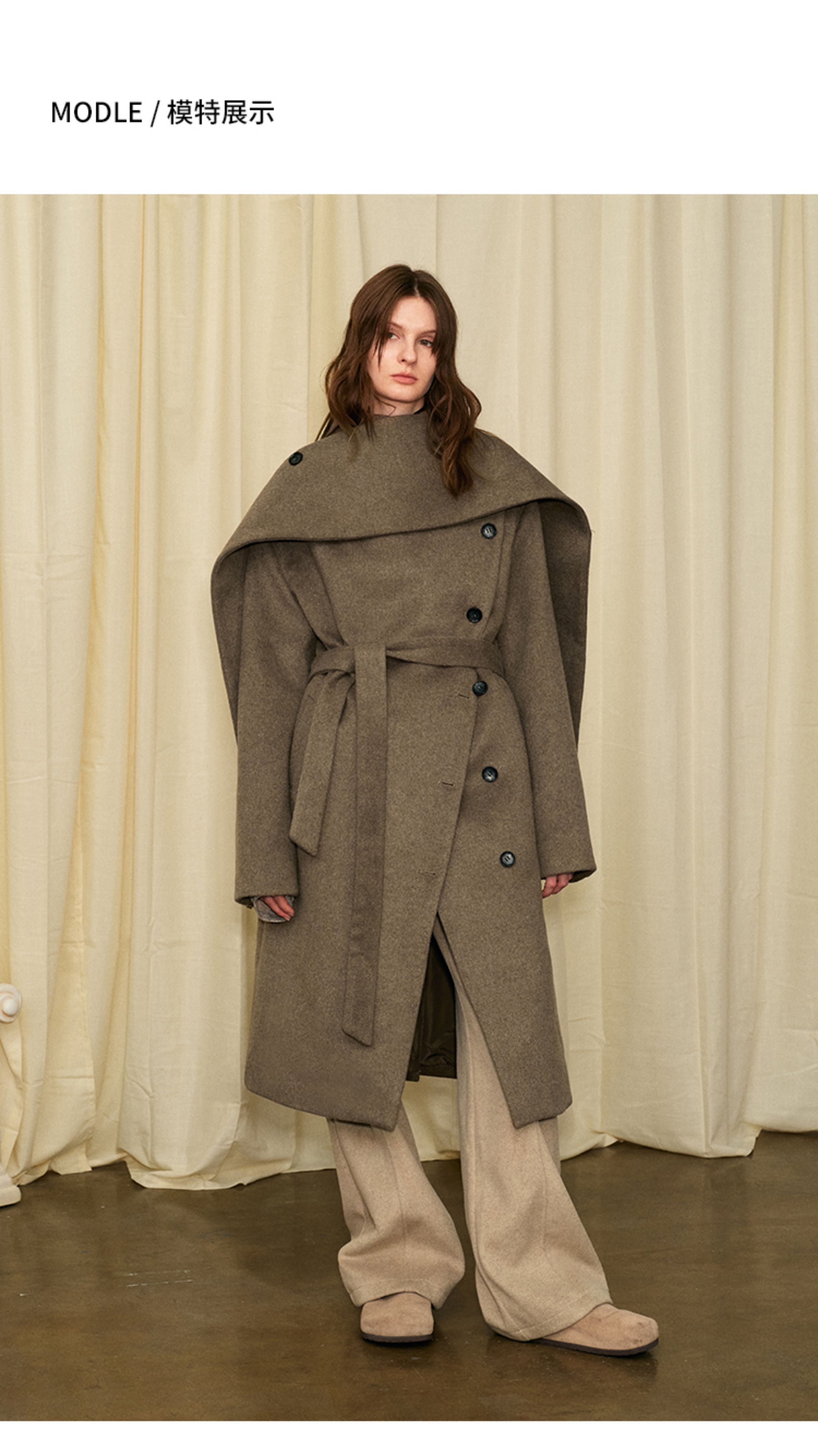 Kreate Wool Swing-Collar Multi-Style Scarf Woolen Coat Styling Essential Men's Long Coat Zhang Guiyuan Same Style