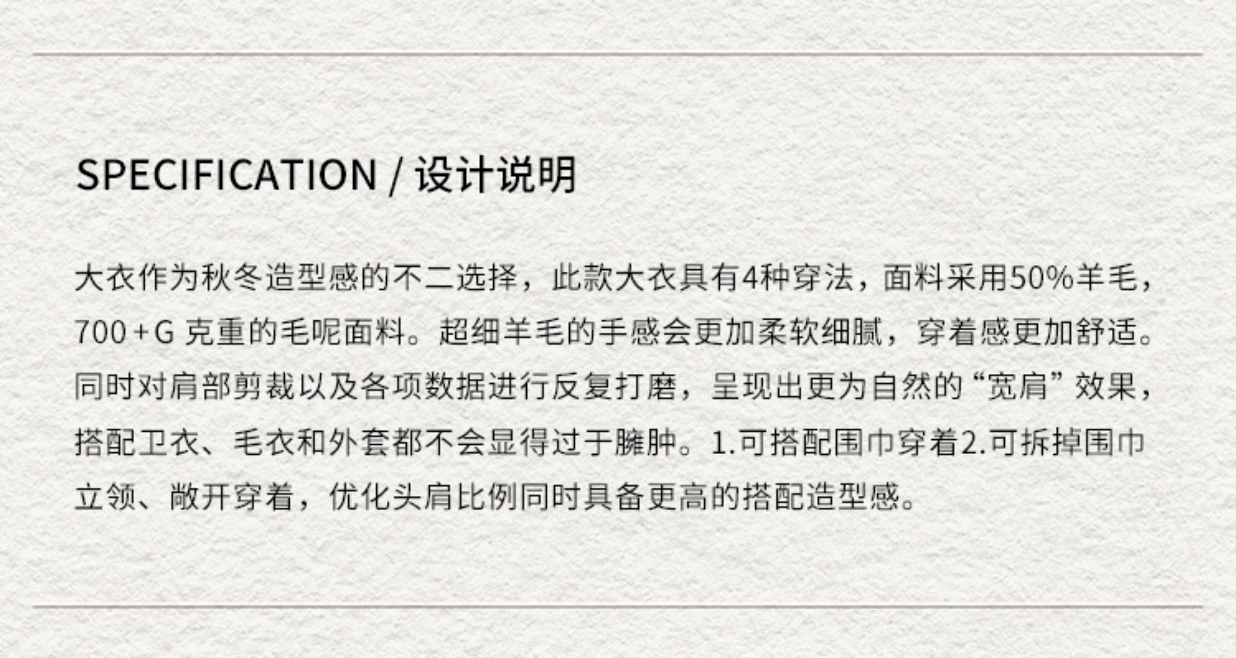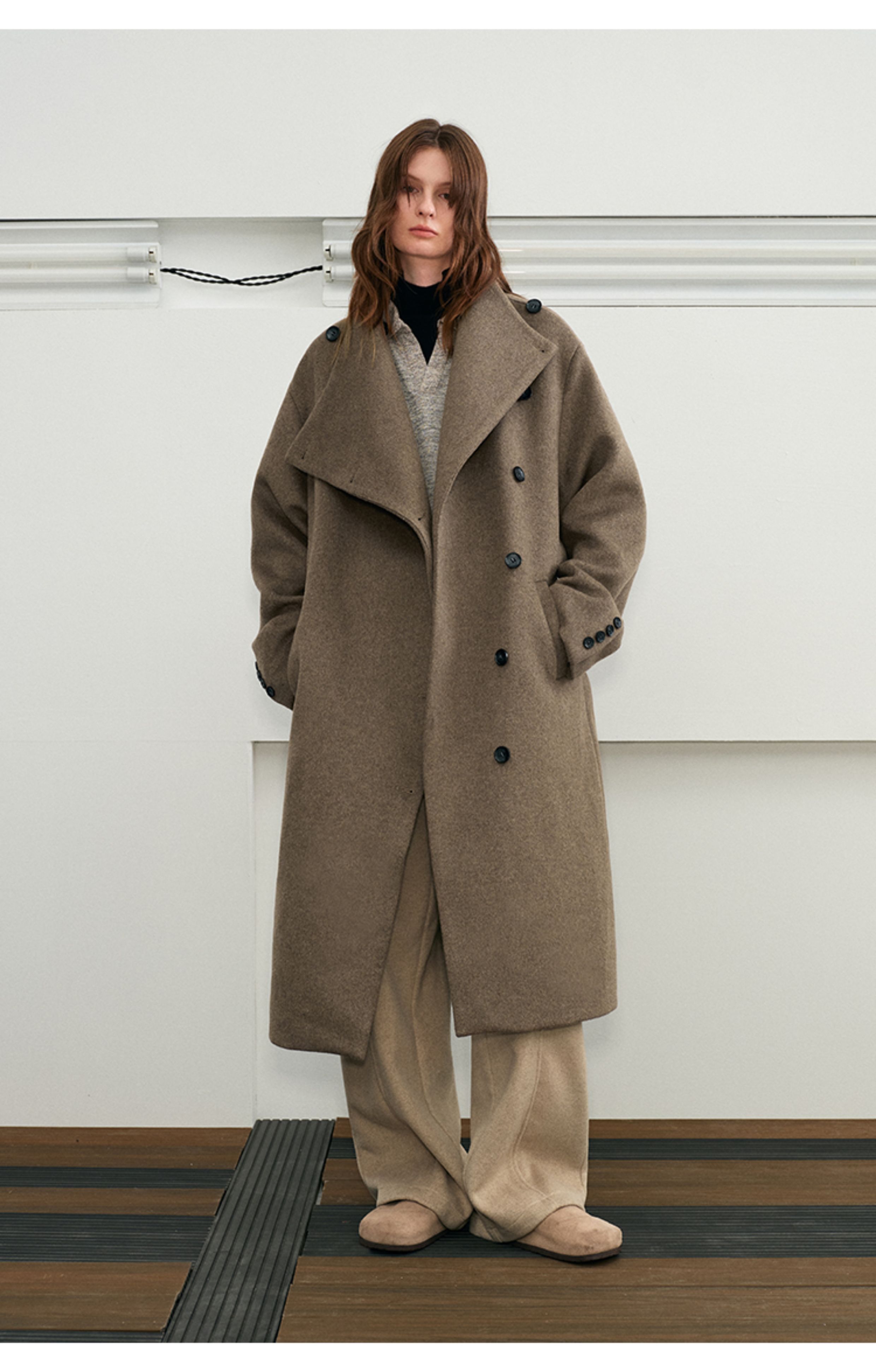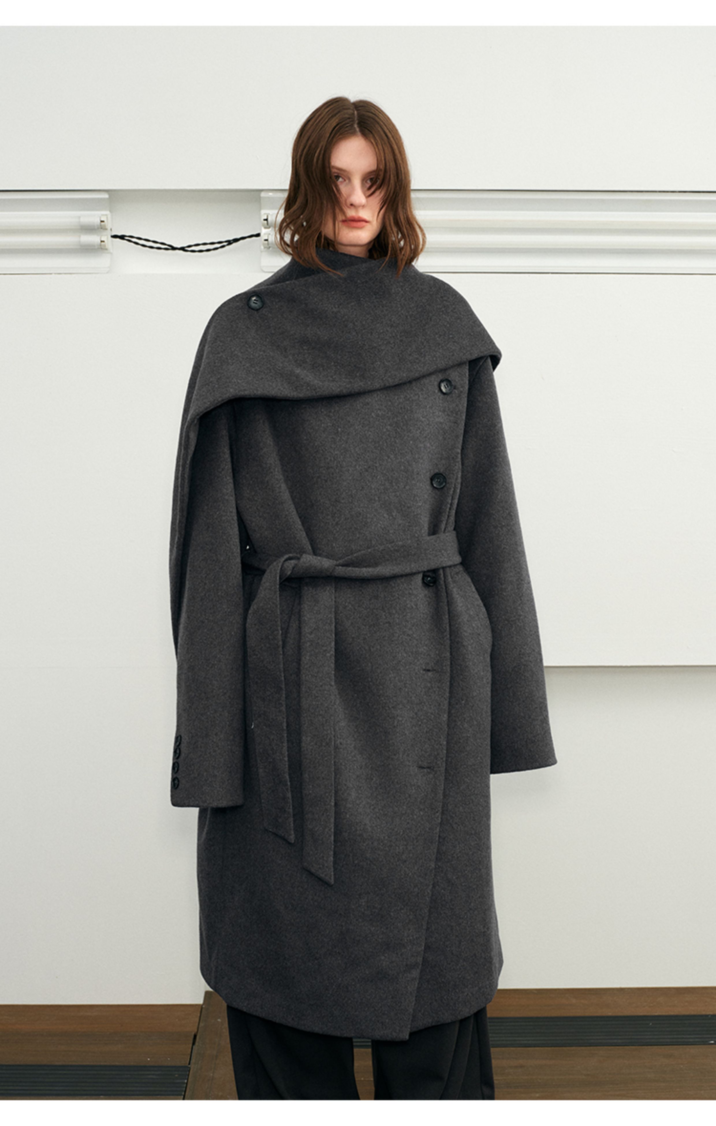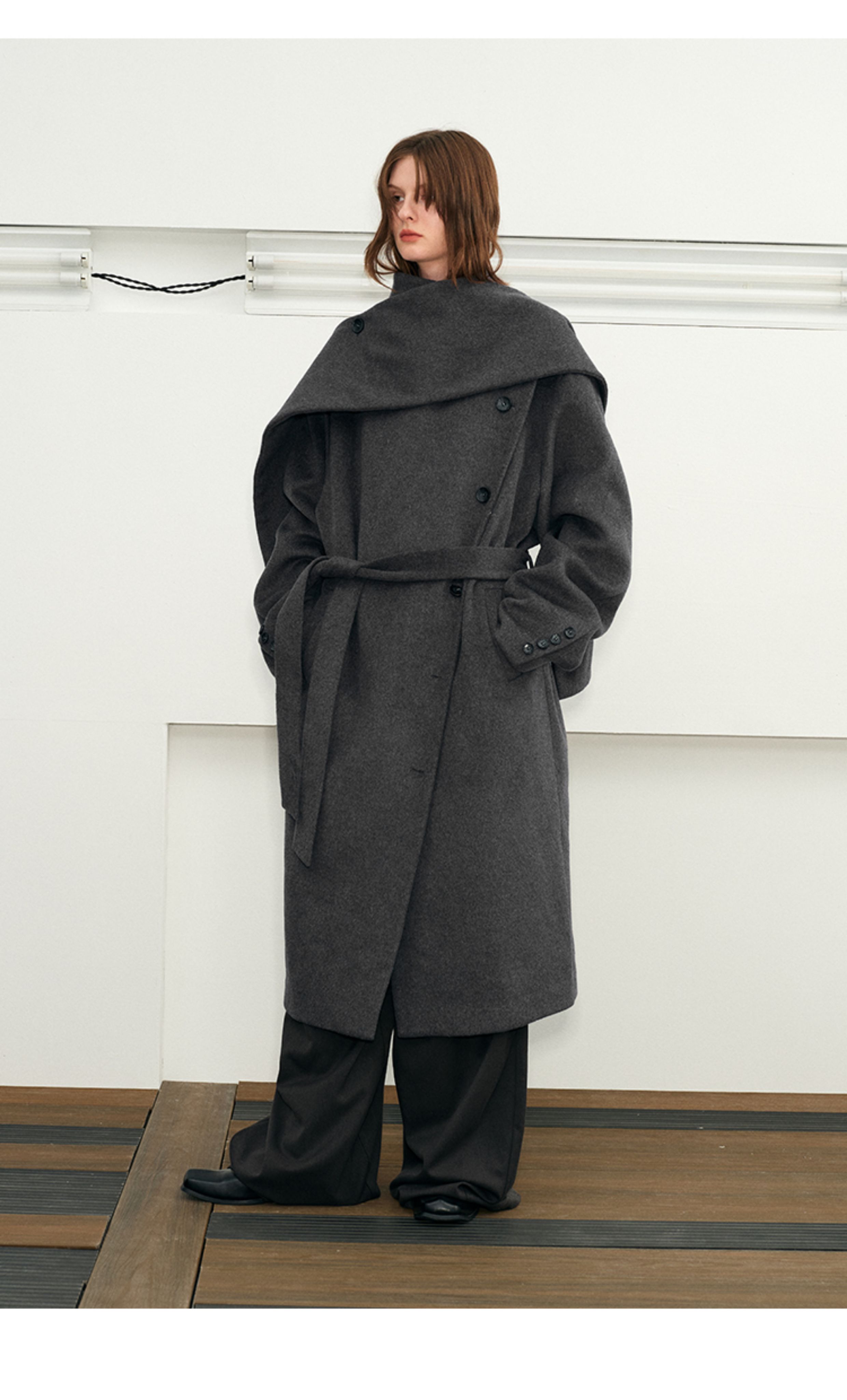 Kreate Wool Swing-Collar Multi-Style Scarf Woolen Coat Styling Essential Men's Long Coat Zhang Guiyuan Same Style