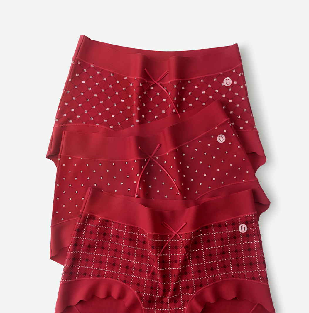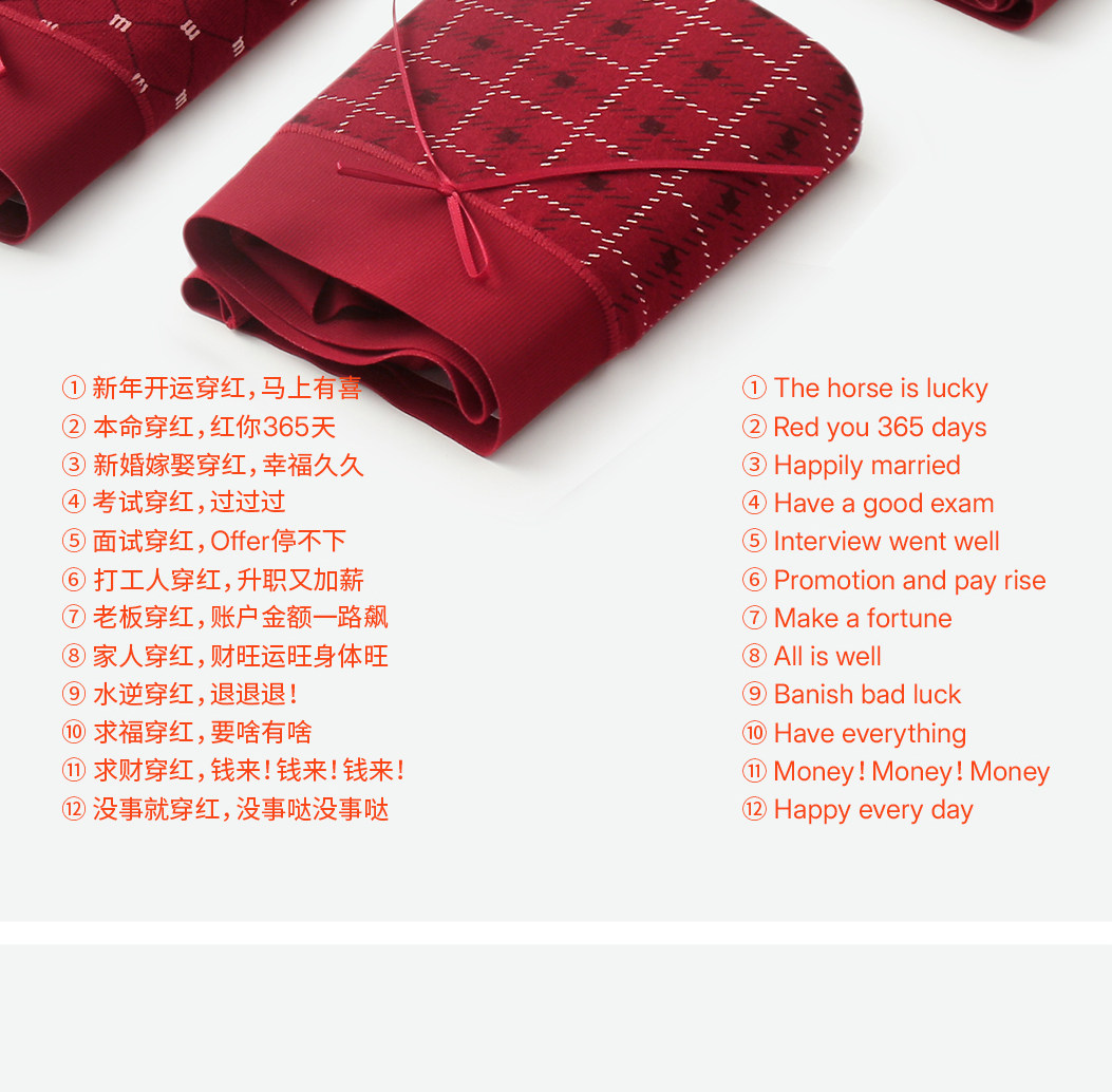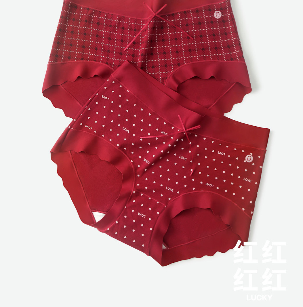 Red Women's Underwear with Silk Crotch, Antibacterial, for Girls in Their Zodiac Year, Gift Box for the Year of Birth, New Wedding Style, Red