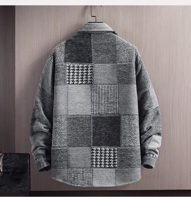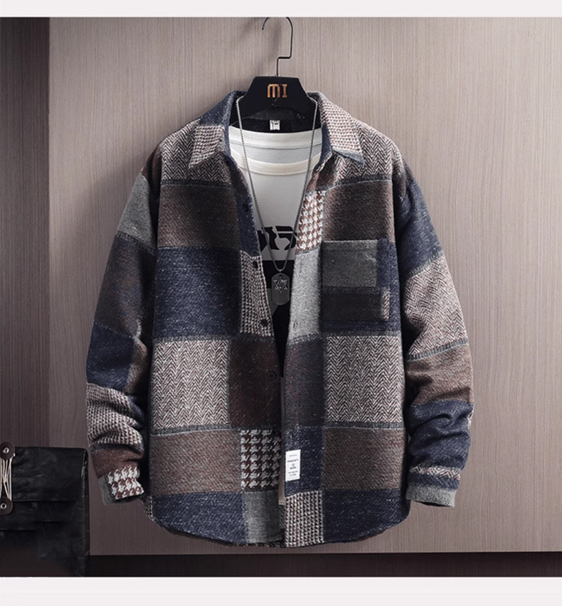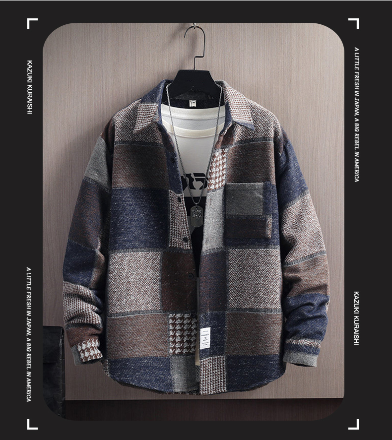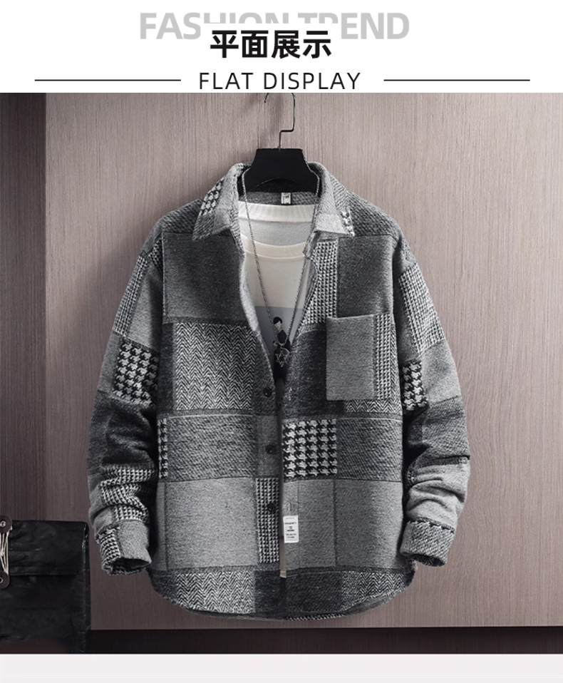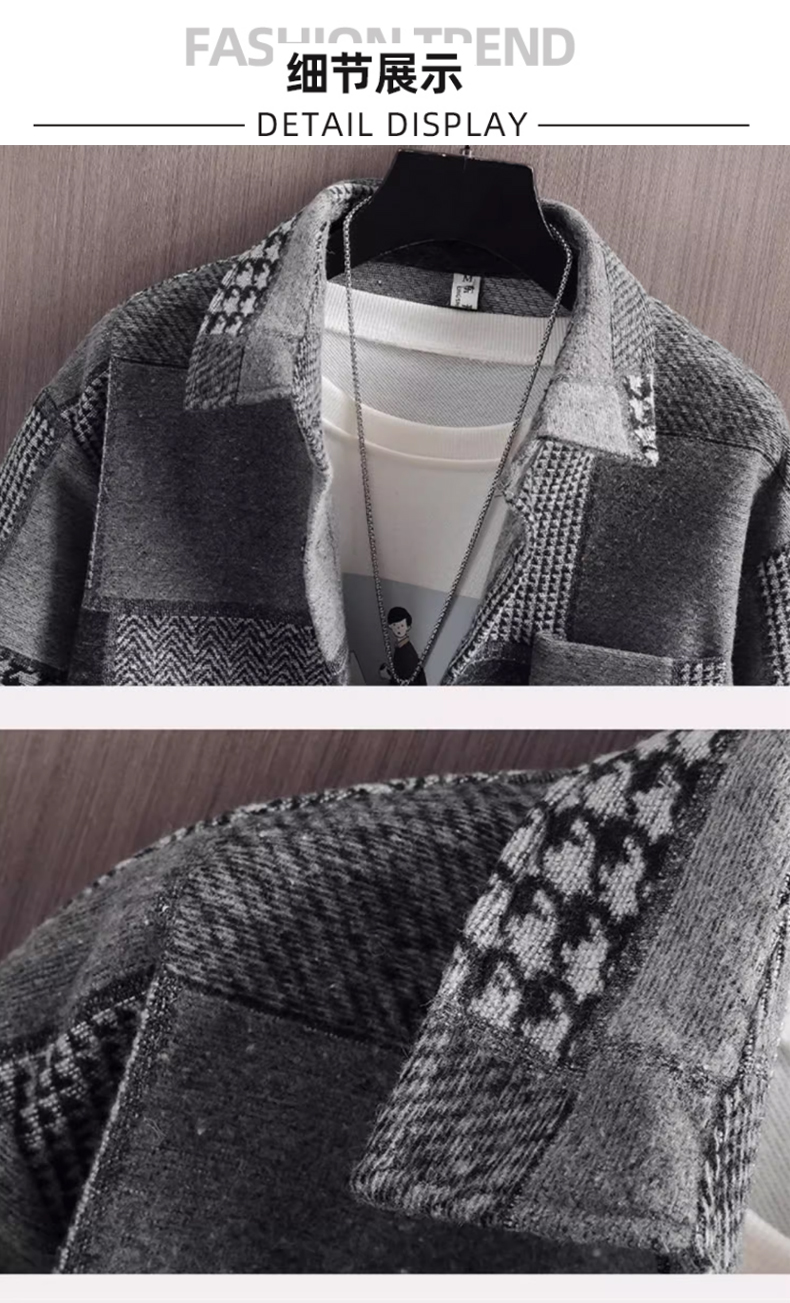 Kangshi Yishu Trendy Brand 2025 Autumn and Winter Lapel Woolen Shirt for Men, Versatile Light Luxury Casual Plaid Shirt Jacket for Men