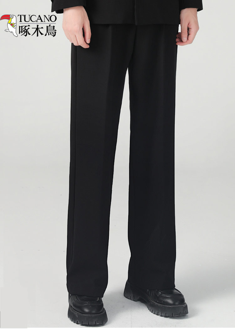 Woodpecker Men's Dress Pants, High-End Black New Style, Drapey, Slimming, Loose, Versatile, Wrinkle-Free, Straight-Leg Casual Pants