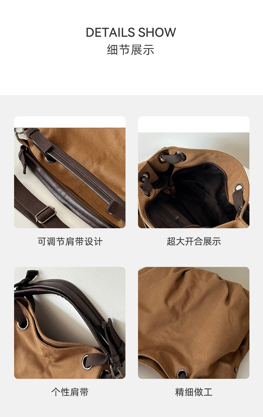Erlai Handmade Vintage Canvas Bag for Men and Women, Single Shoulder Crossbody Bag with Multiple Carrying Methods, Large Capacity Casual Commuting Tote Bag