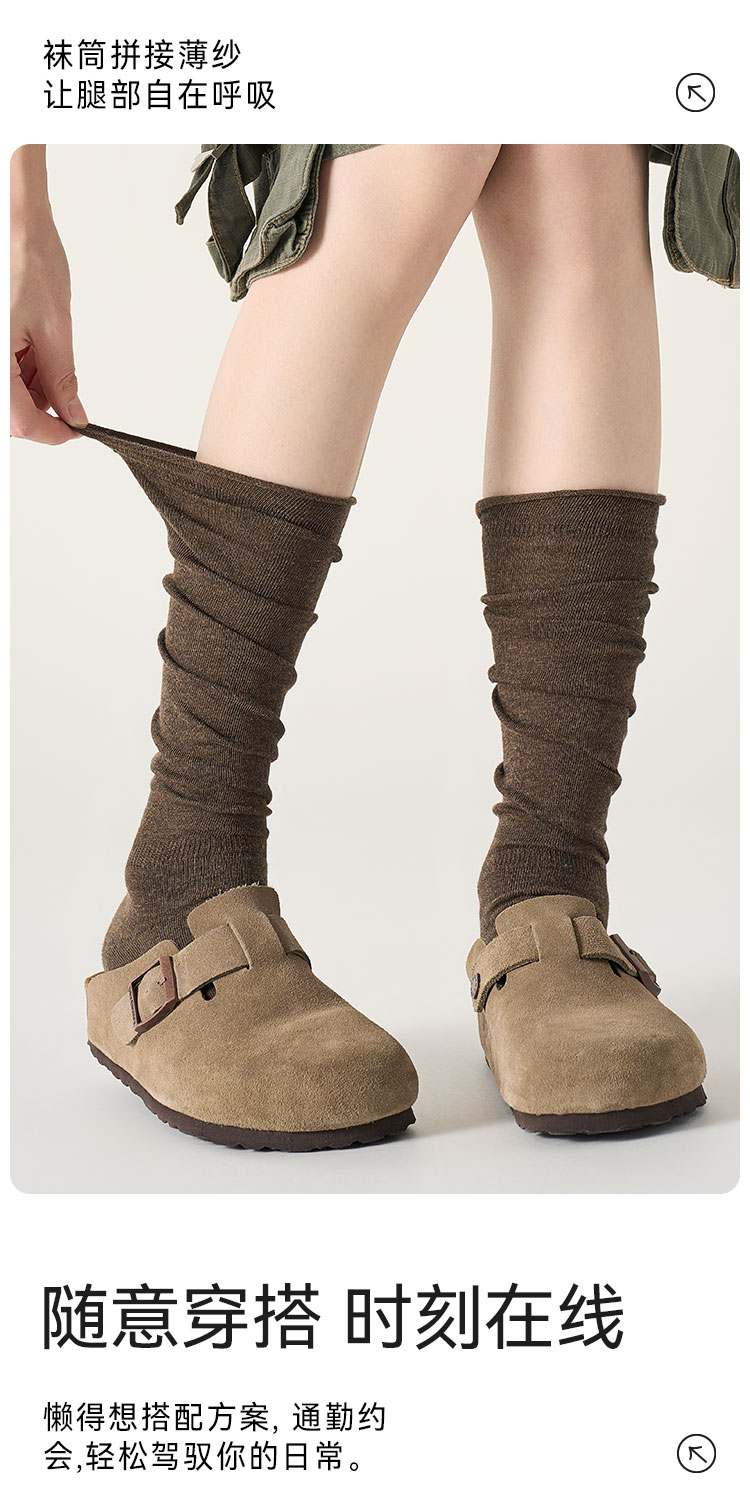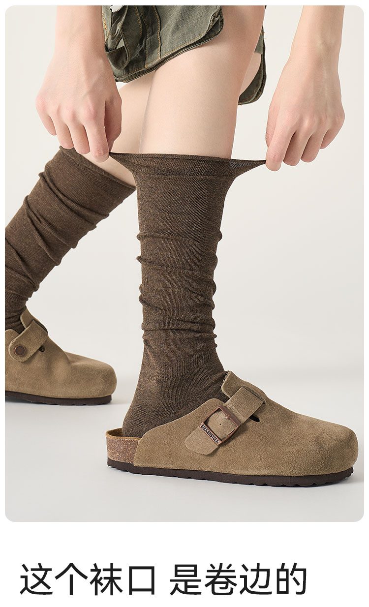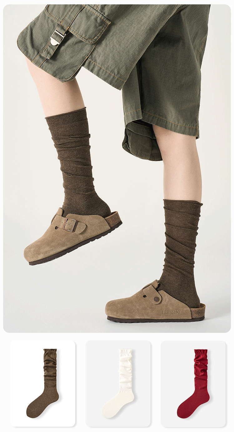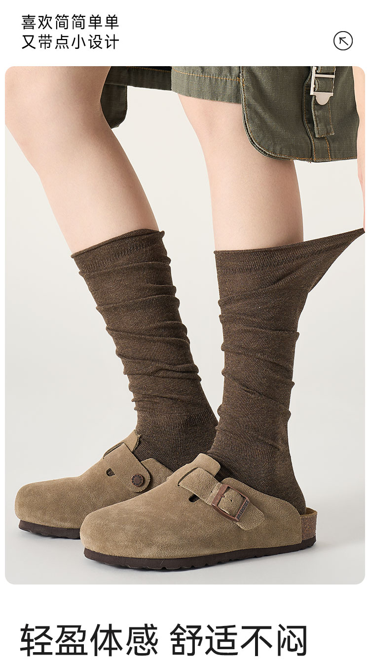 Melard Coffee-Colored Slouch Socks for Women, Long Socks for Spring and Autumn, Brown Pure Cotton Calf Socks to Match Boots, Mid-Calf Socks for Autumn and Winter