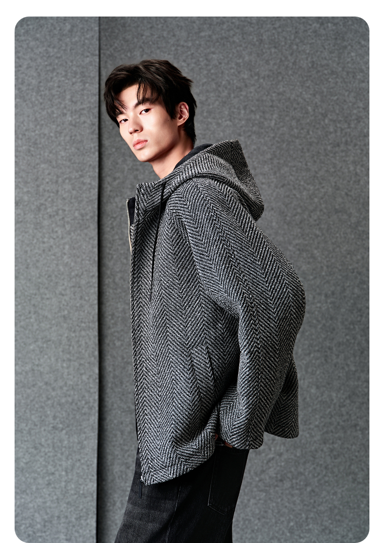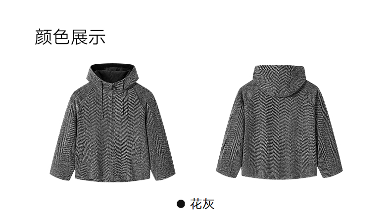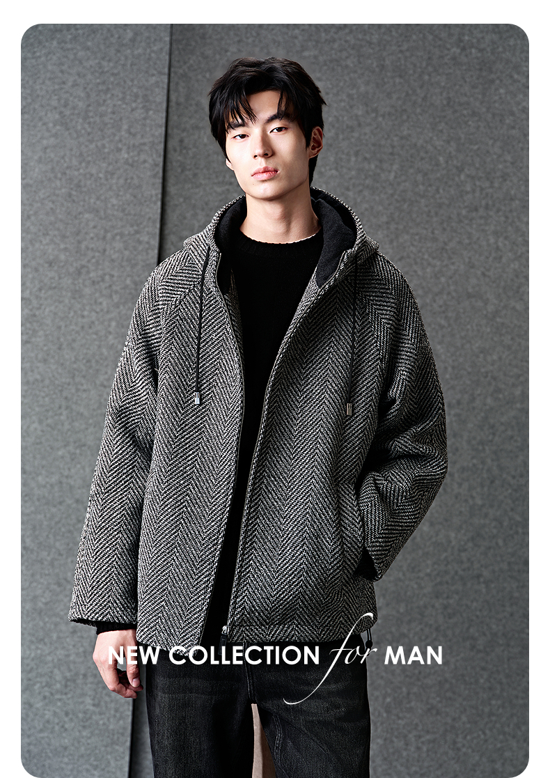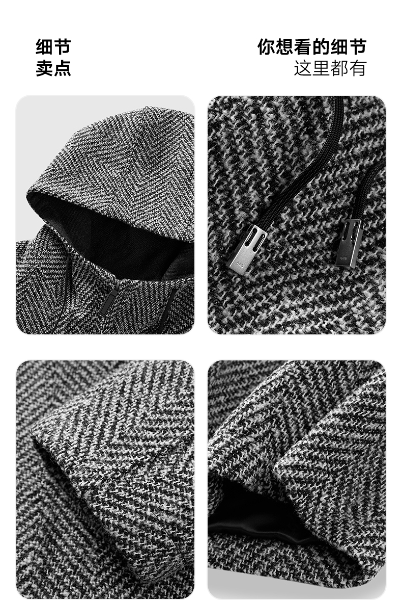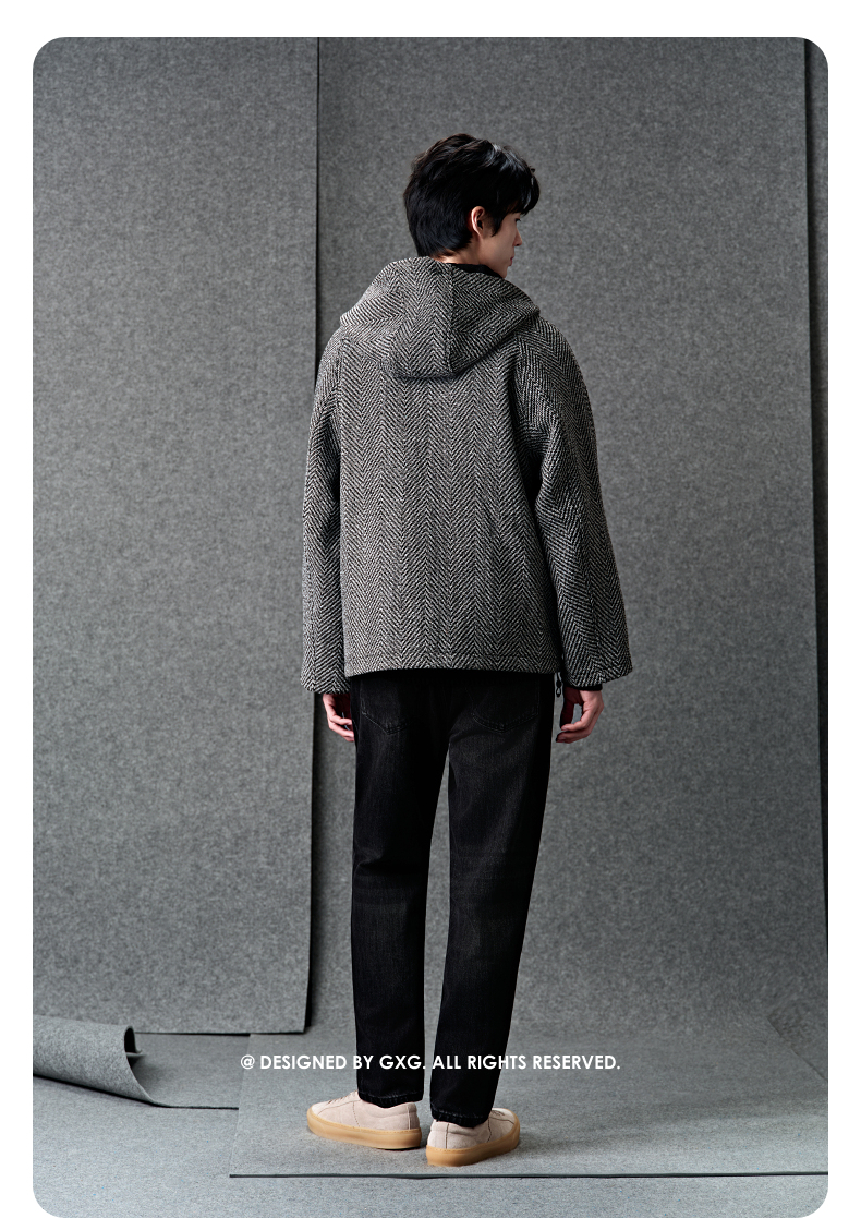 Gxg Men's Clothing Custom Woven Gray Herringbone Commuting Hooded Short Coat Winter Hot Sale