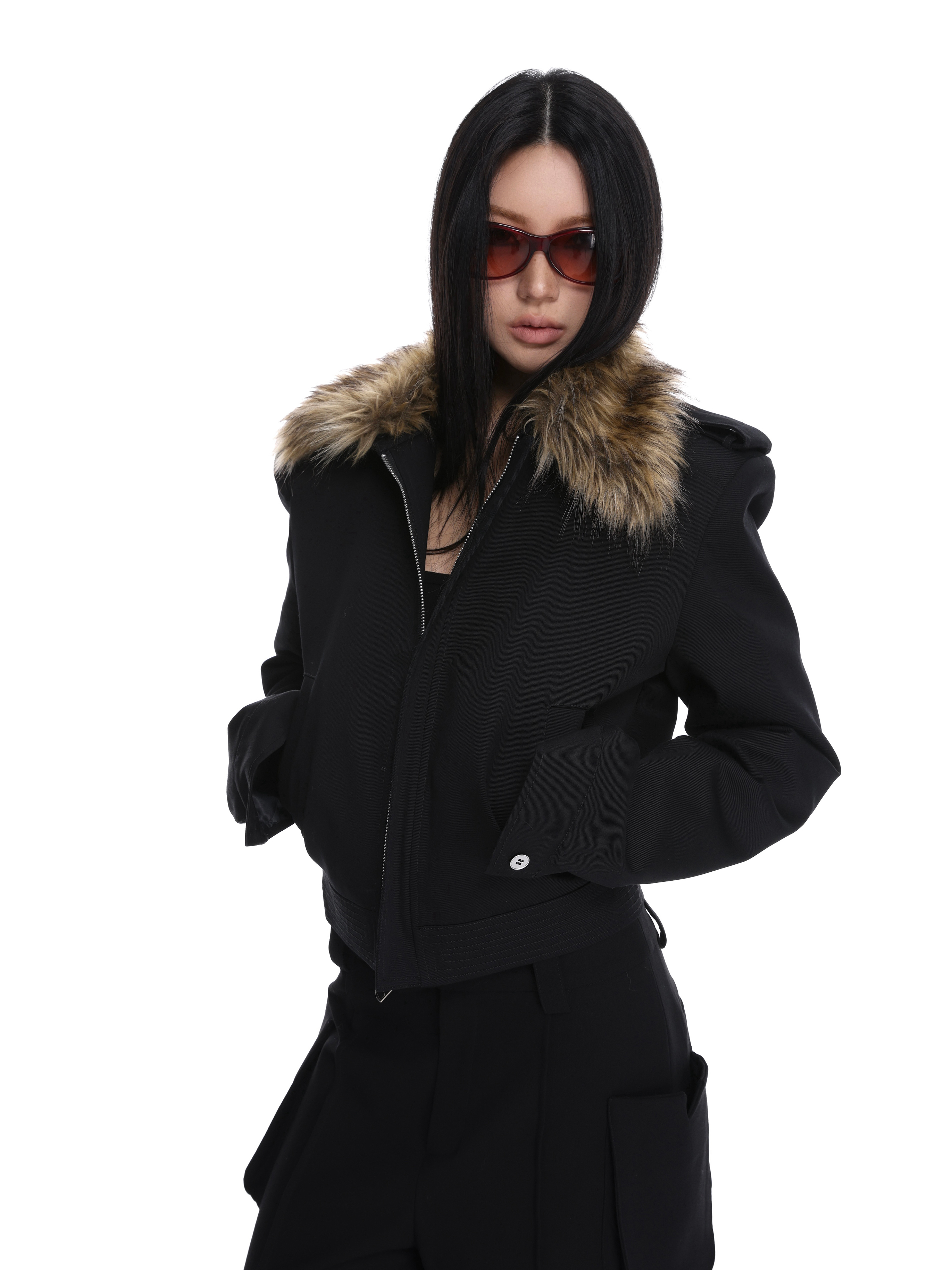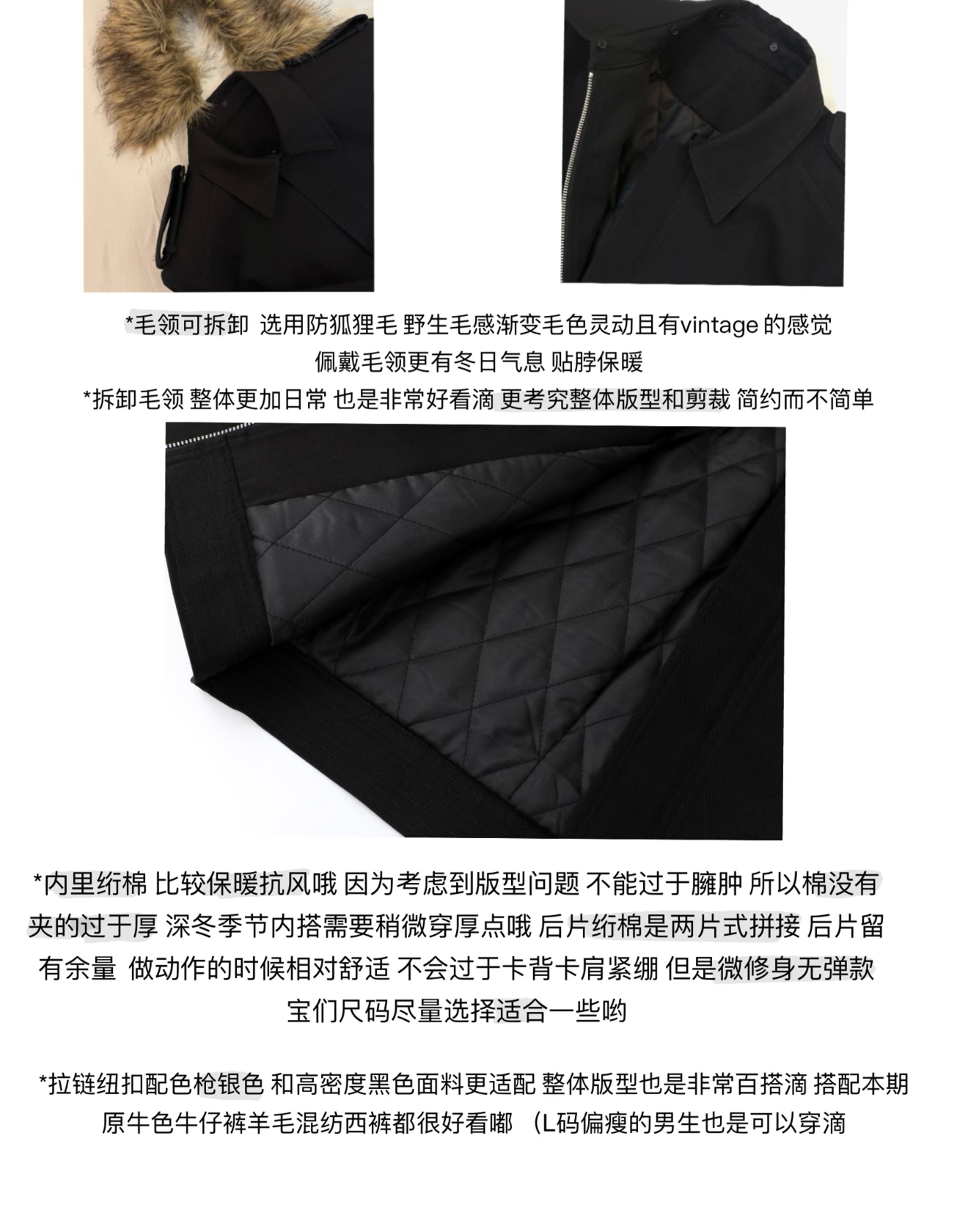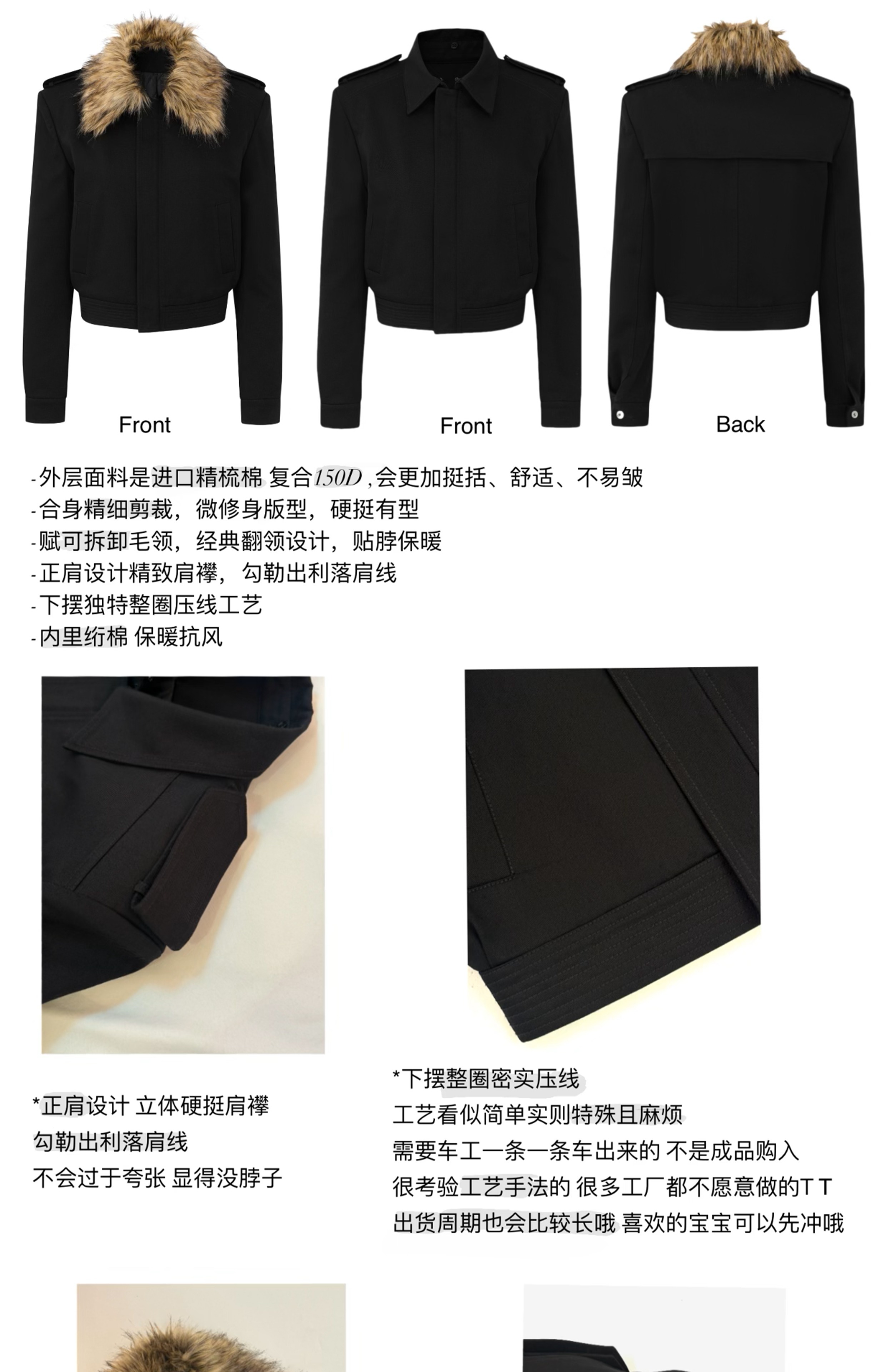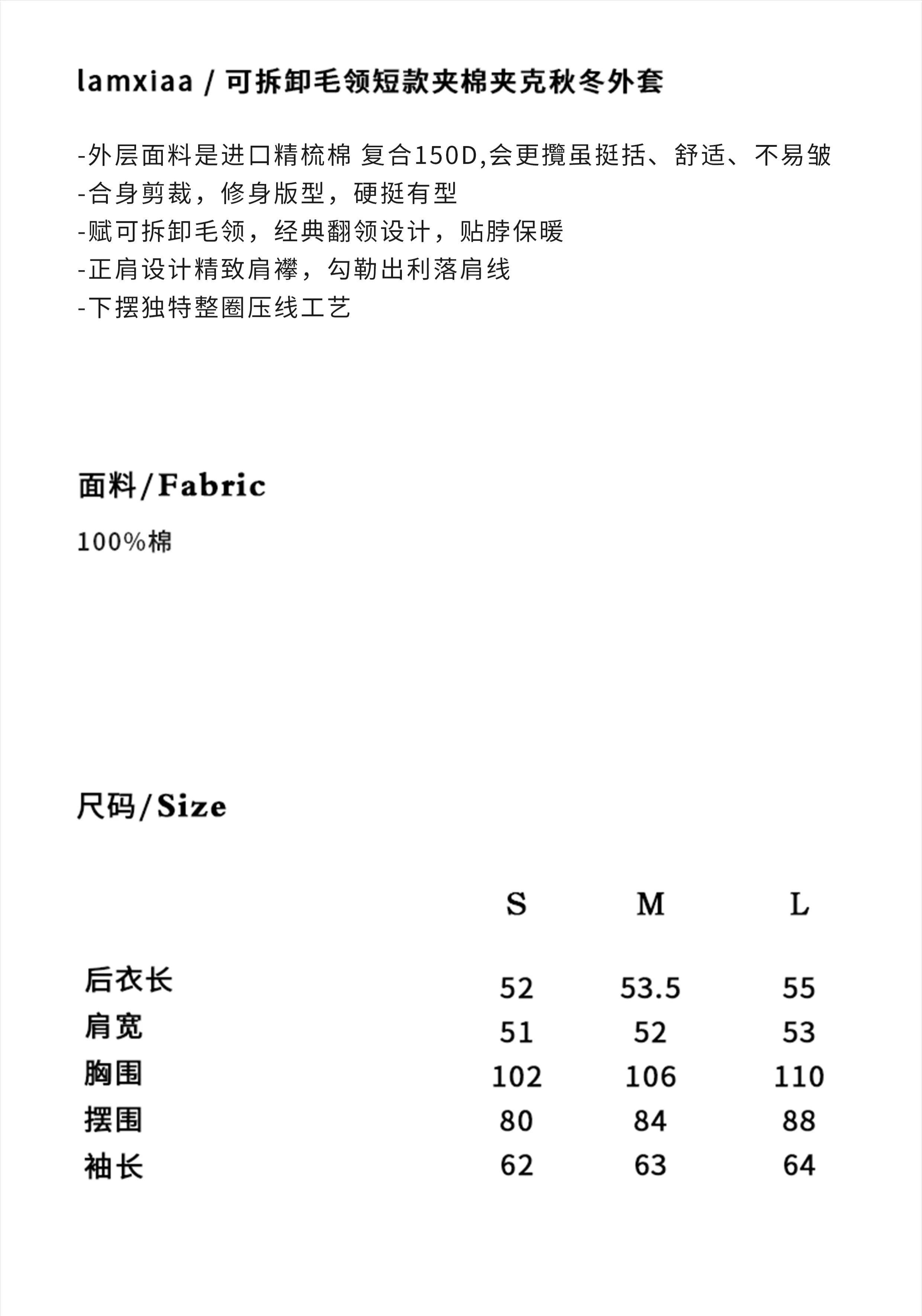 Iamxiaa Detachable Fur Collar High-End Short Black Thickened Jacket Cotton Coat for Petite Women Winter