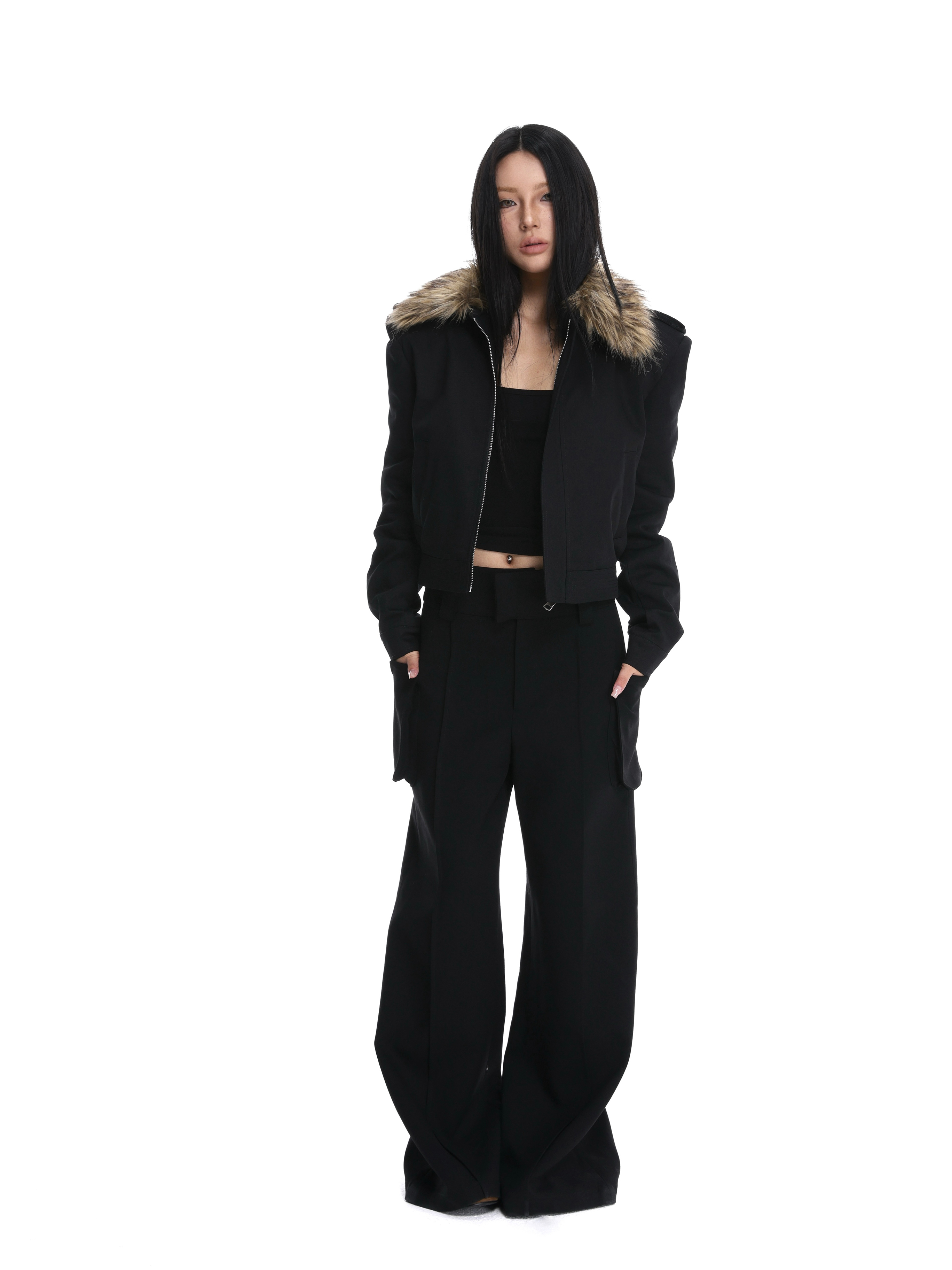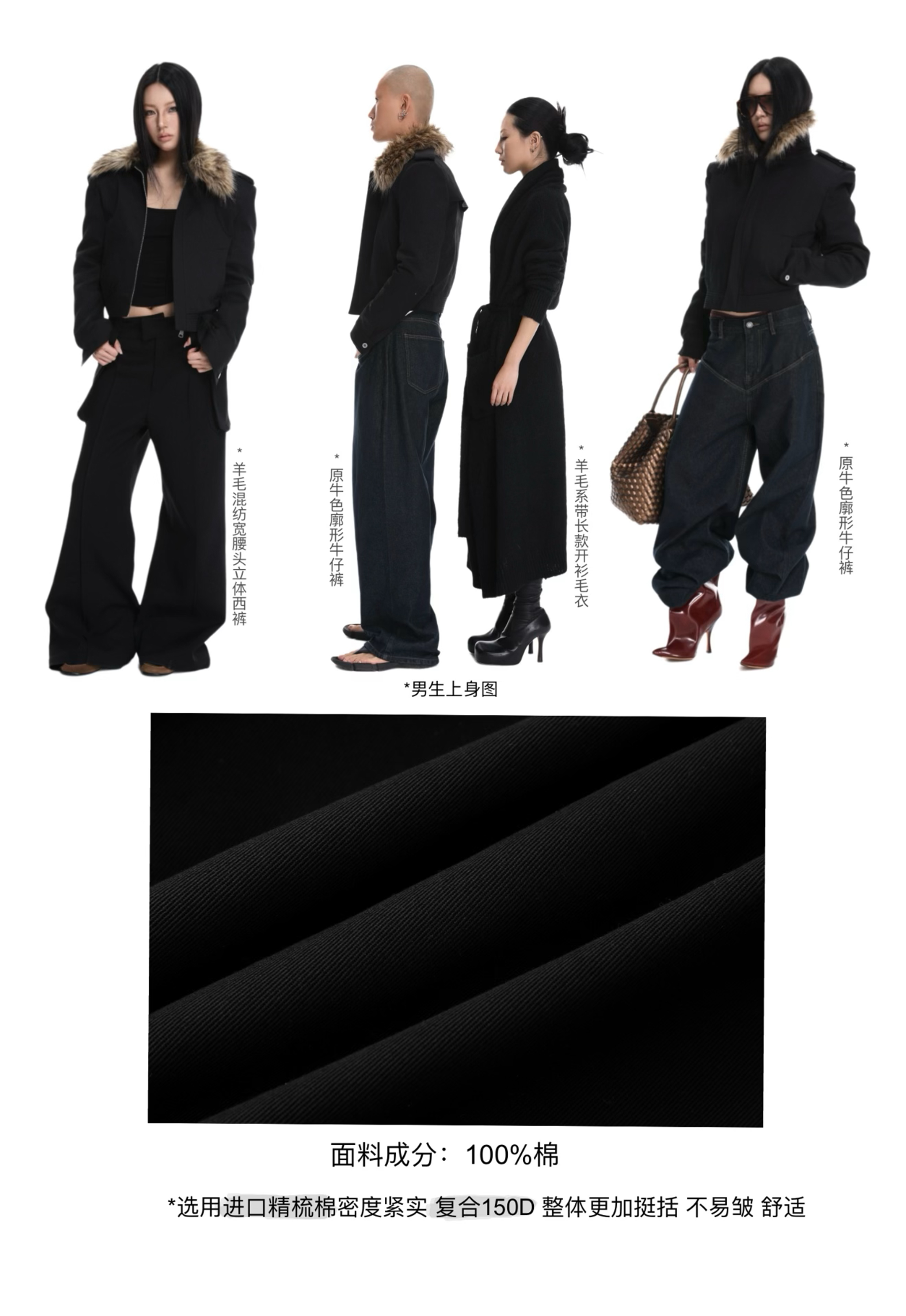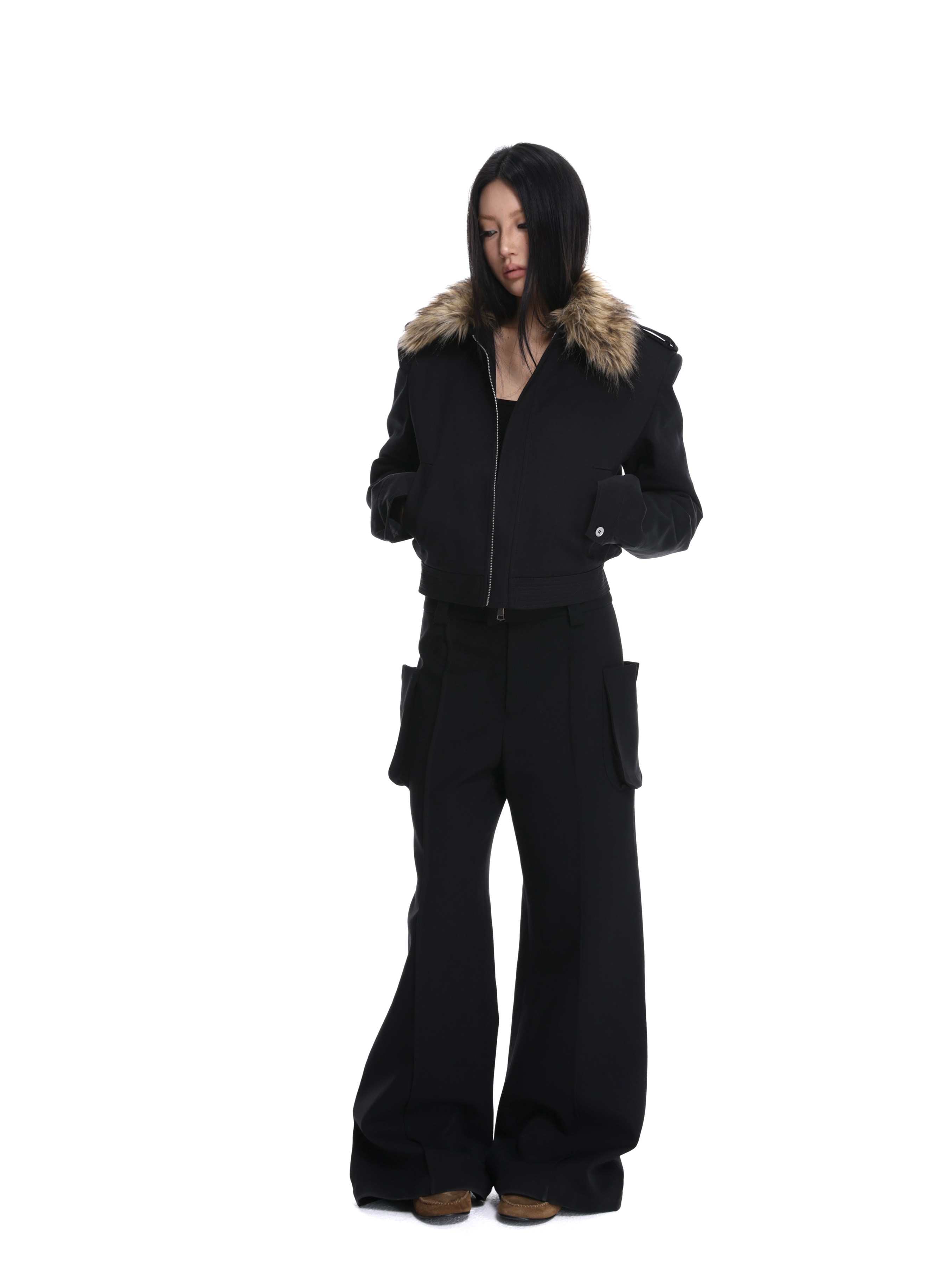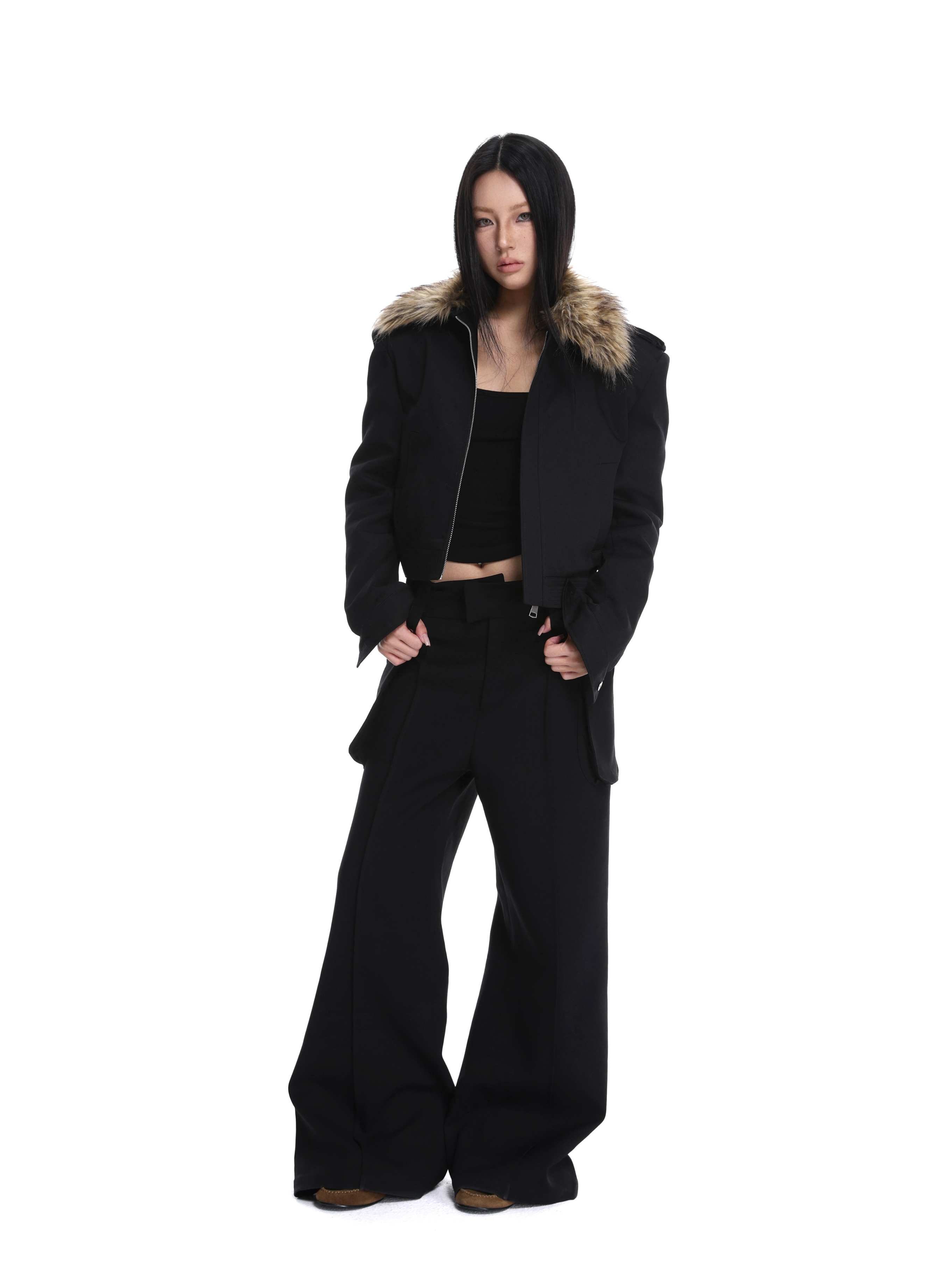 Iamxiaa Detachable Fur Collar High-End Short Black Thickened Jacket Cotton Coat for Petite Women Winter