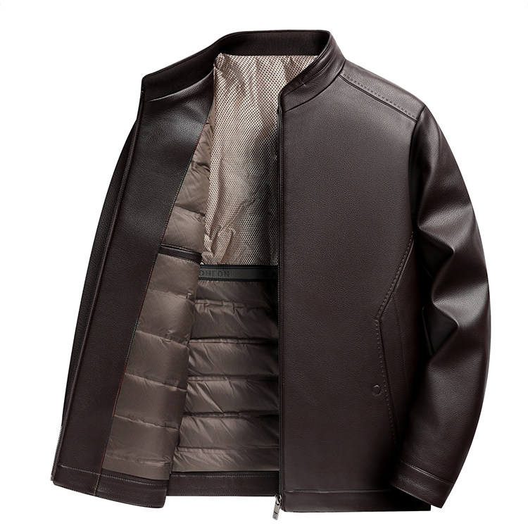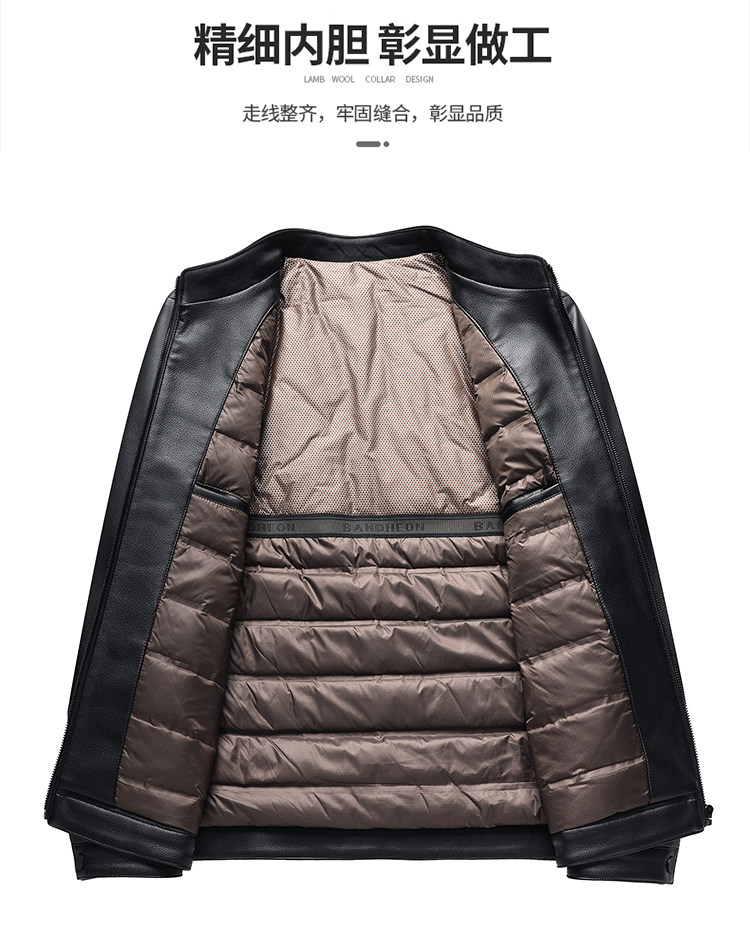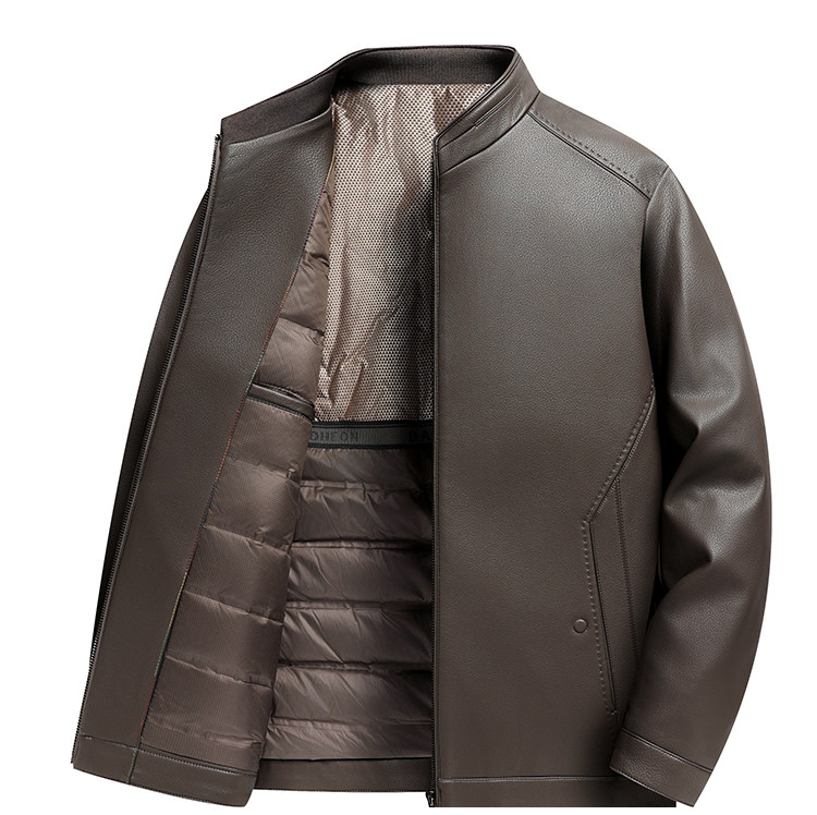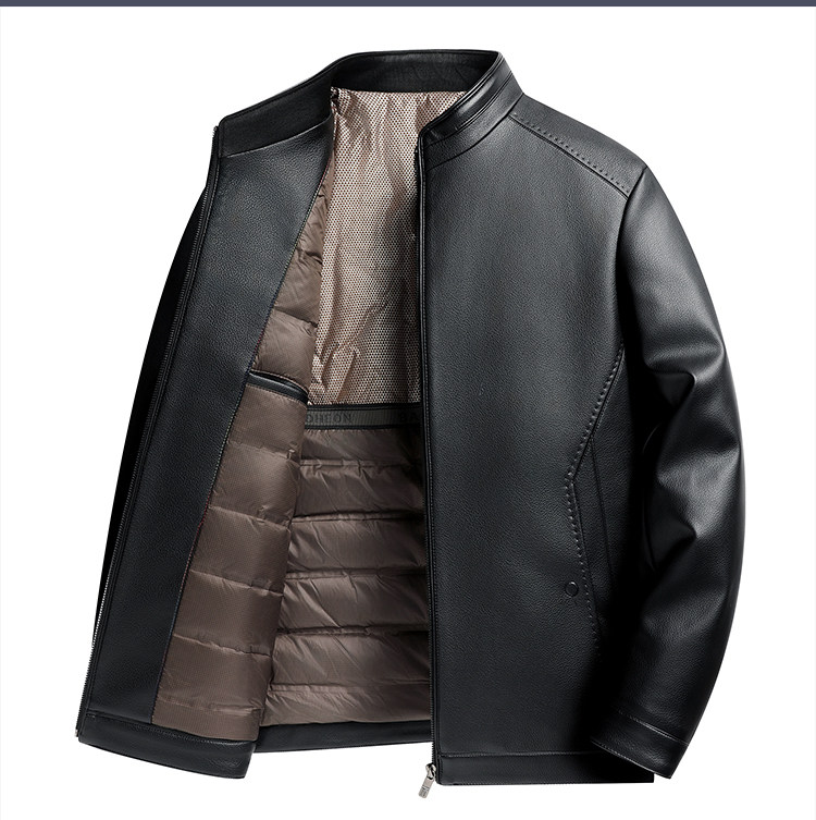 Haining Genuine Leather Down-Lined Leather Jacket for Men, Middle-Aged and Elderly, Thickened Autumn and Winter Leather Jacket, Dad's Sheepskin Warm Coat