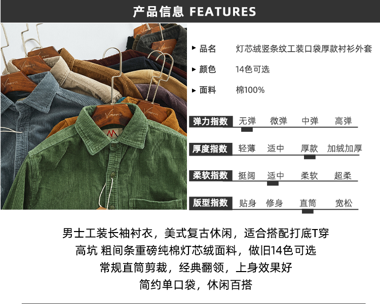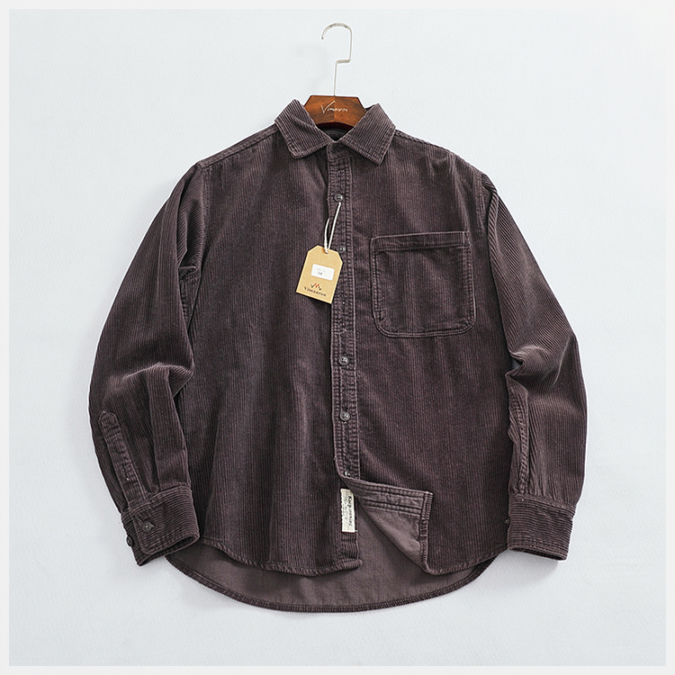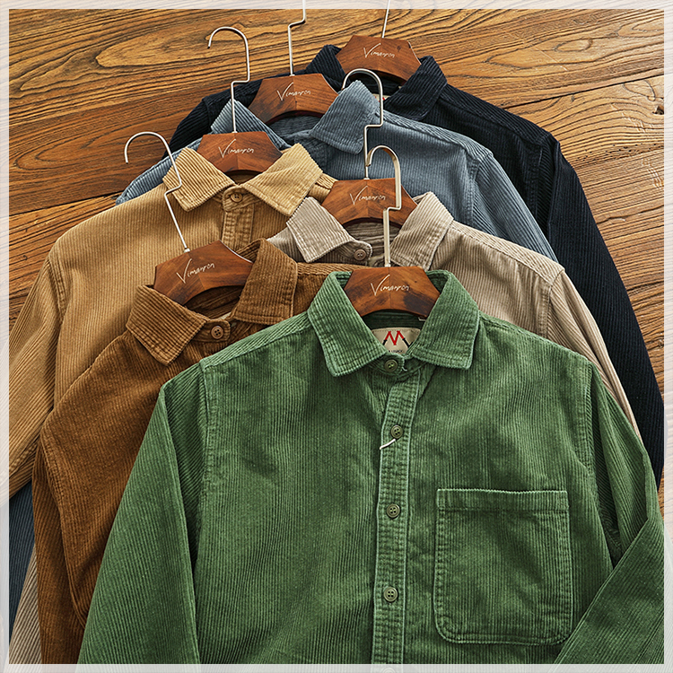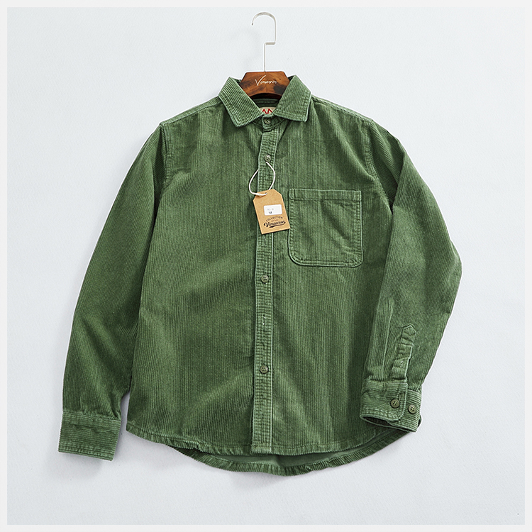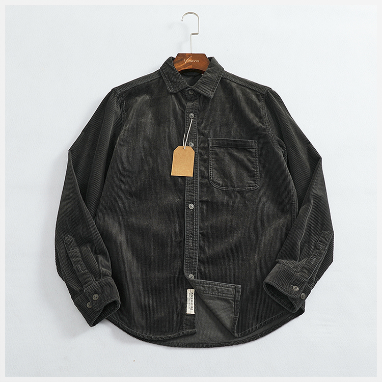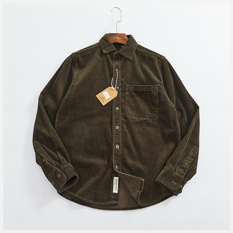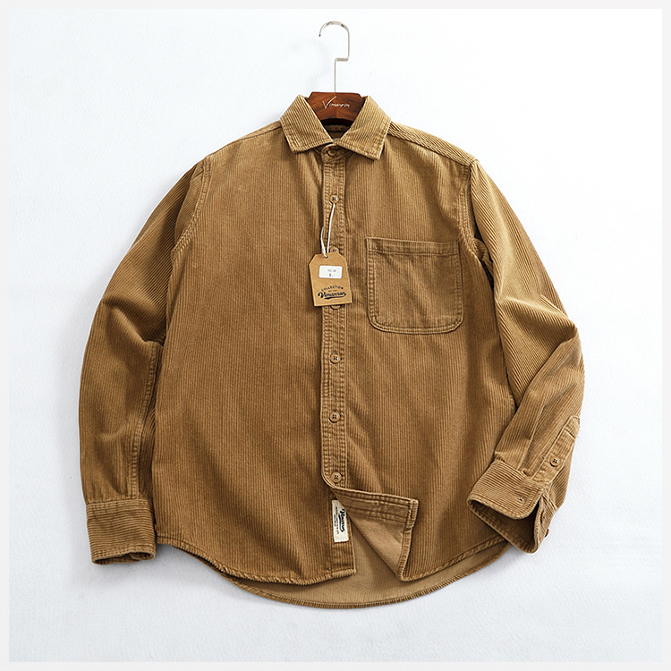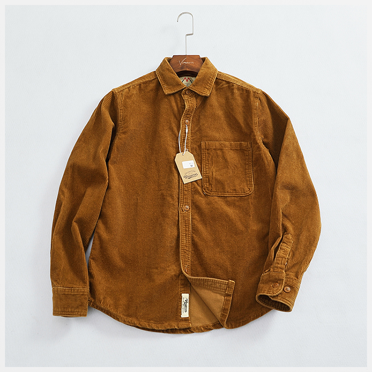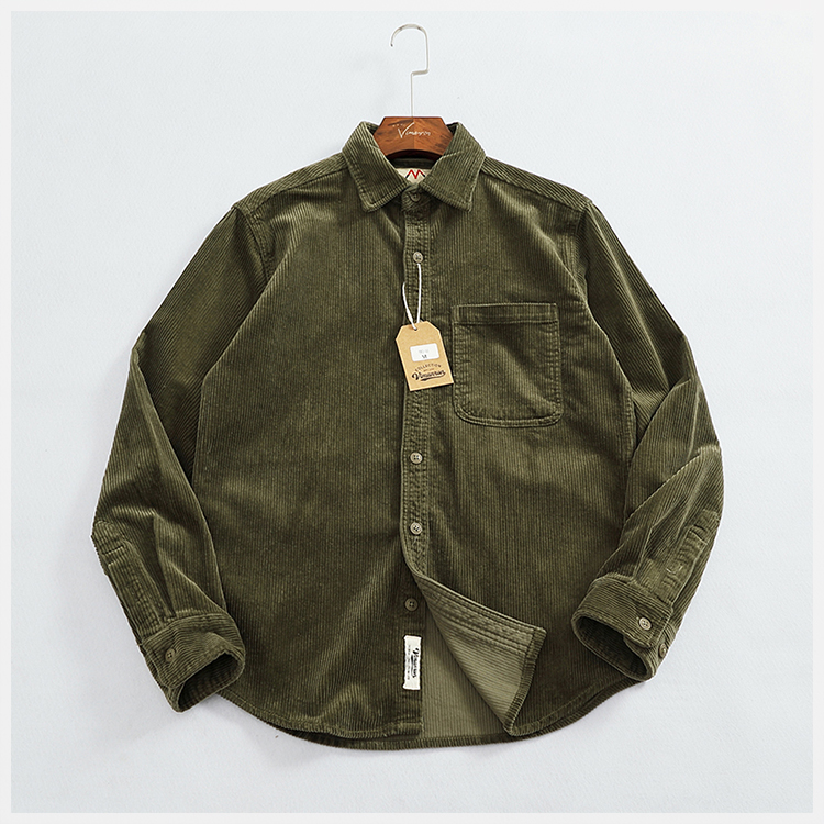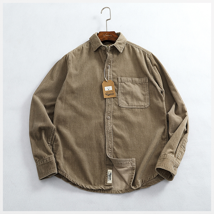 Heavyweight Thick High-Quality Striped Vintage Corduroy Long-Sleeve Shirt Men's Autumn Pure Cotton Work Shirt Jacket