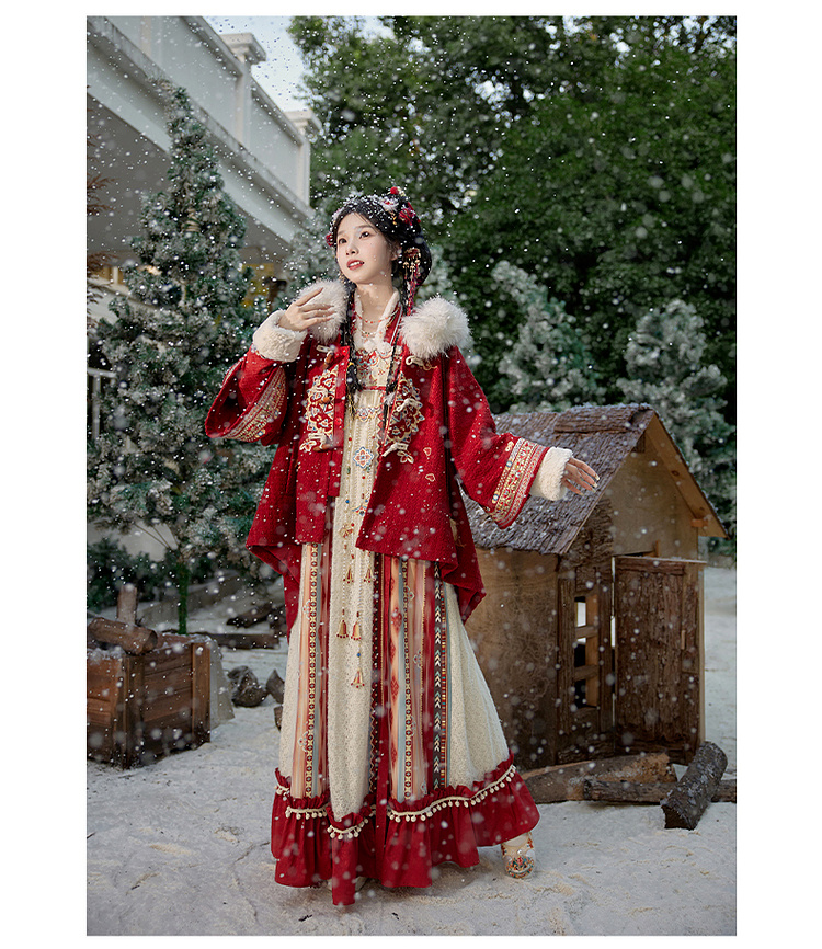July Evening Original Hanfu Luosang National Style Red Cape Shawl Chest-Length Dress Set for Women 2024 Autumn/Winter