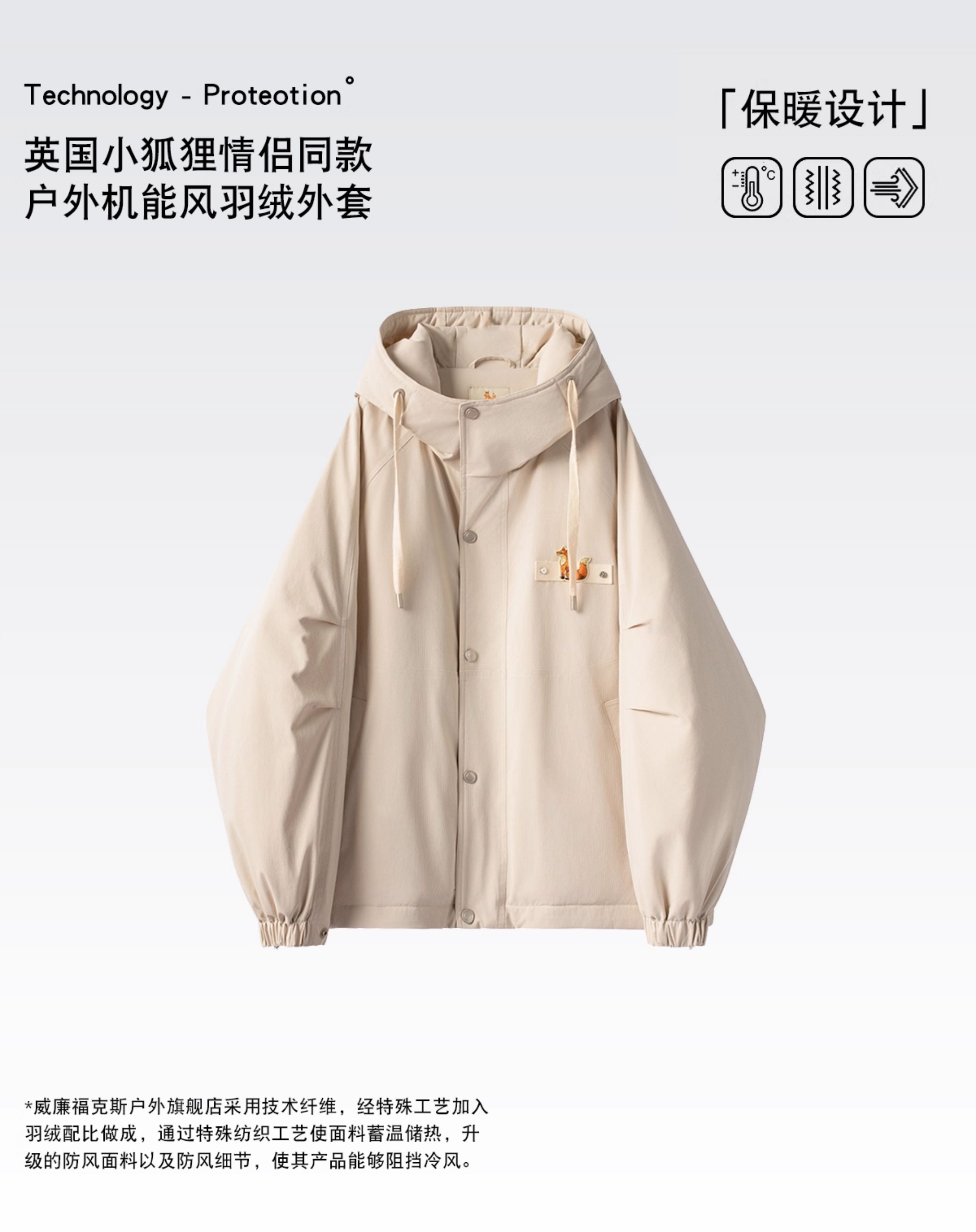 British Little Fox 25 Winter Outdoor Functional Style Thickened Warm Hooded down Jacket for Men and Women High-Density Windproof Coat