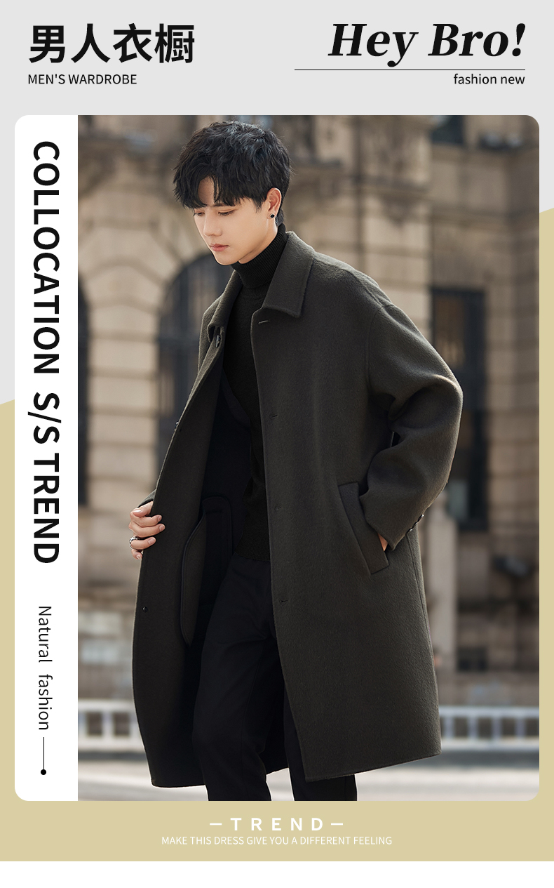 Double-Sided Woolen Coat for Men 2025 New Autumn and Winter Thickened Mid-Length Trench Coat Woolen Jacket
