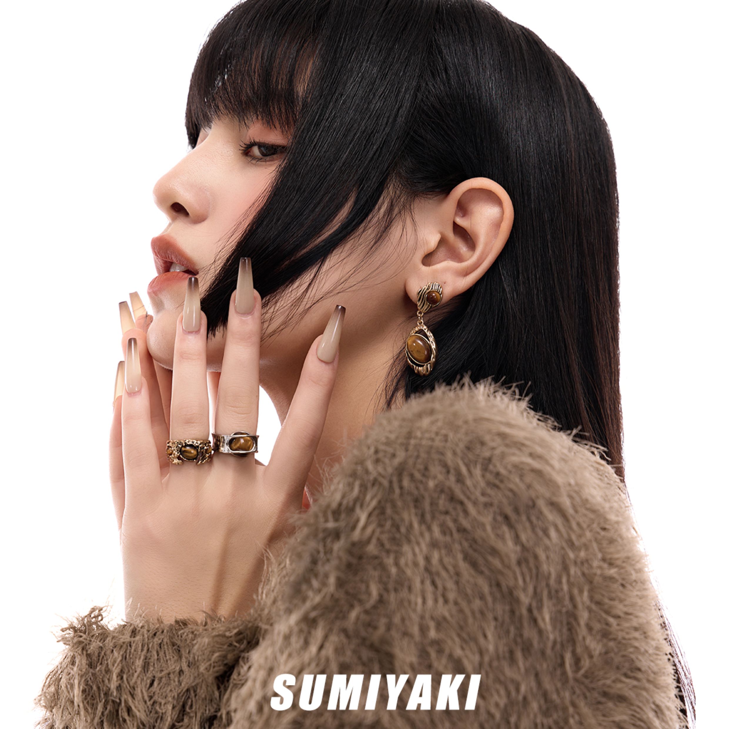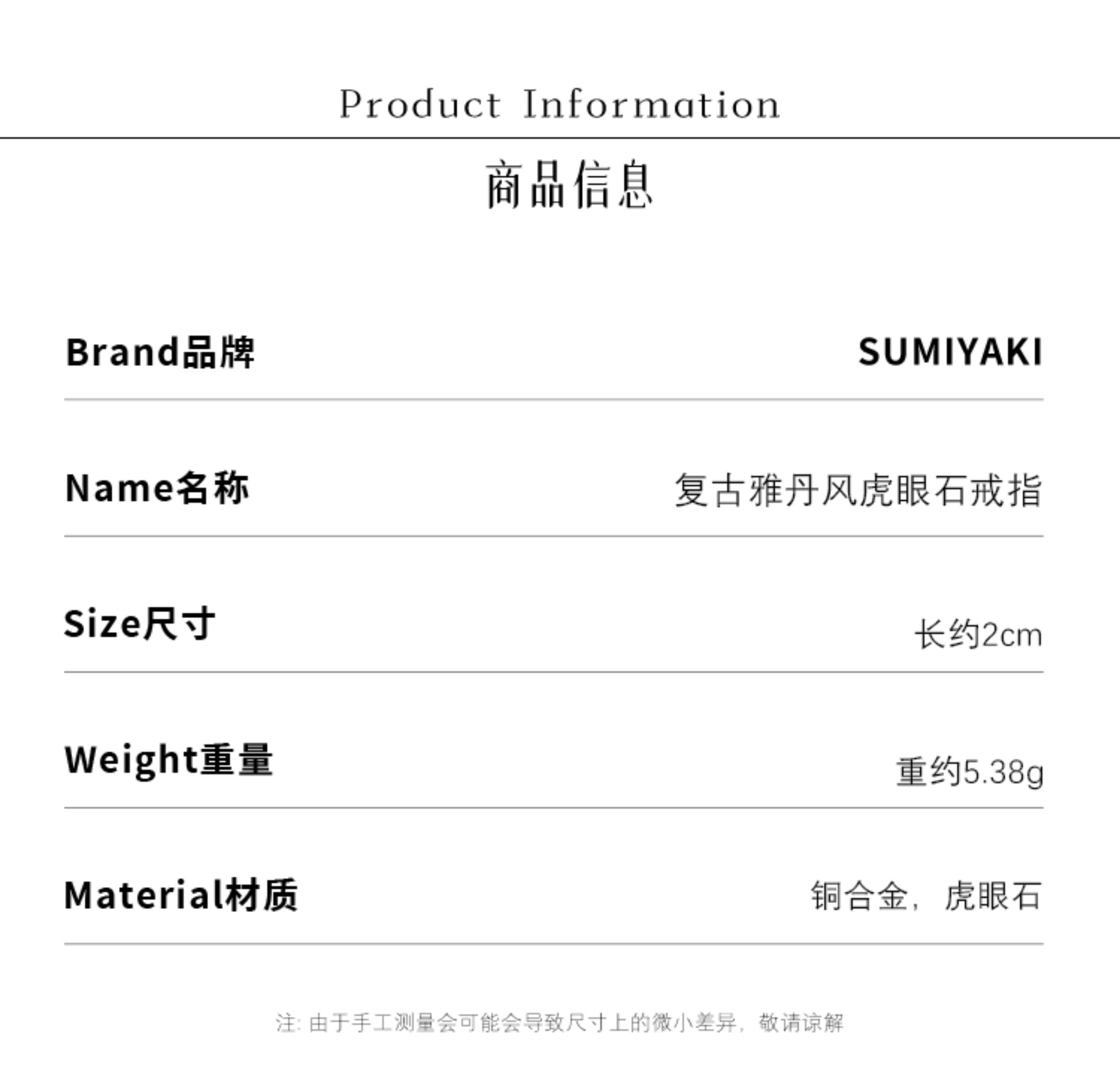 Sumiyaki Vintage Yadan Style Tiger Eye Stone Ring for Women, Adjustable Ring, Niche Autumn and Winter Design, Open Ring for Women