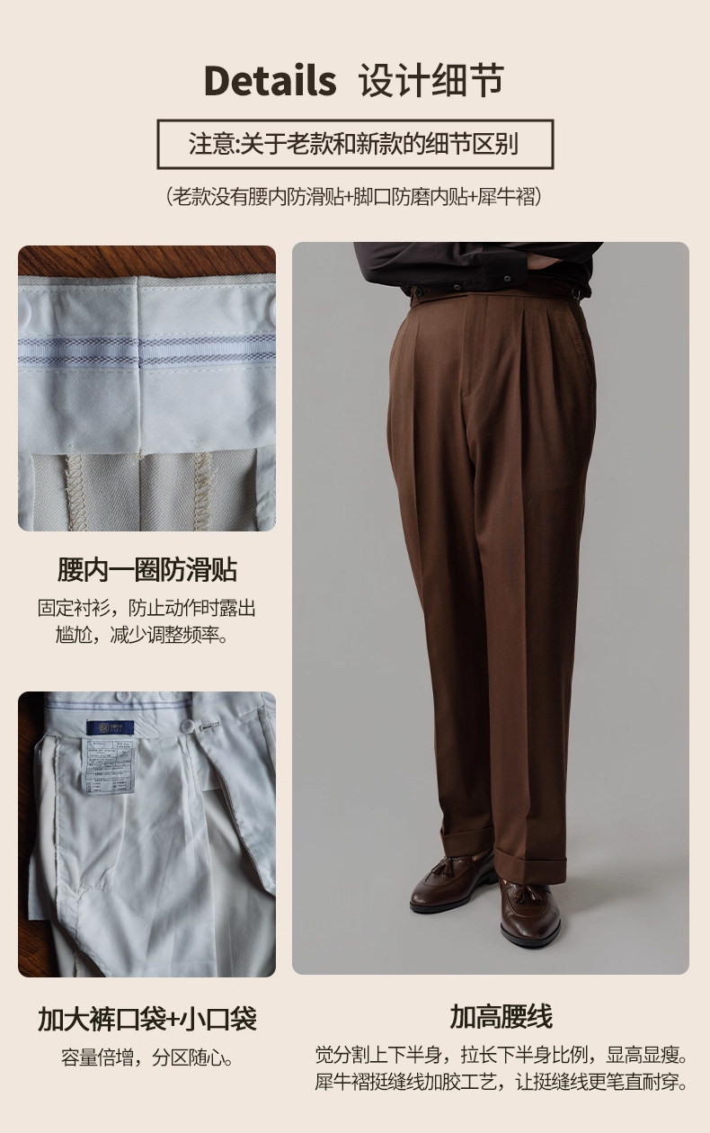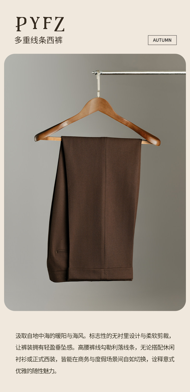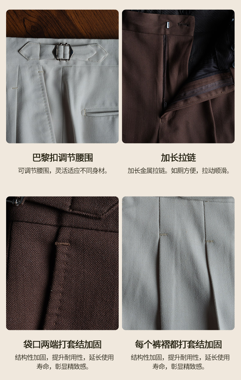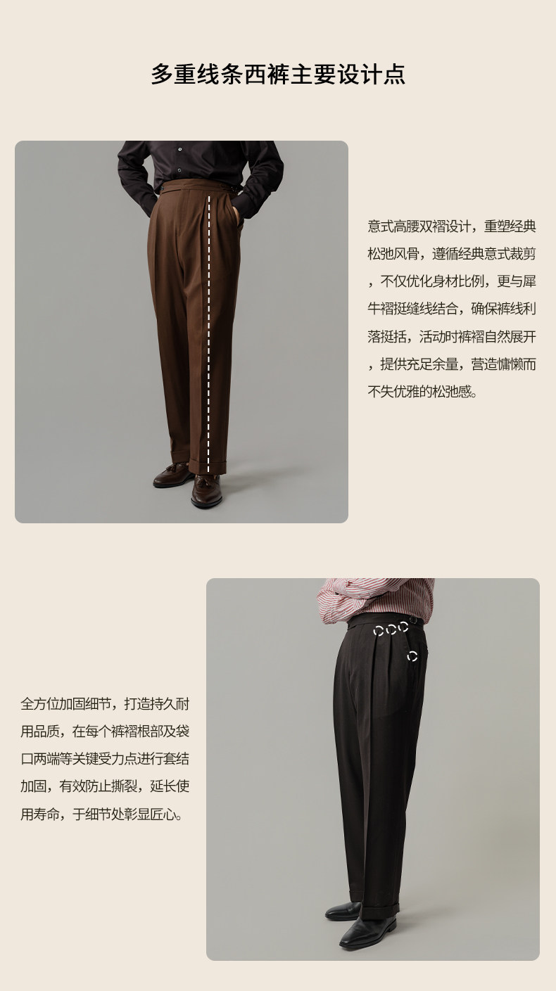【Men's High-Waisted Dress Pants with Multiple Lines】Flat, Square, Mid-Length, Straight-Leg Pants for Commuting, Italian Naples Style, Business Casual