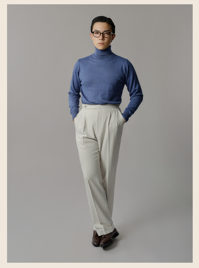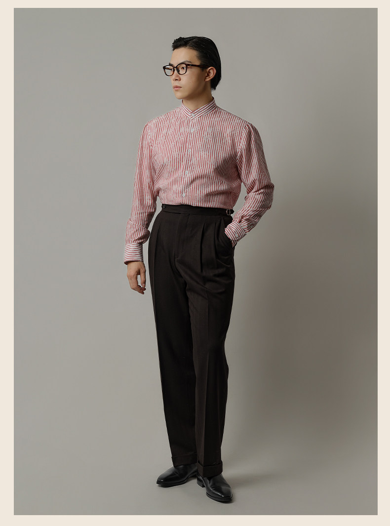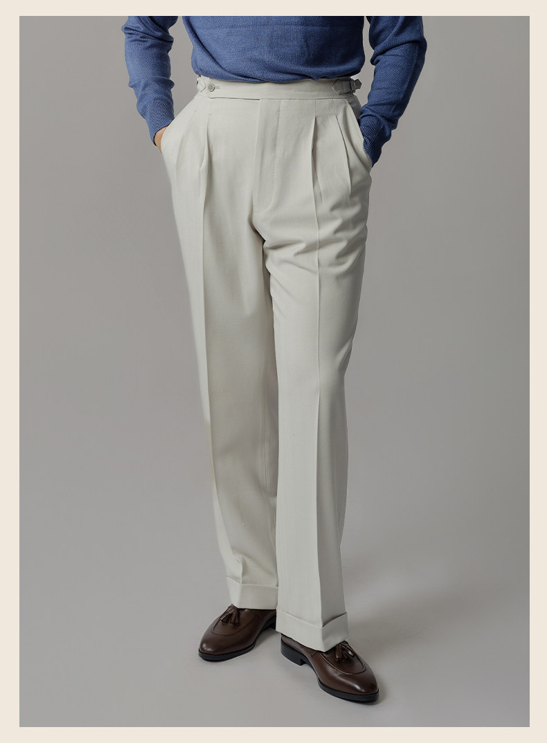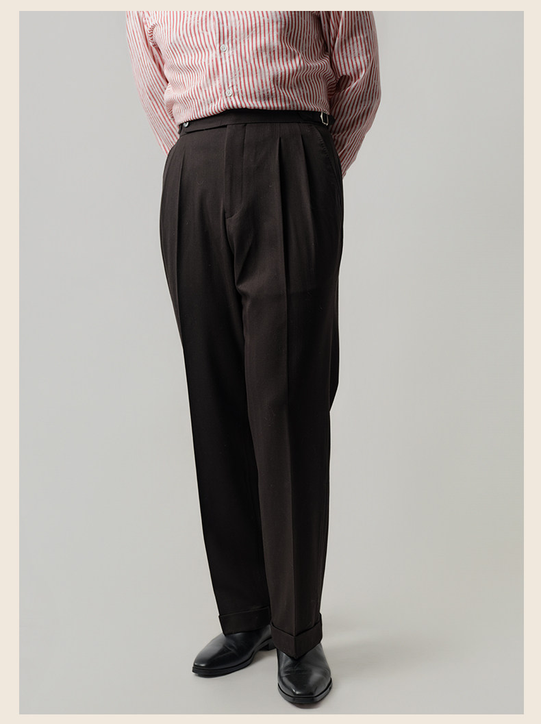 【Men's High-Waisted Dress Pants with Multiple Lines】Flat, Square, Mid-Length, Straight-Leg Pants for Commuting, Italian Naples Style, Business Casual