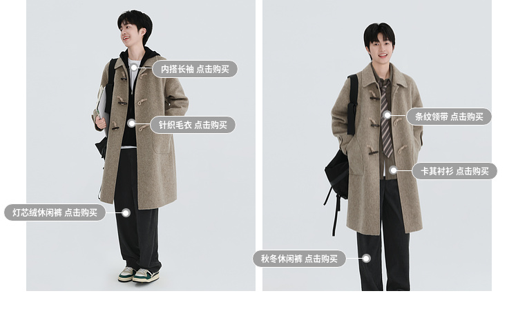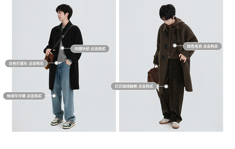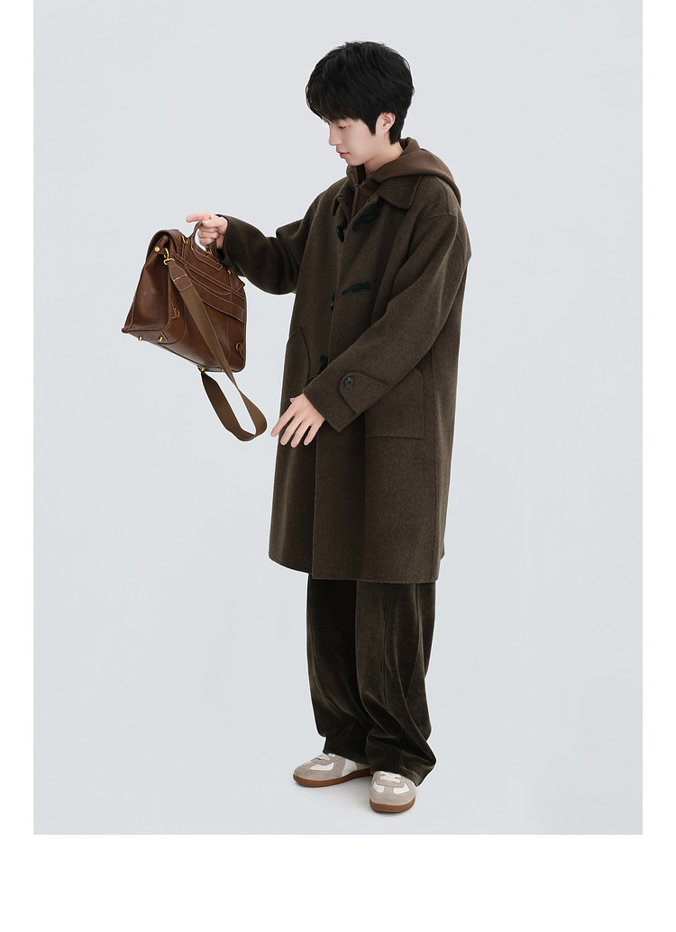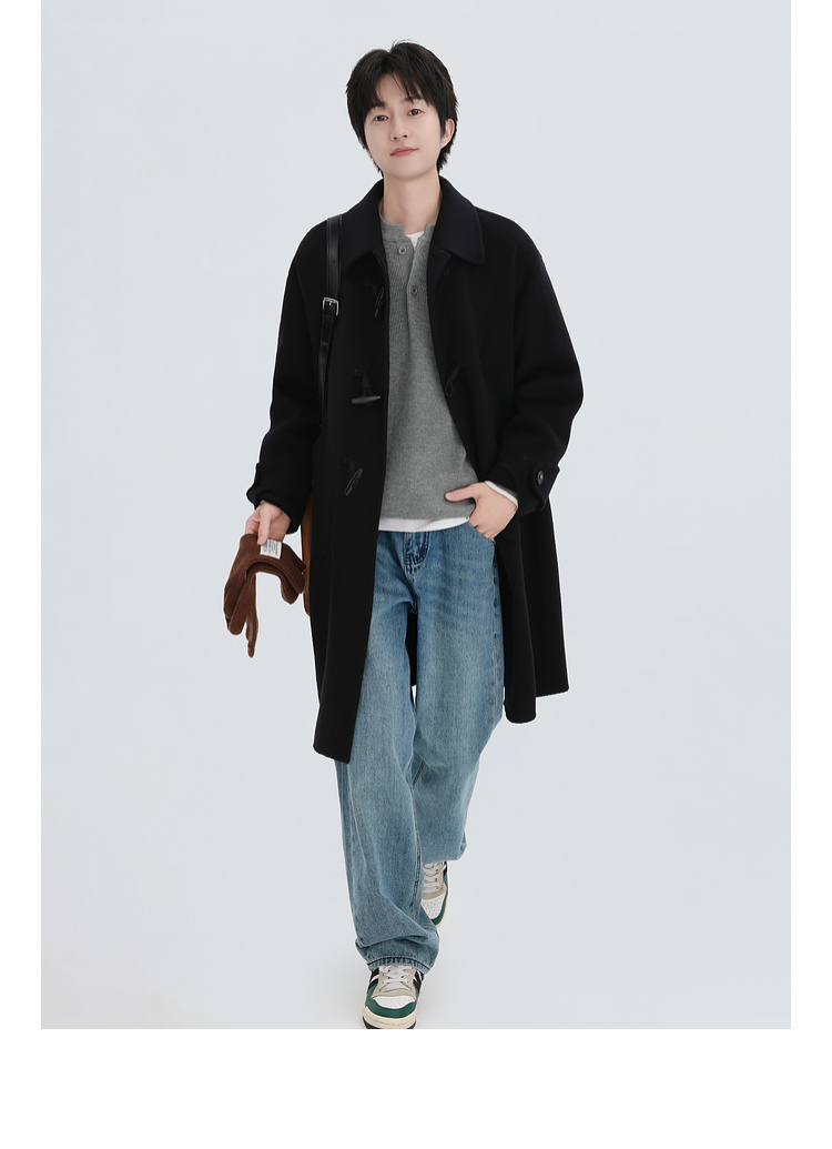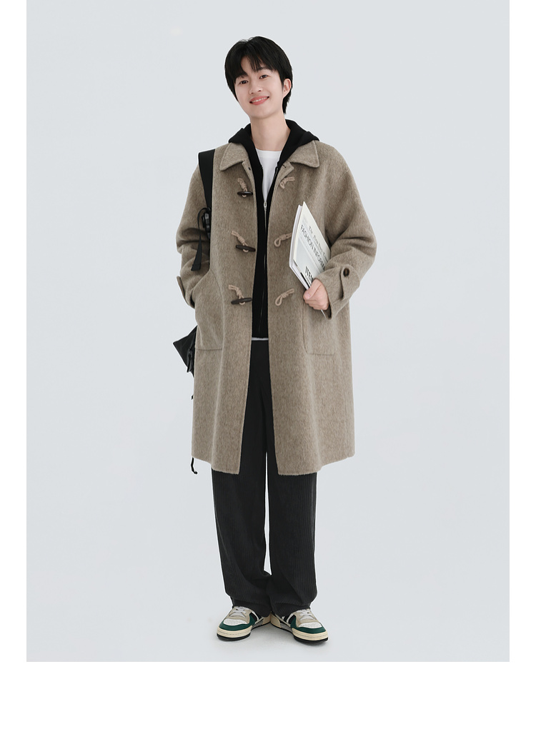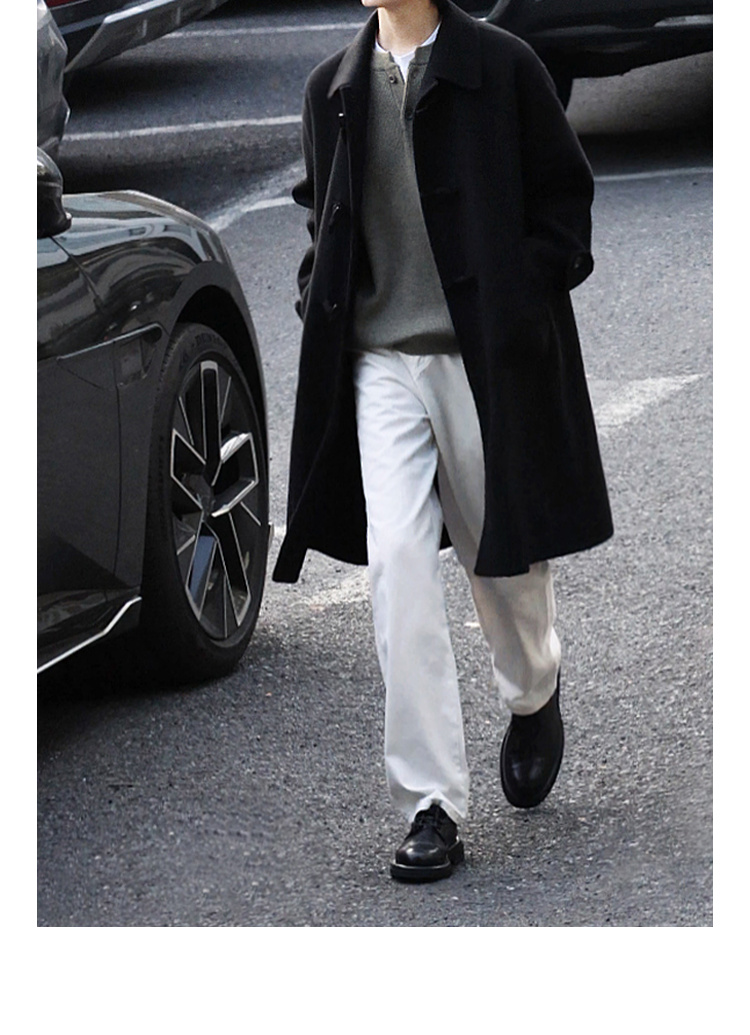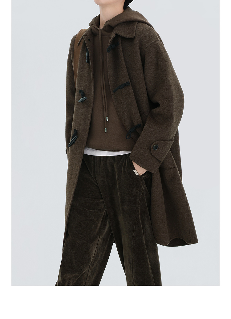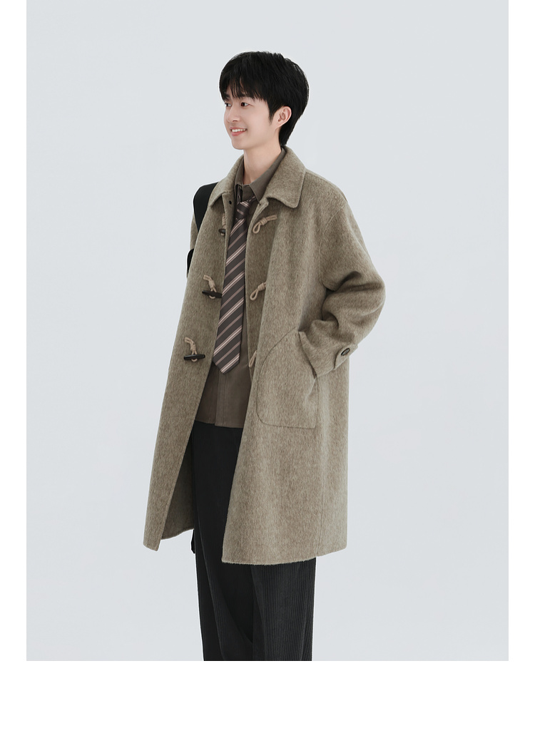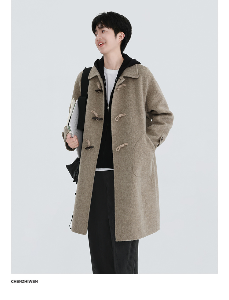 Chen Zhiwen's New Winter All-Wool Double-Sided Woolen Coat with Toggle Buttons and a Lapel, Mid-Length, Warm Coat for Men and Women