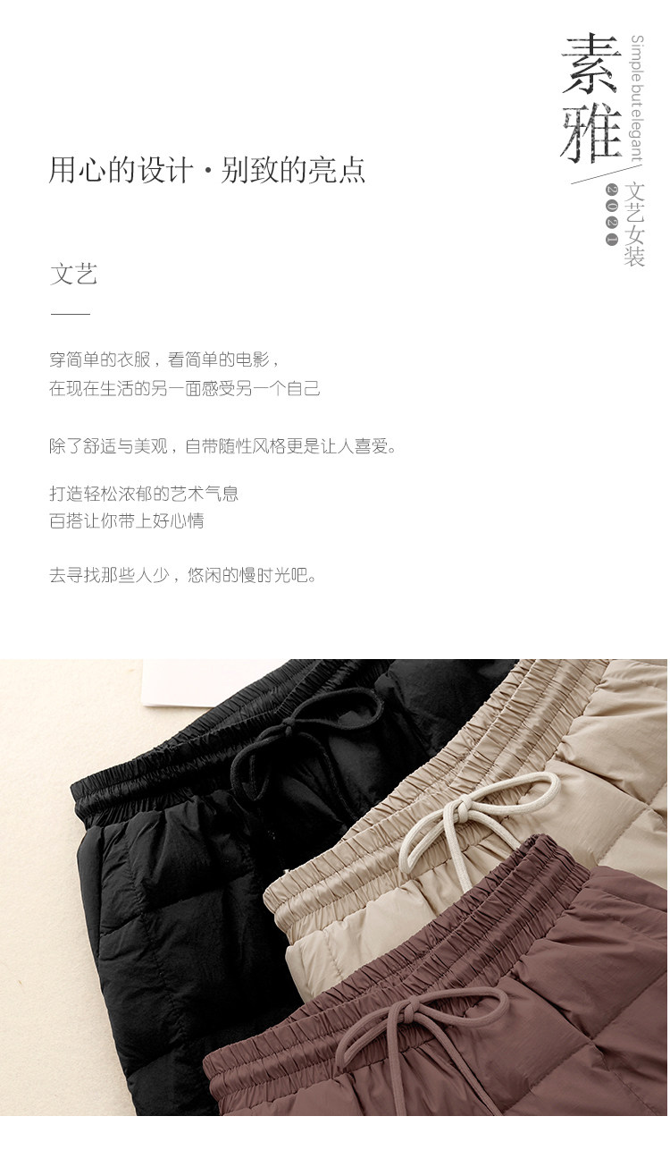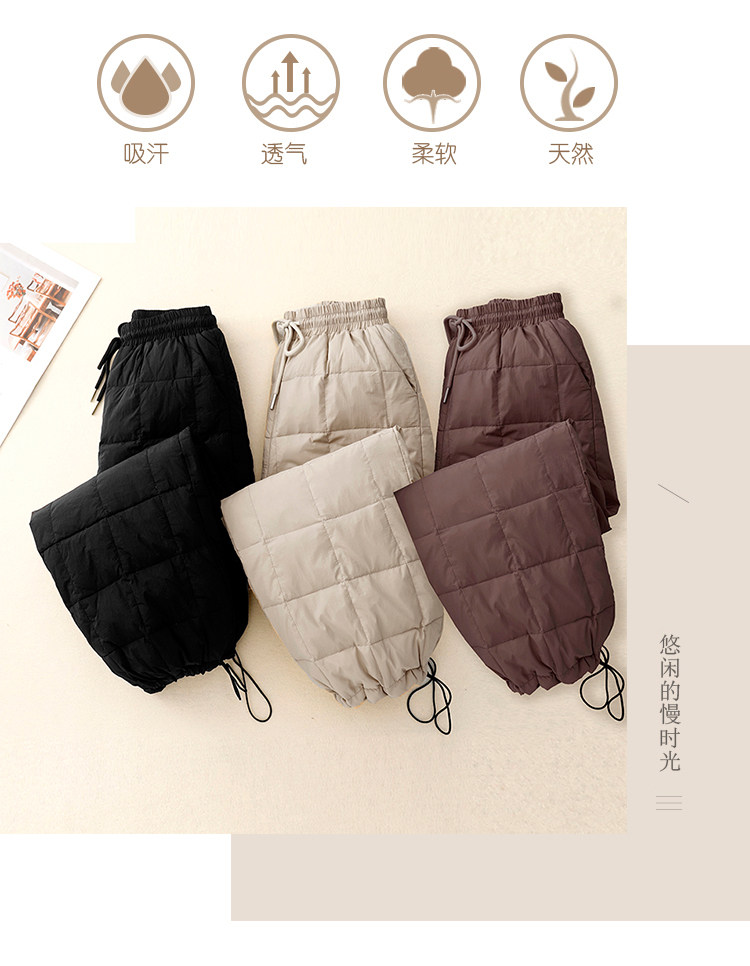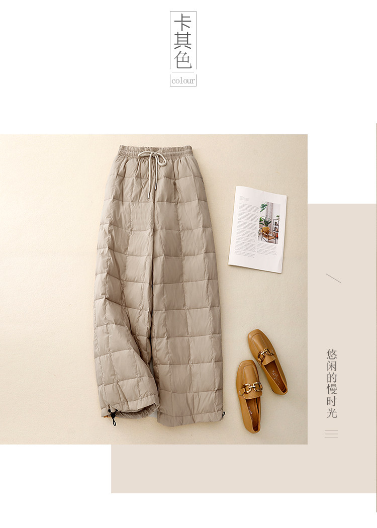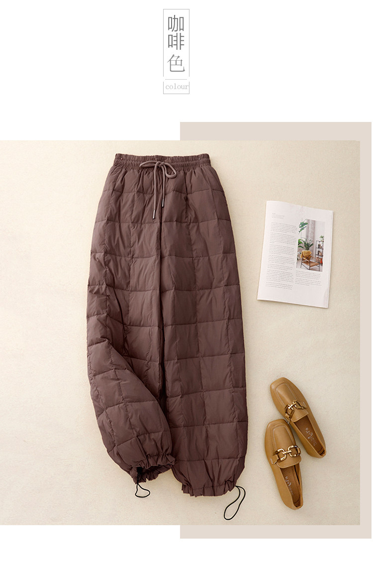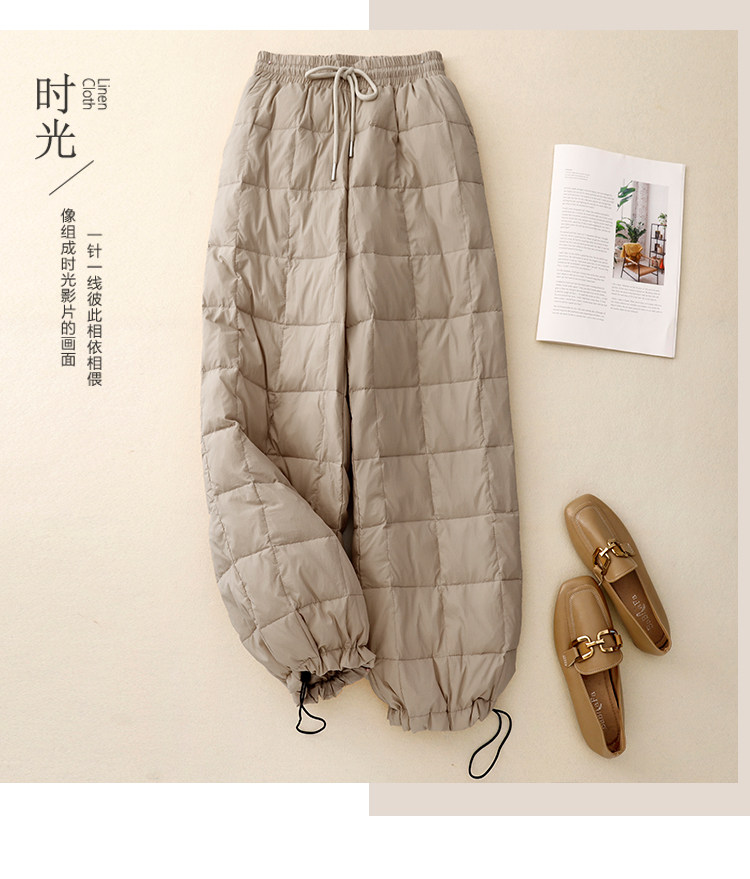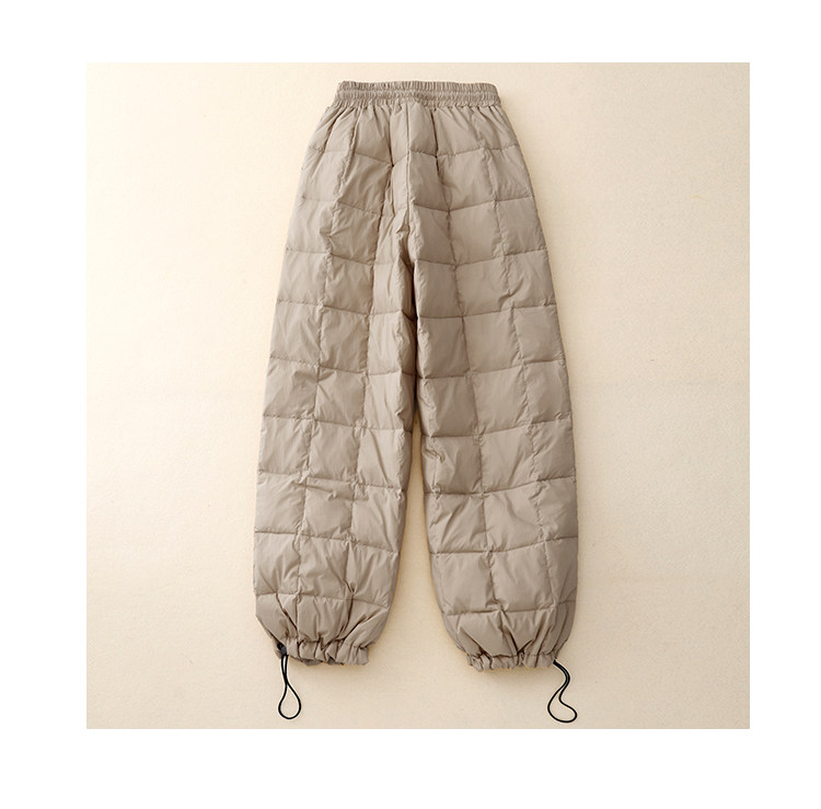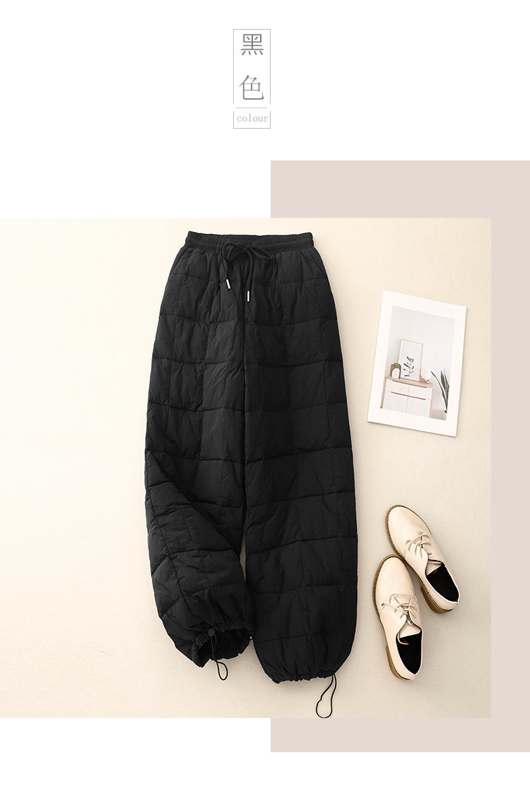 Brand Discount Outlet European Style down Cotton Pants for Women, Winter Outerwear, High-Waisted Drawstring, Thickened, Cold-Proof, Straight-Leg Wide-Leg Pants