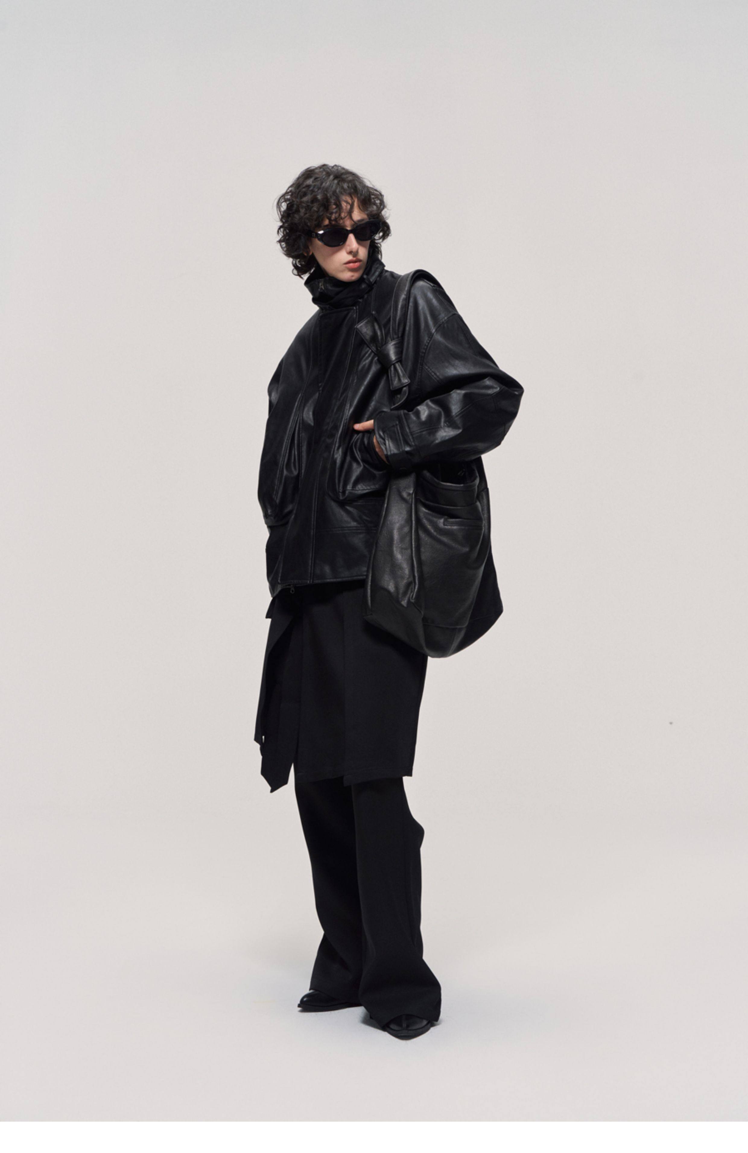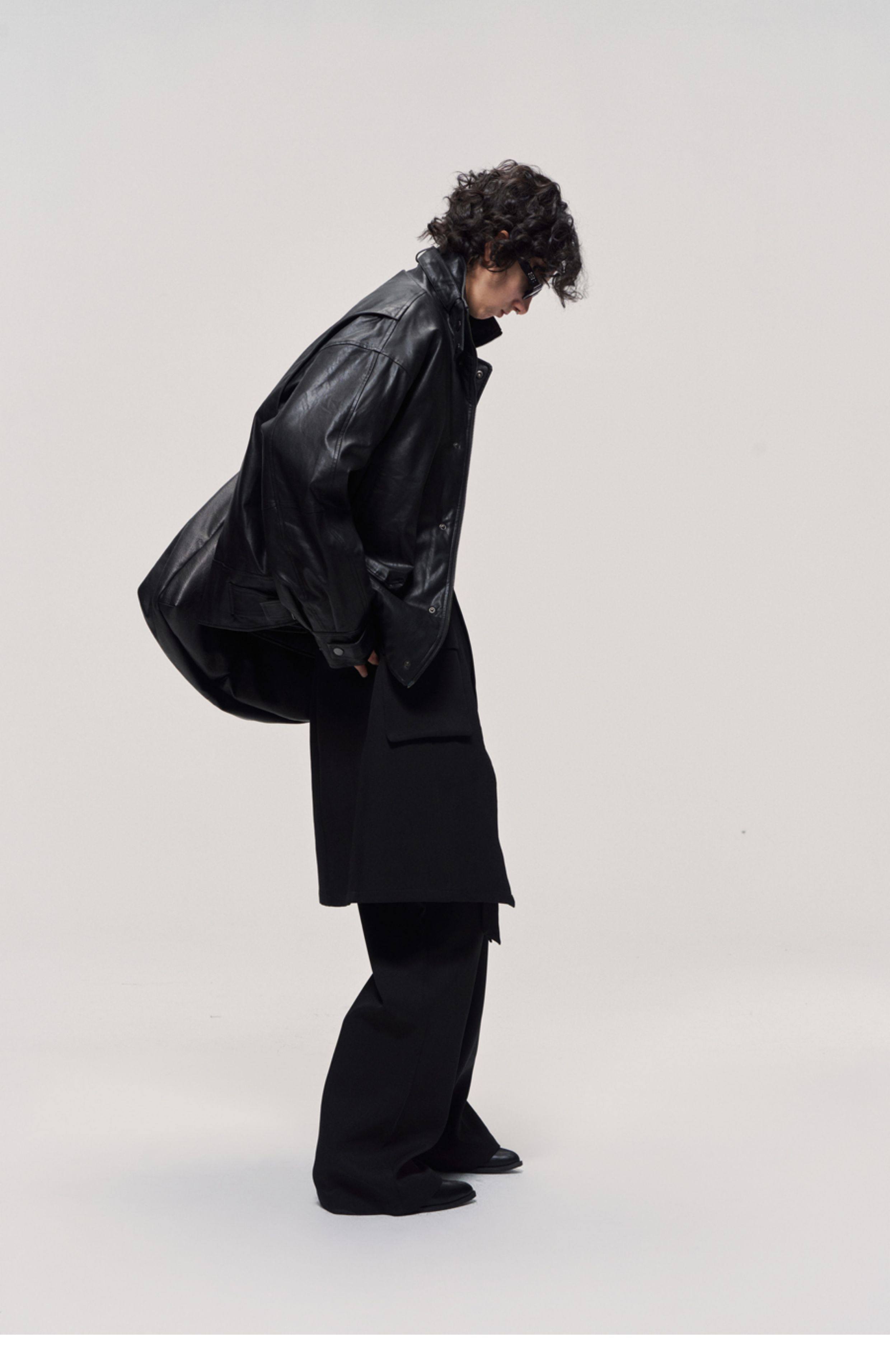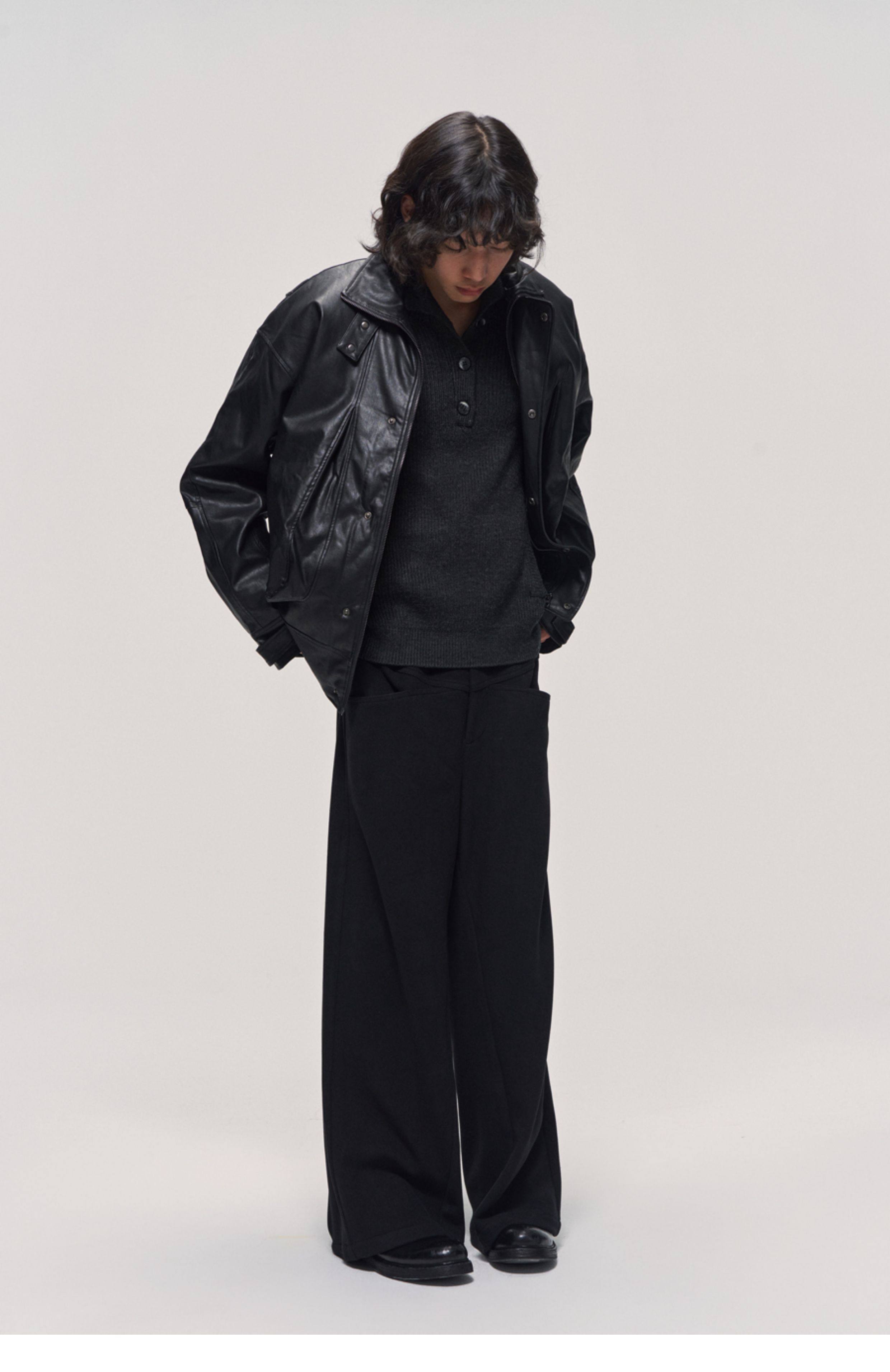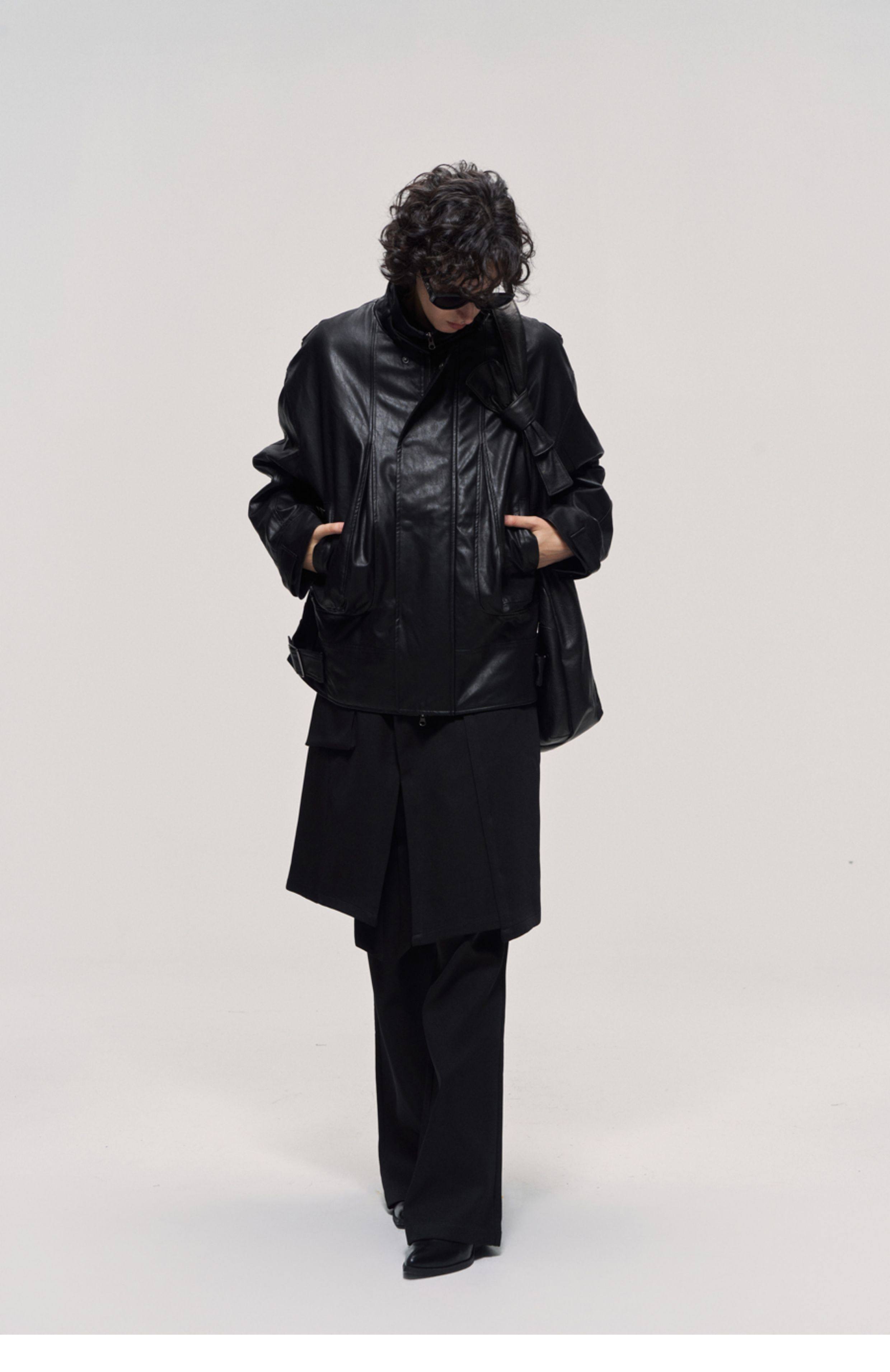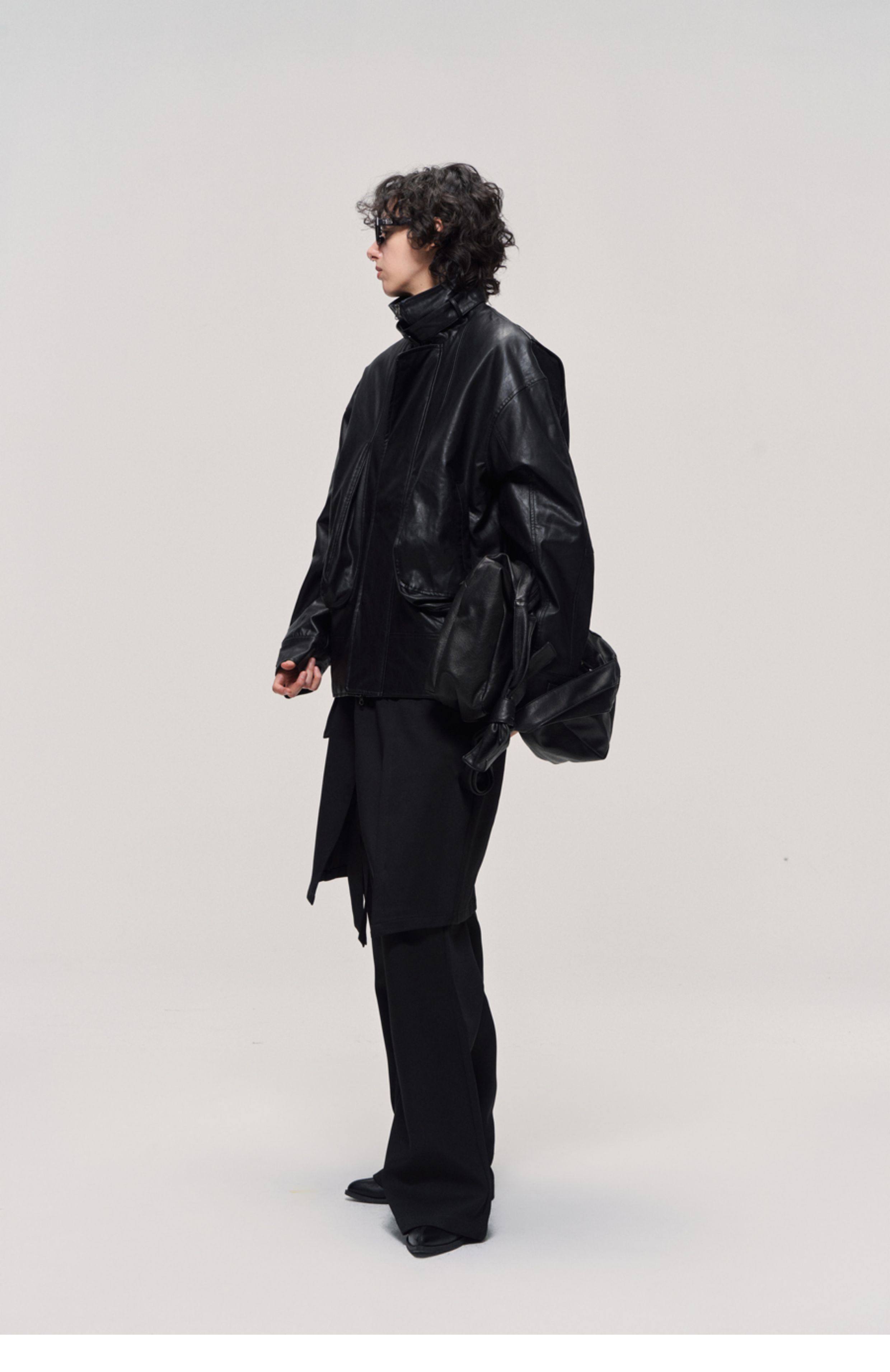 Limpidoculus Washed and Distressed Mid-Length Quilted Stand-Collar Leather Jacket Thick Coat