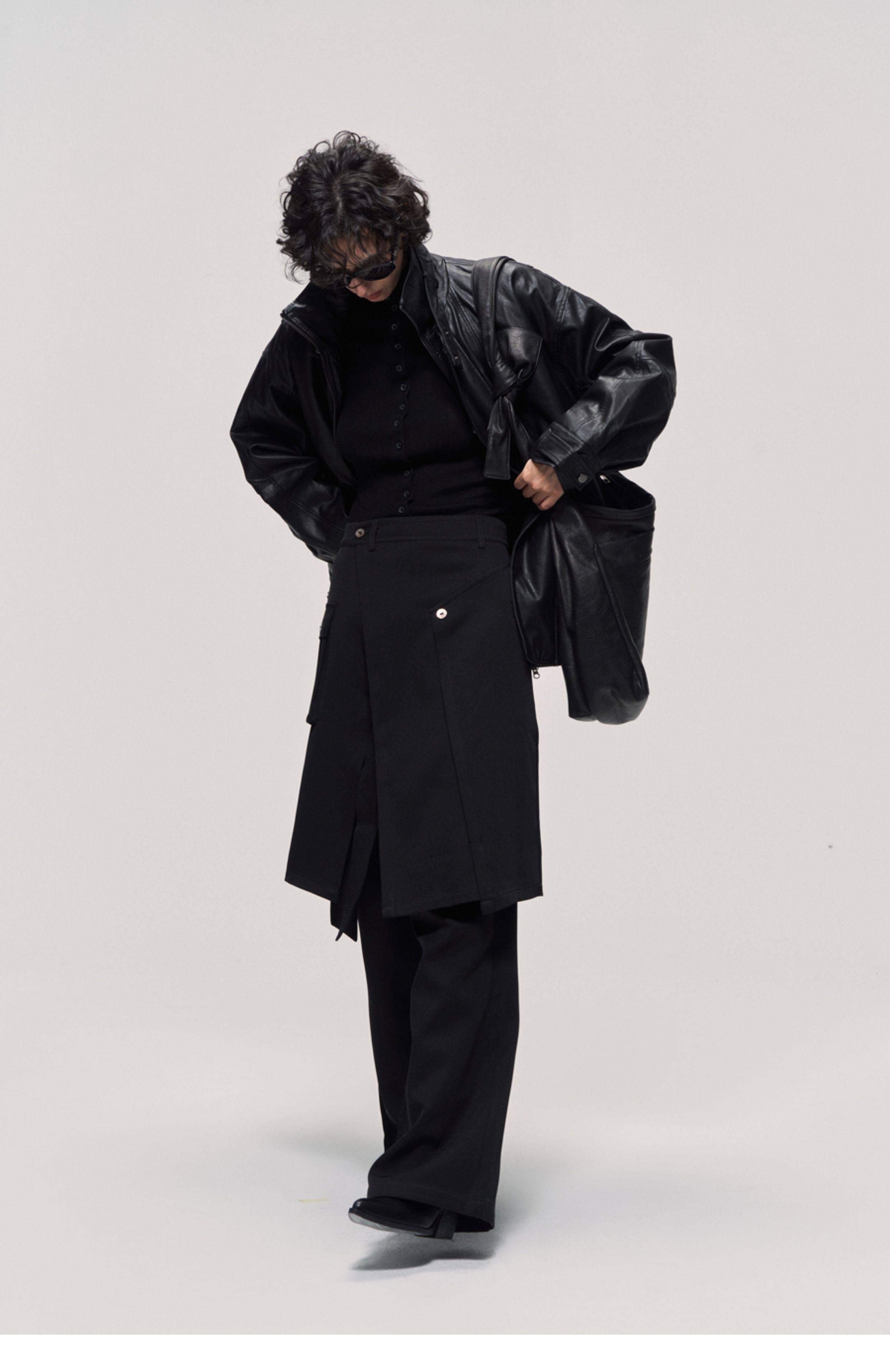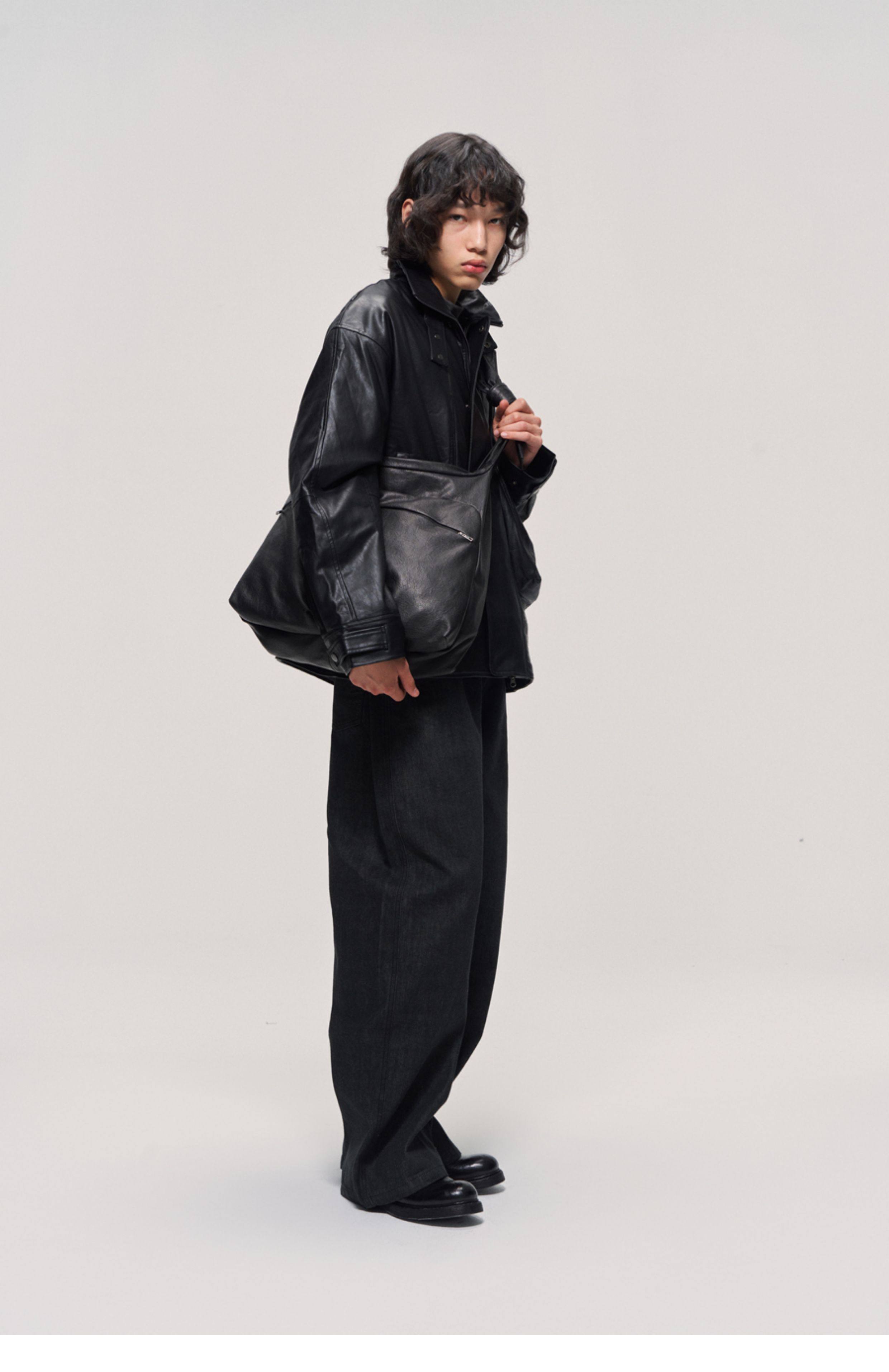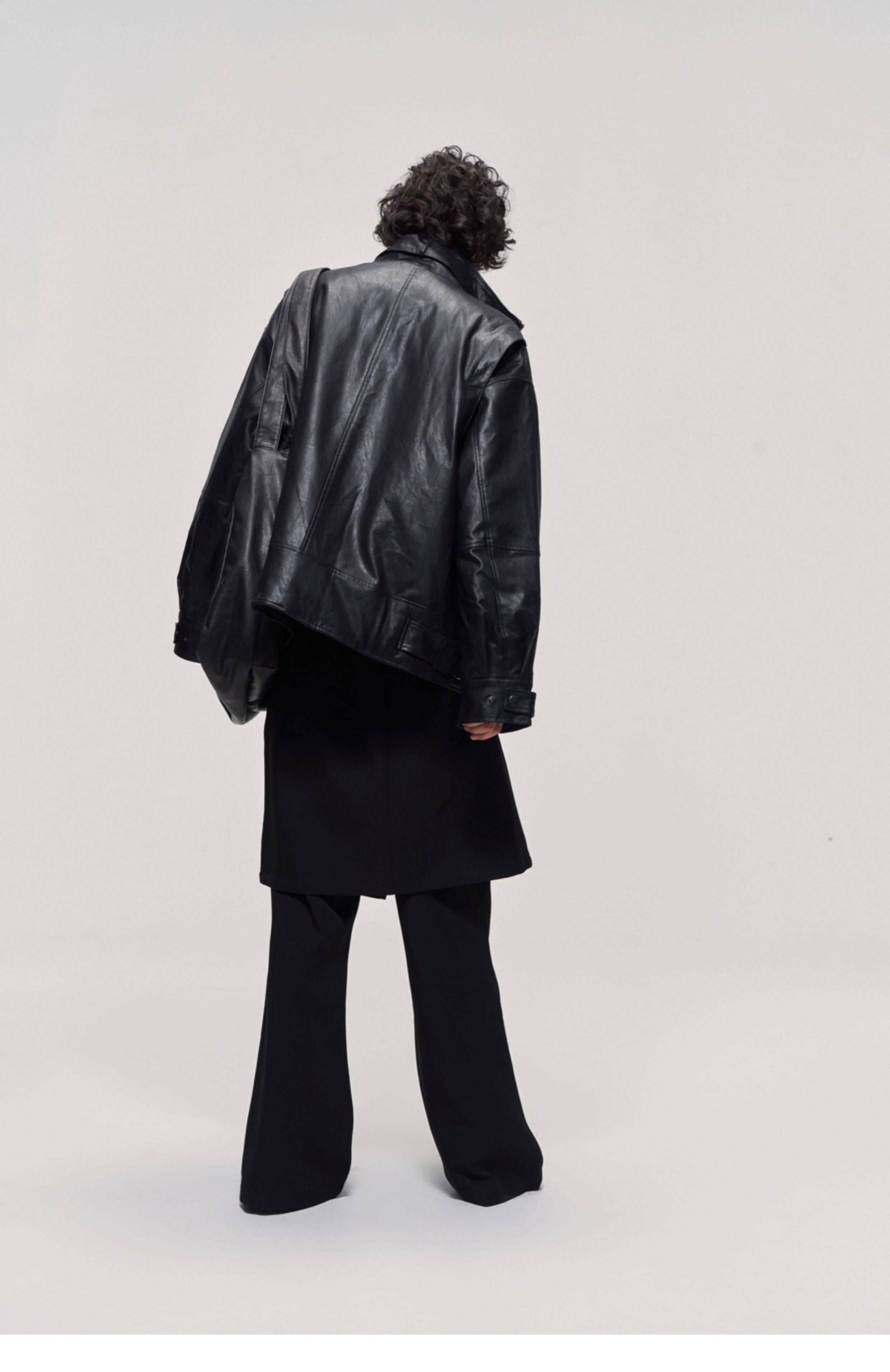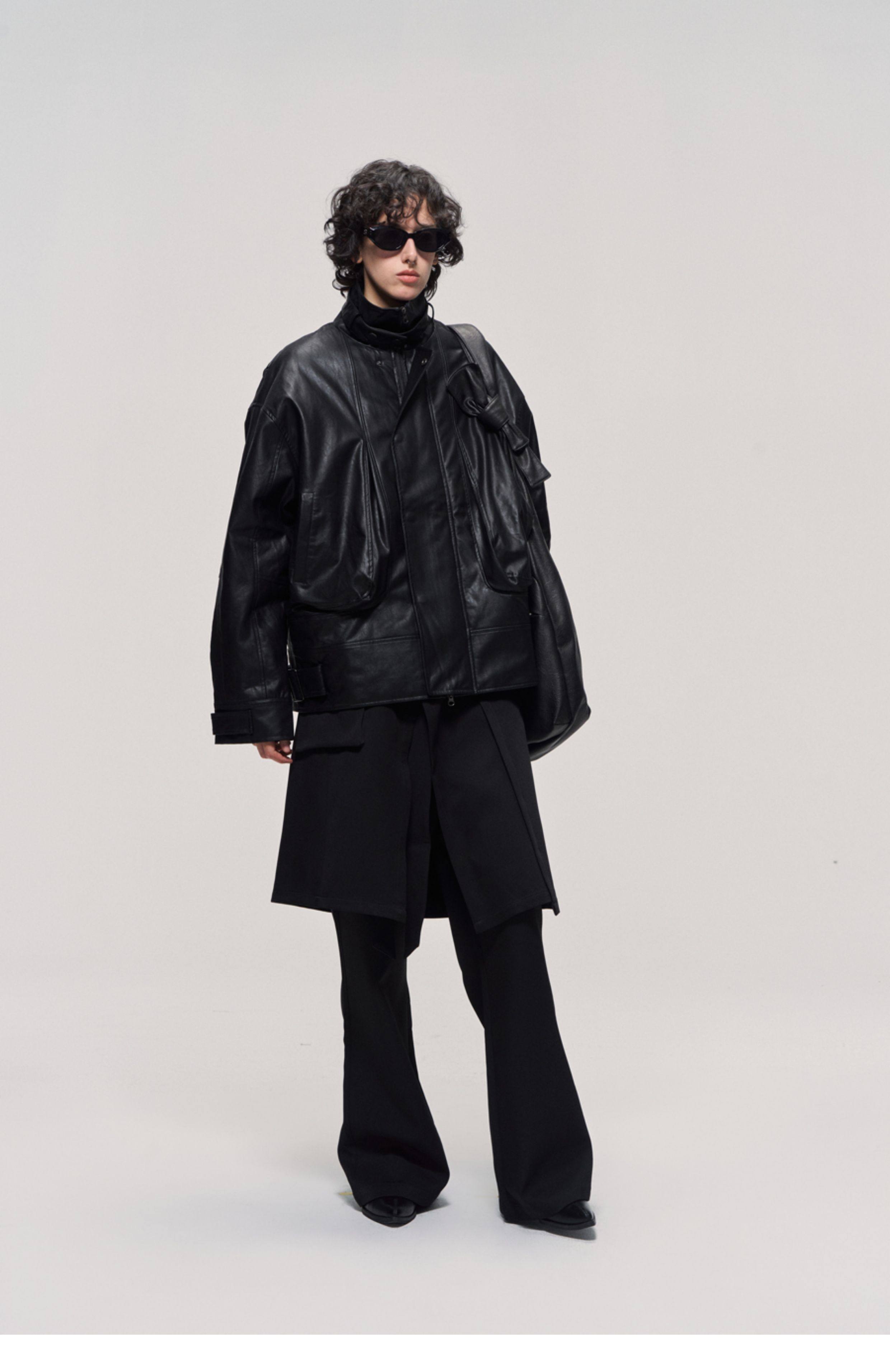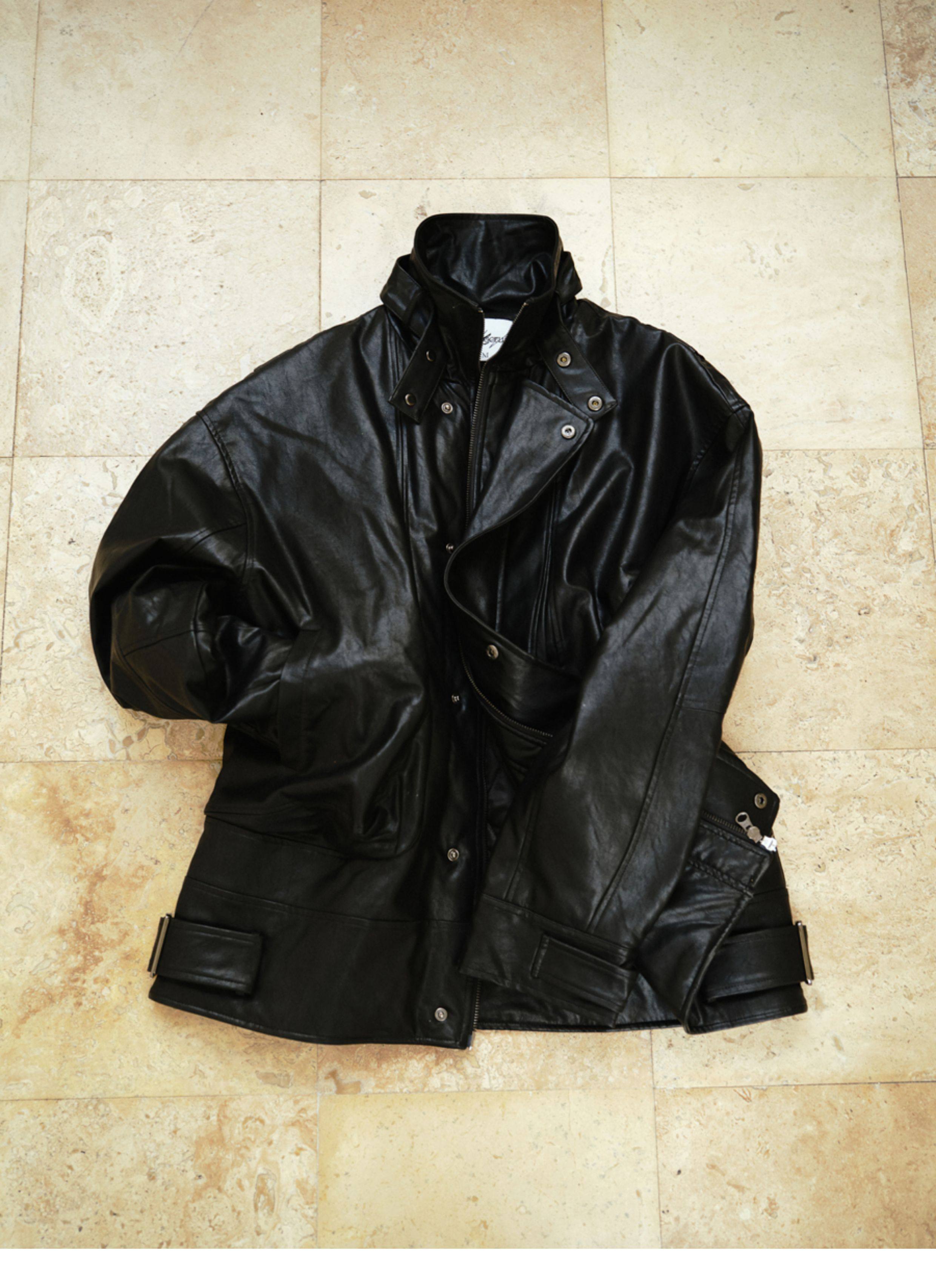 Limpidoculus Washed and Distressed Mid-Length Quilted Stand-Collar Leather Jacket Thick Coat