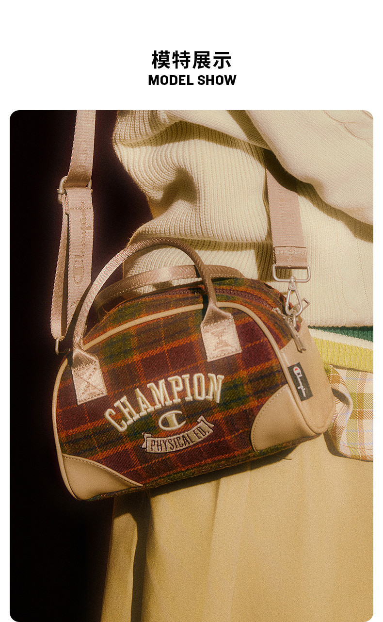 Champion Christmas Series Bowling Bag Women's 24 Winter New Vintage Plaid Crossbody Bag Shoulder Bag