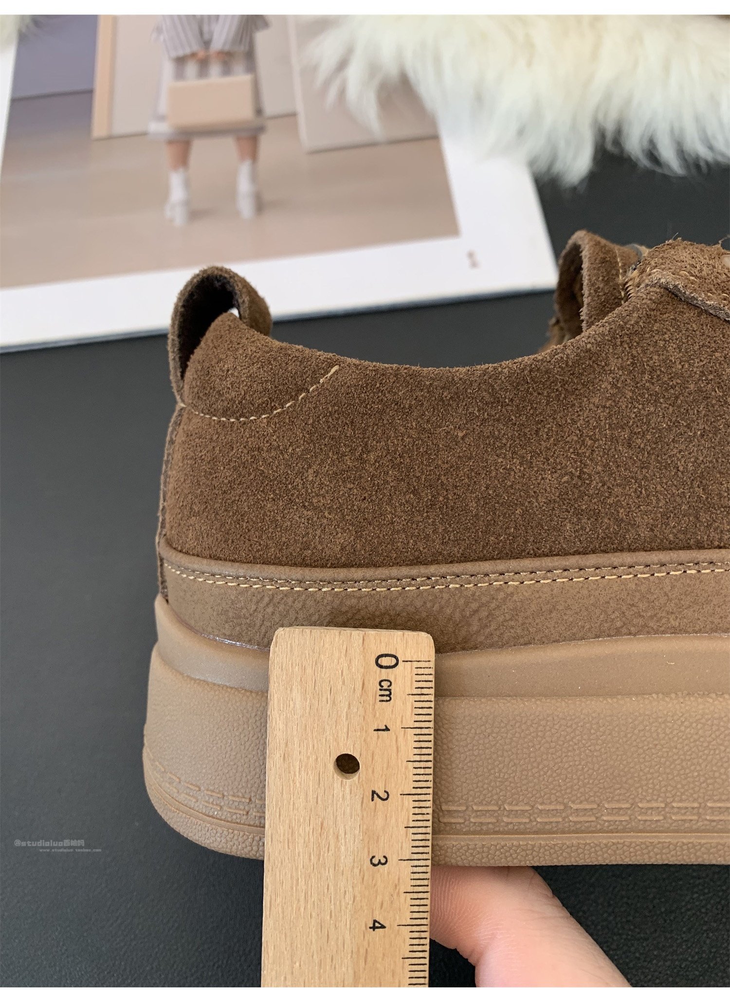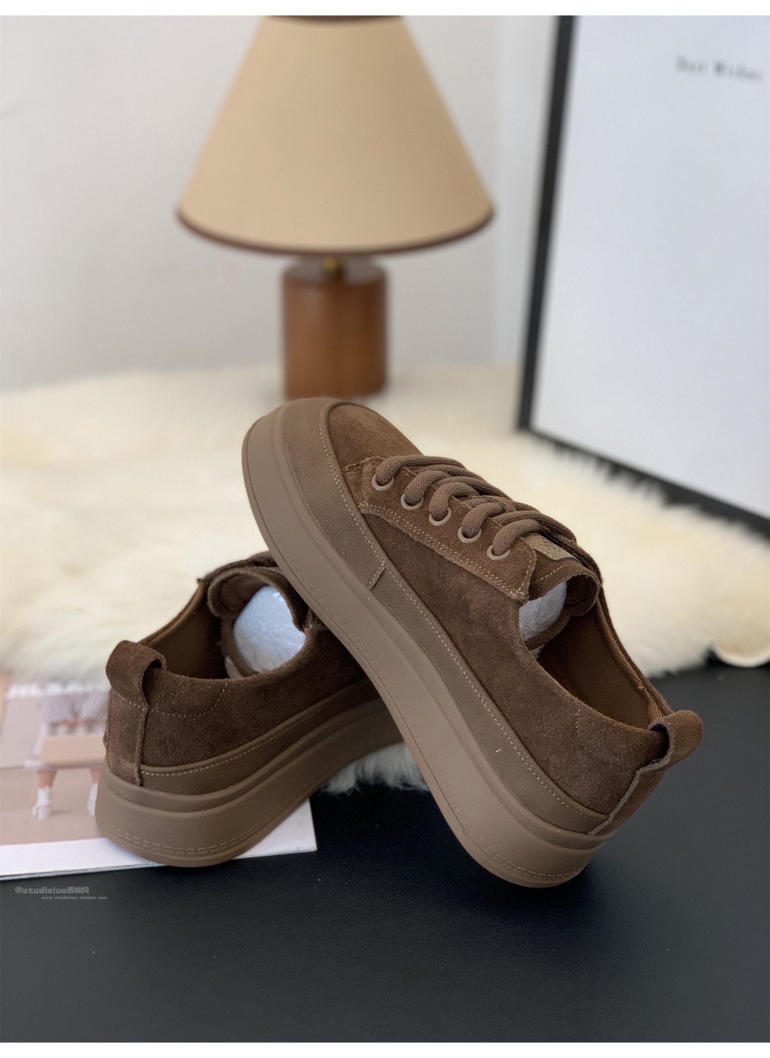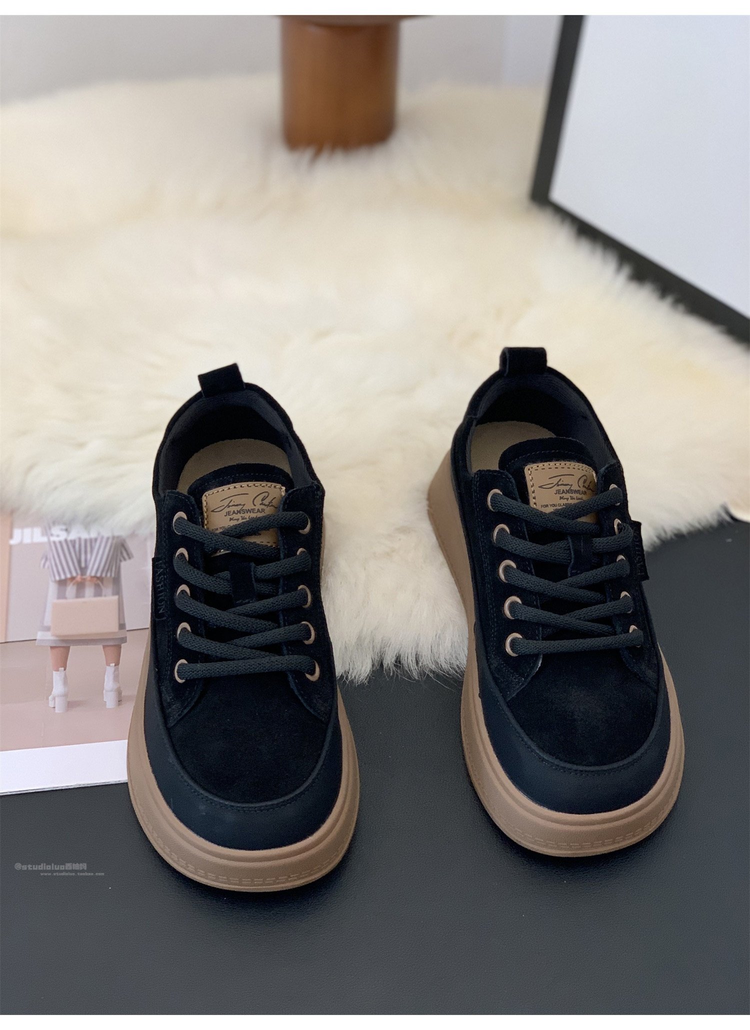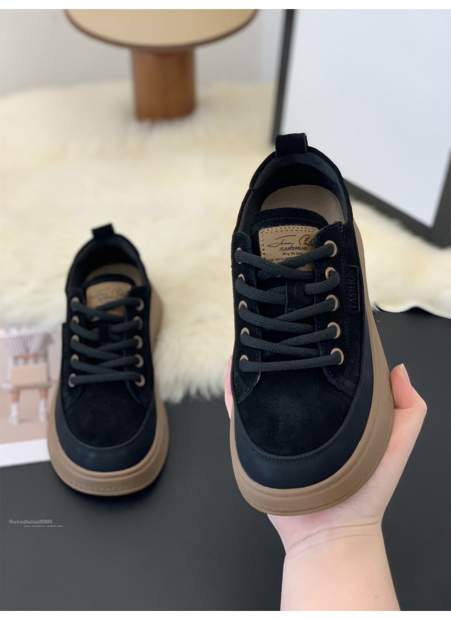 Hong Kong Genuine Leather Thick-Soled Sneakers for Women 2025 Spring and Autumn New Low-Top Retro Style Popular Casual Shoes Korean Style Sports Shoes