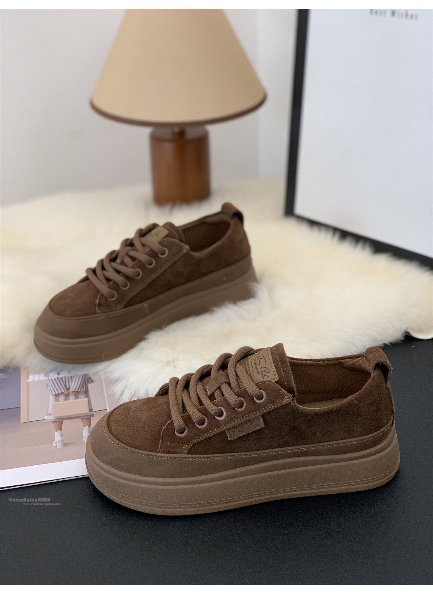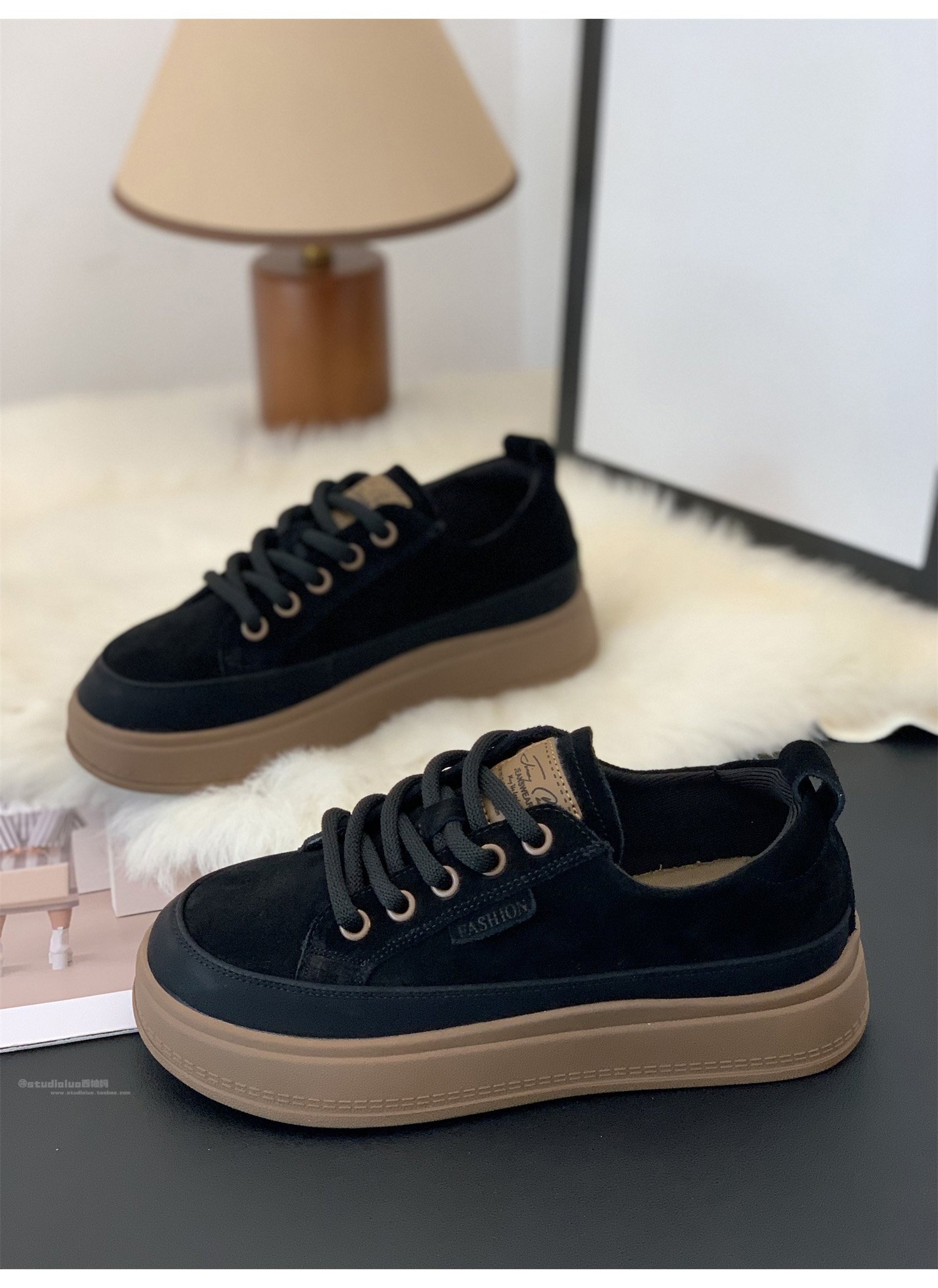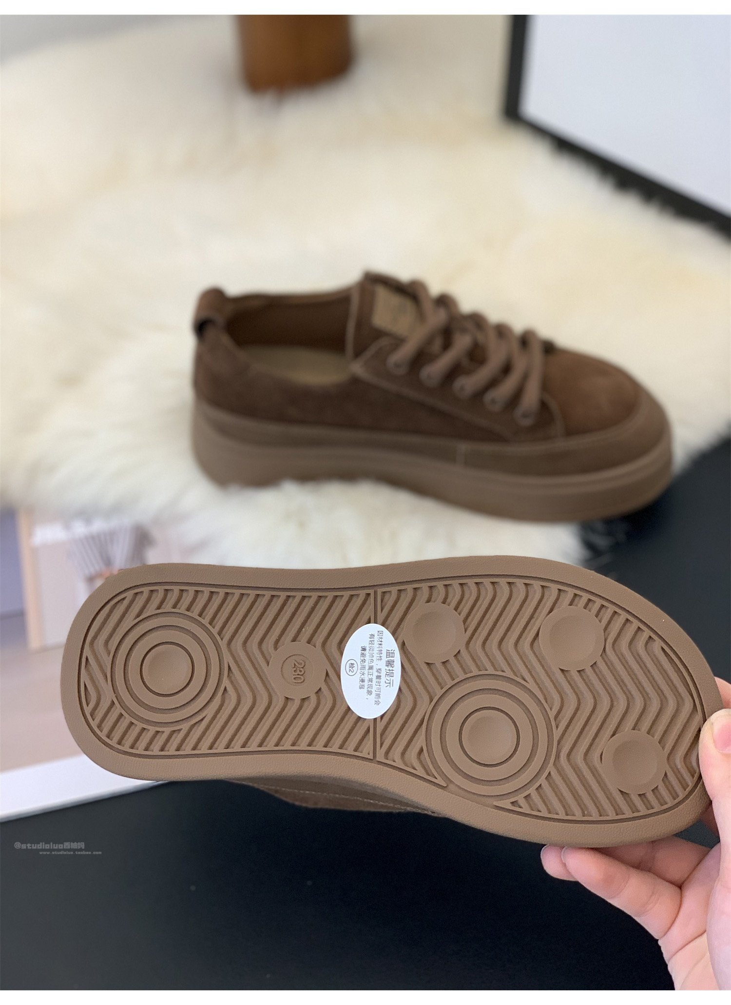 Hong Kong Genuine Leather Thick-Soled Sneakers for Women 2025 Spring and Autumn New Low-Top Retro Style Popular Casual Shoes Korean Style Sports Shoes