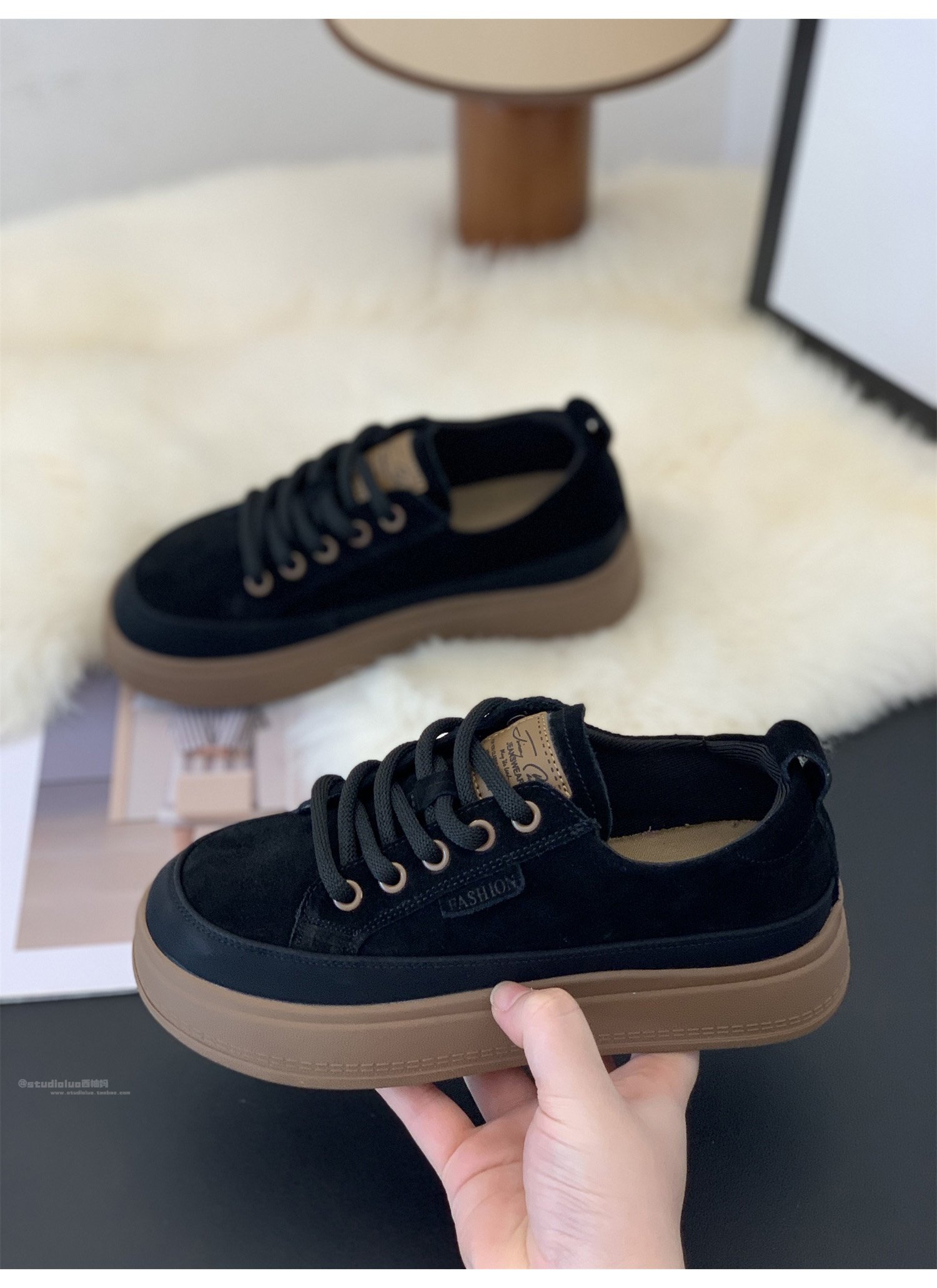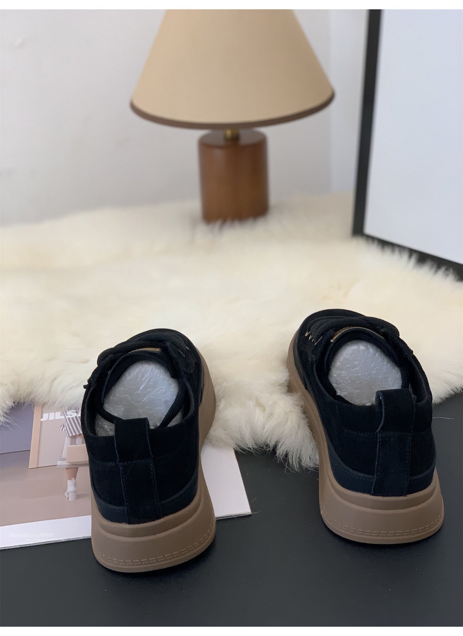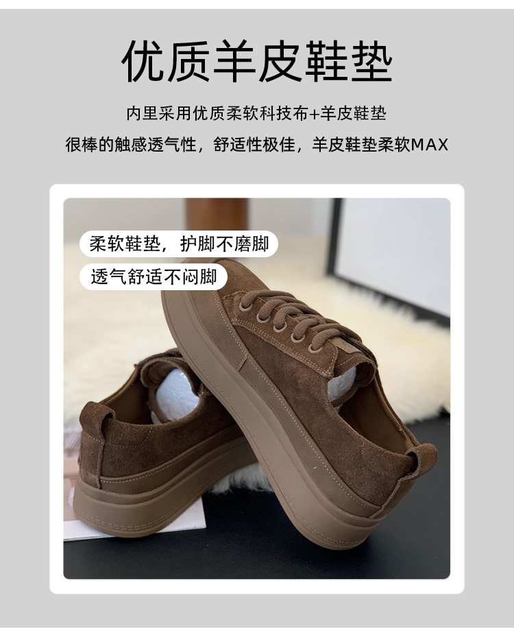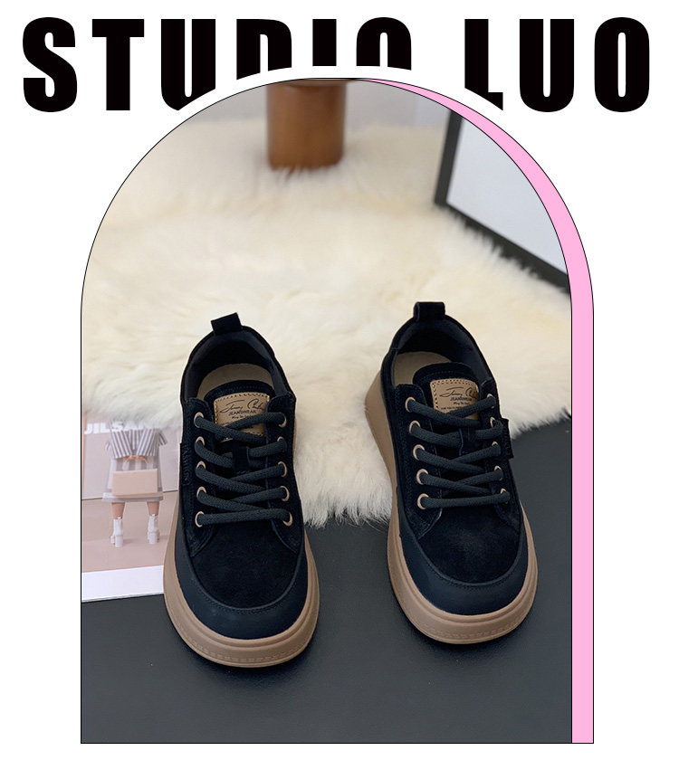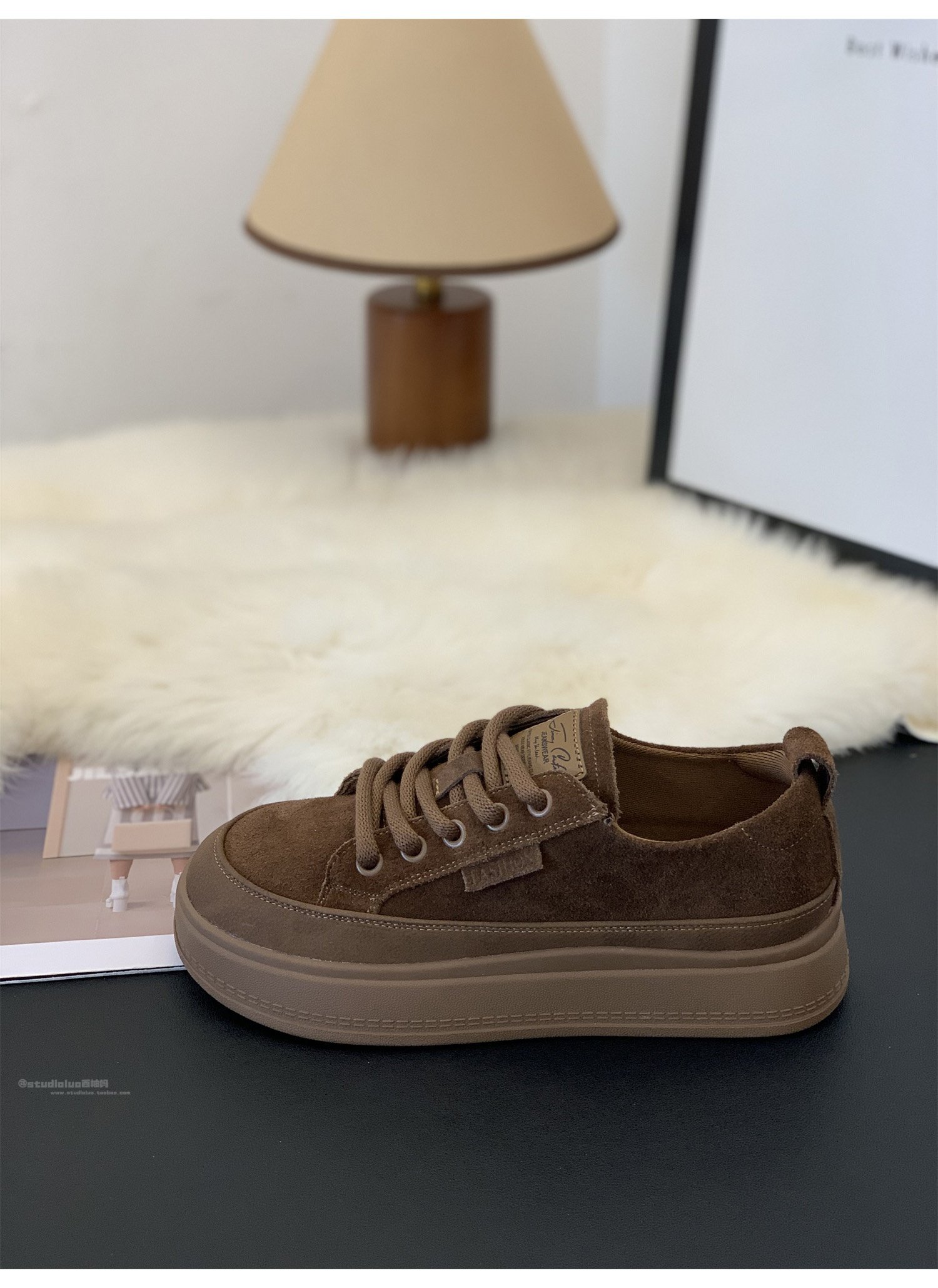 Hong Kong Genuine Leather Thick-Soled Sneakers for Women 2025 Spring and Autumn New Low-Top Retro Style Popular Casual Shoes Korean Style Sports Shoes