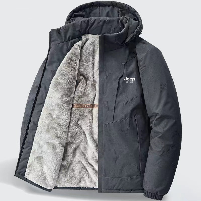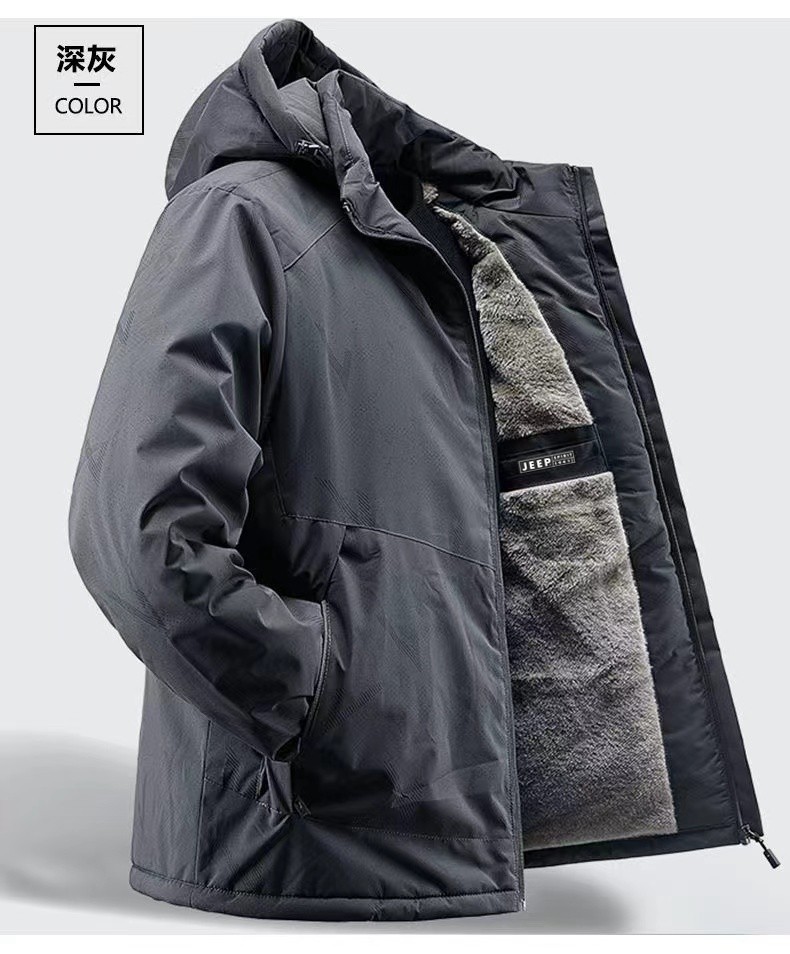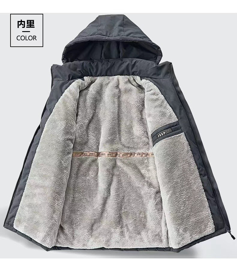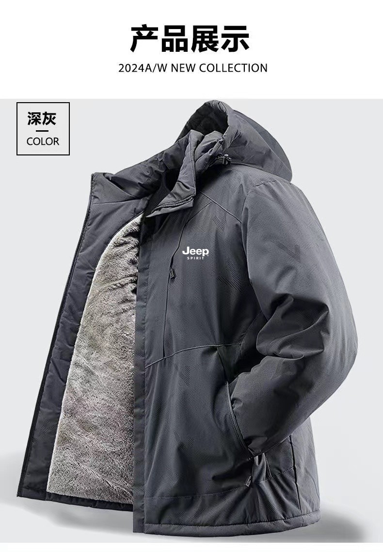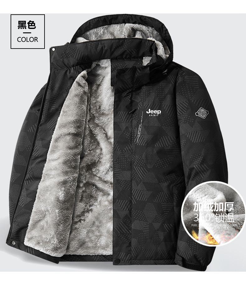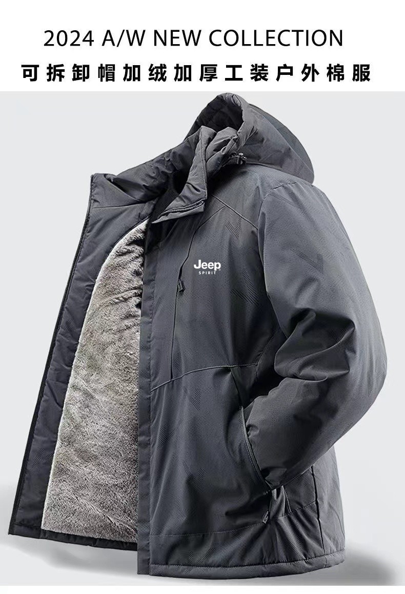 Jeep Spirit Men's Cotton Jacket Winter Fleece-Lined Thickened Warm Cotton Coat Windproof Breathable Softshell Cotton Jacket for Men