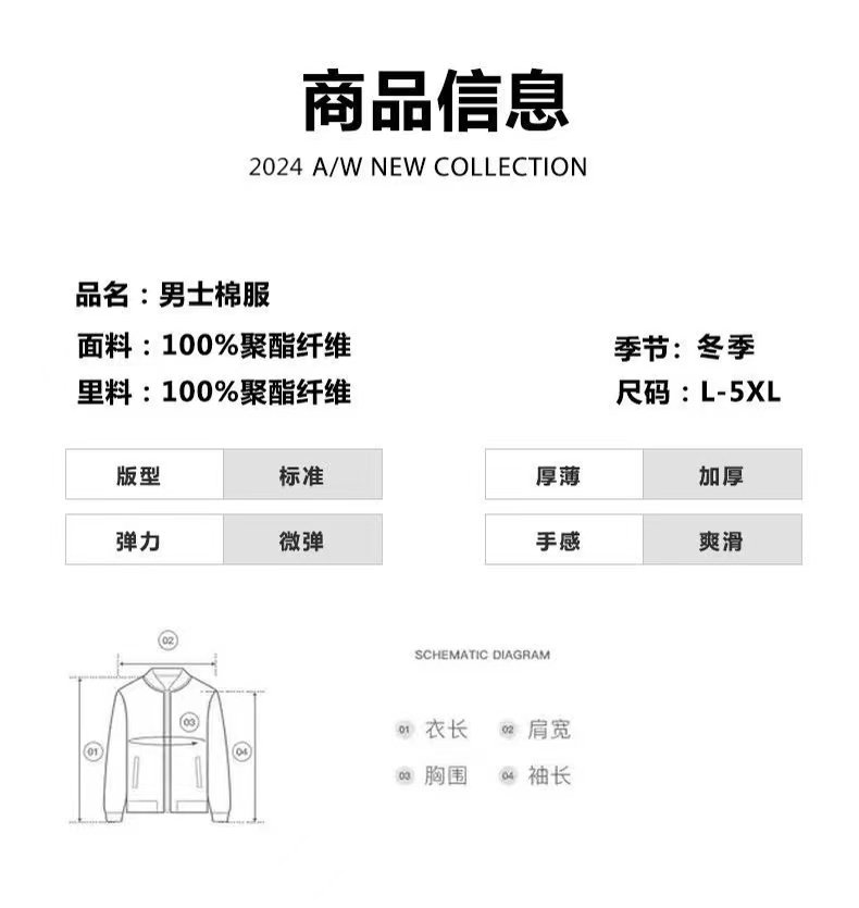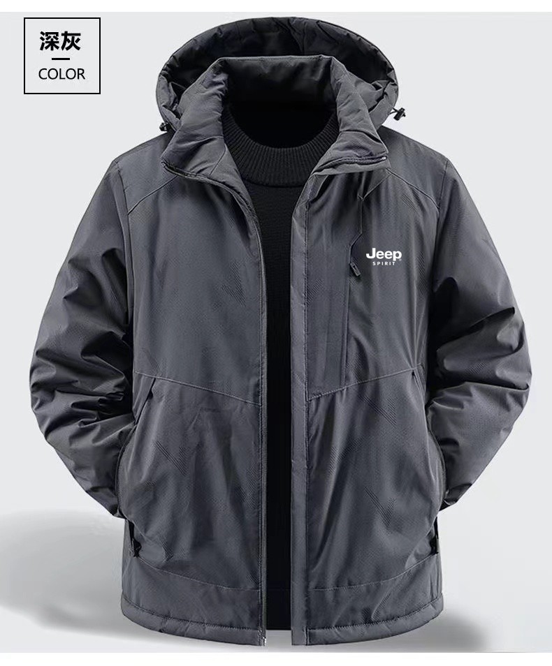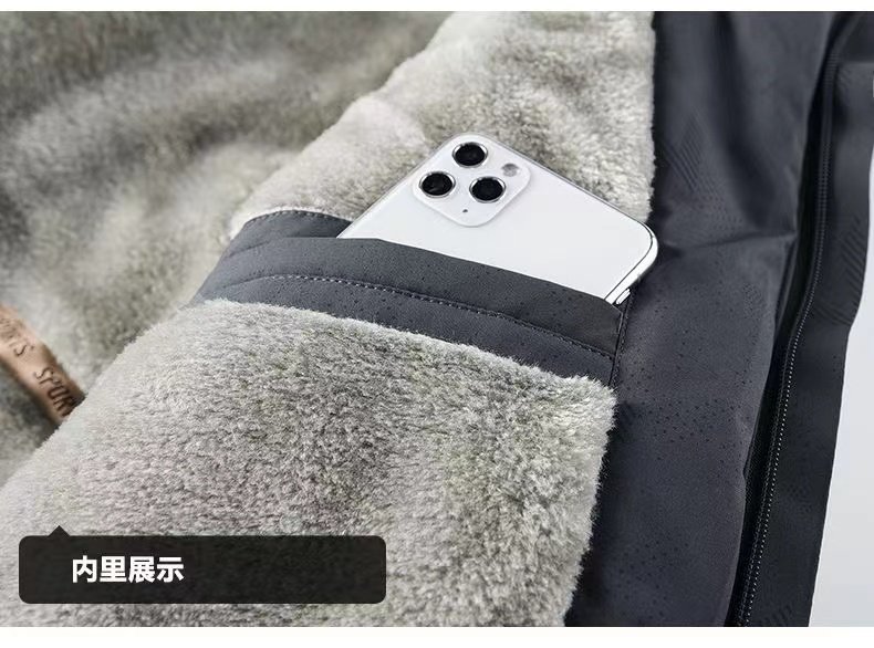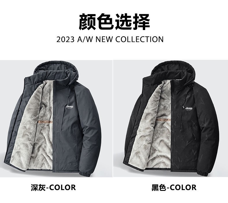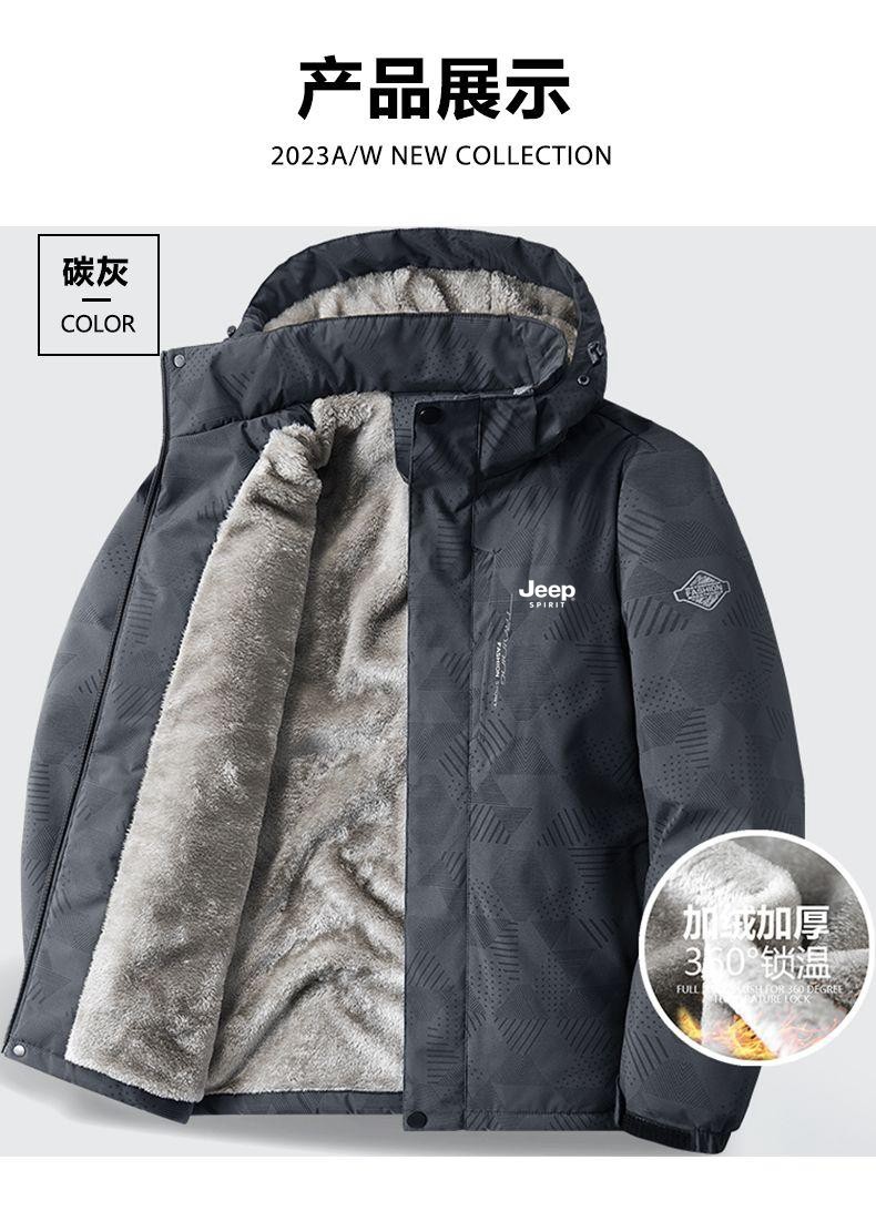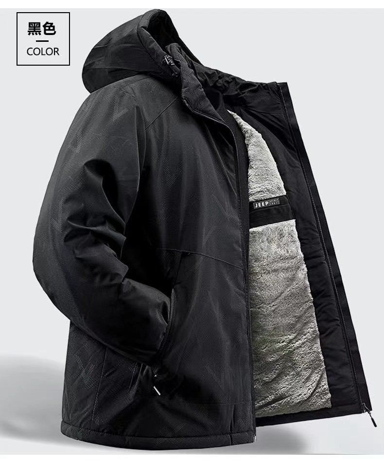 Jeep Spirit Men's Cotton Jacket Winter Fleece-Lined Thickened Warm Cotton Coat Windproof Breathable Softshell Cotton Jacket for Men