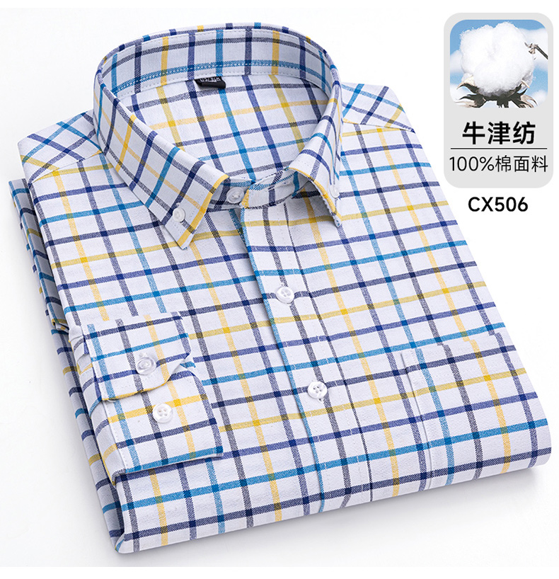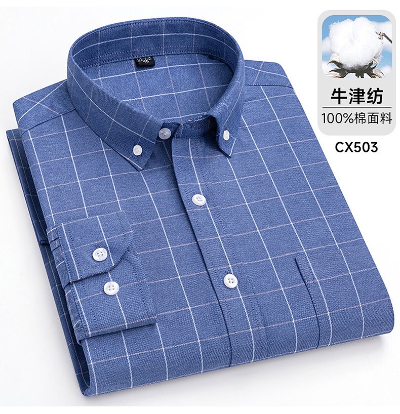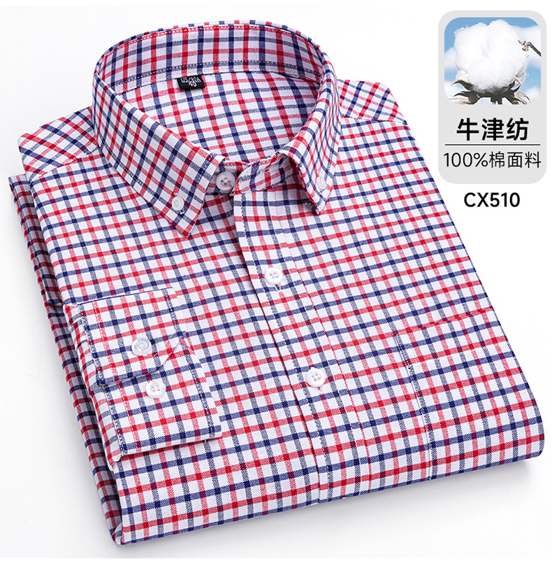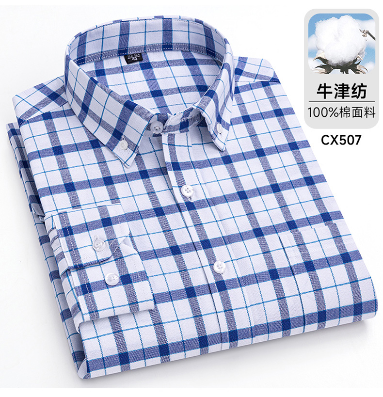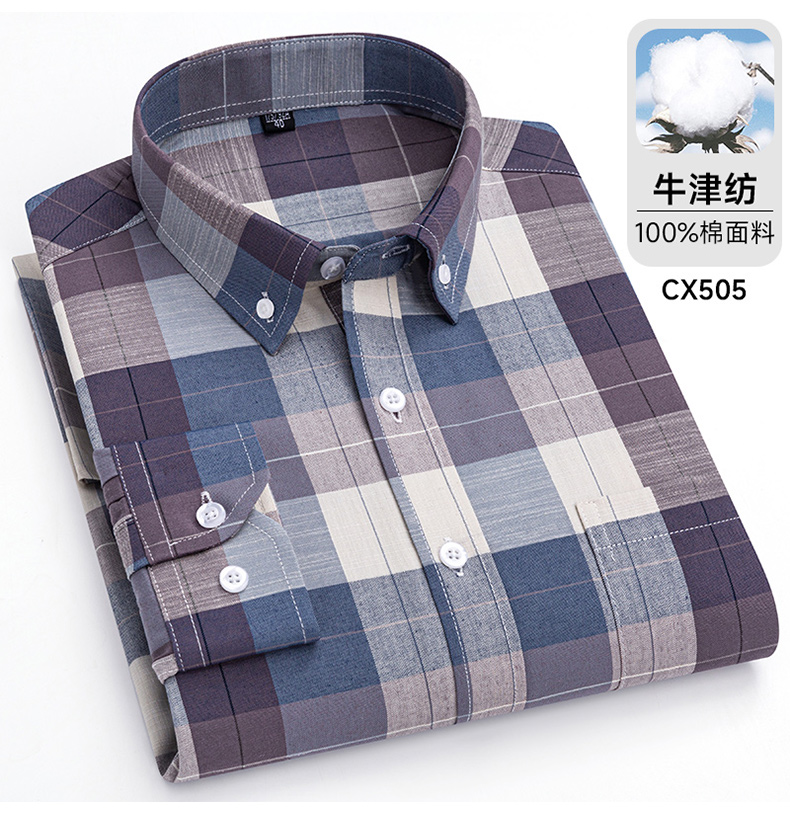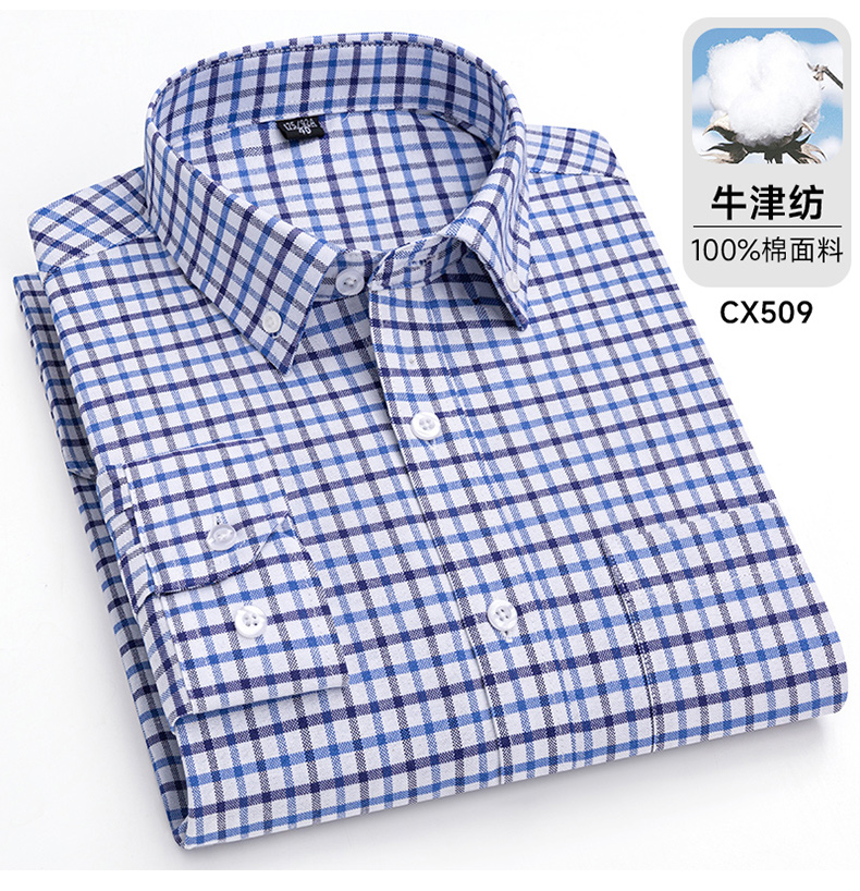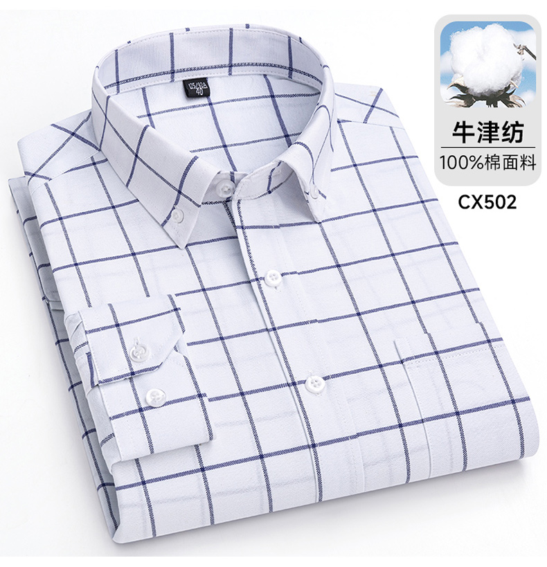 Paul 100% Pure Cotton Plaid Shirt Men's Long-Sleeved Spring and Autumn Casual Cotton Oxford Shirt for Young and Middle-Aged People Large Size