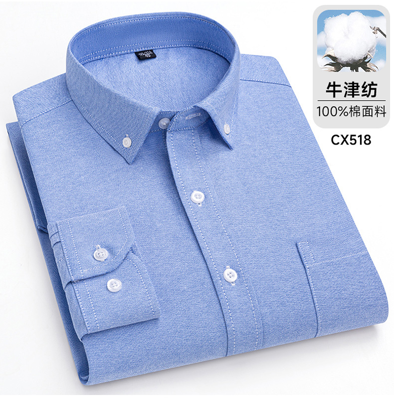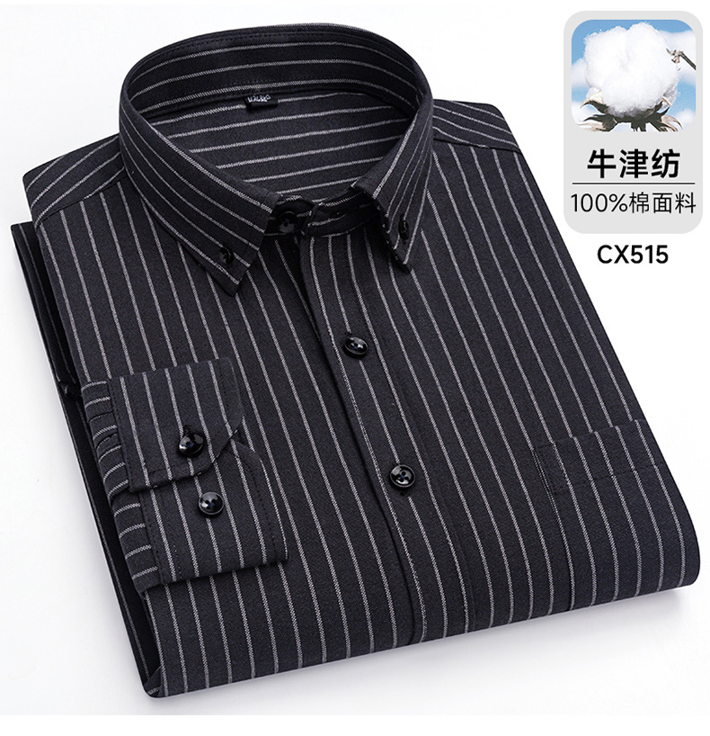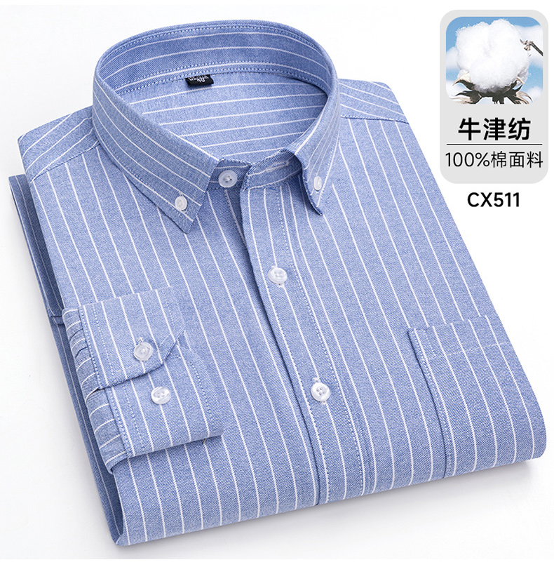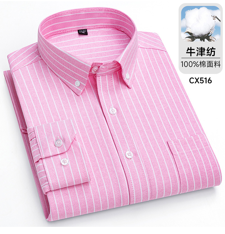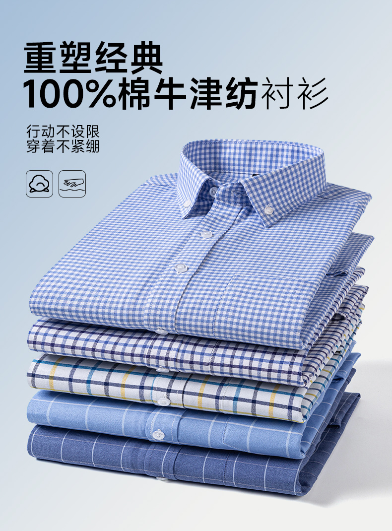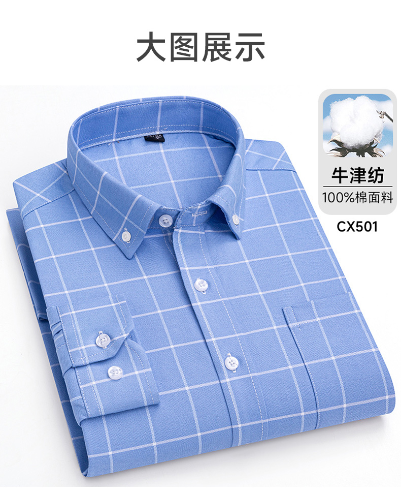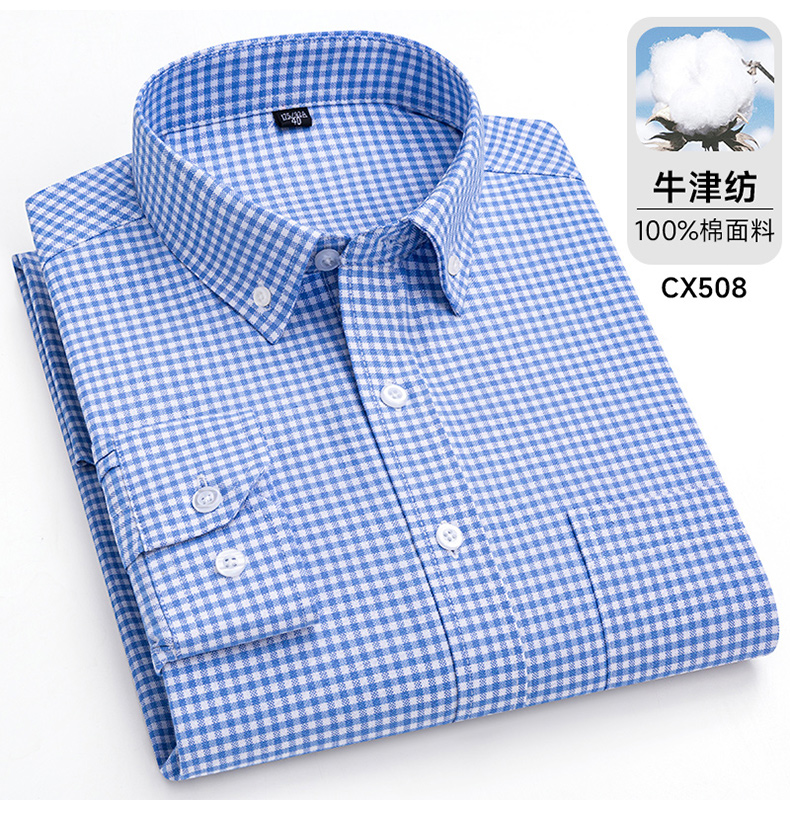 Paul 100% Pure Cotton Plaid Shirt Men's Long-Sleeved Spring and Autumn Casual Cotton Oxford Shirt for Young and Middle-Aged People Large Size