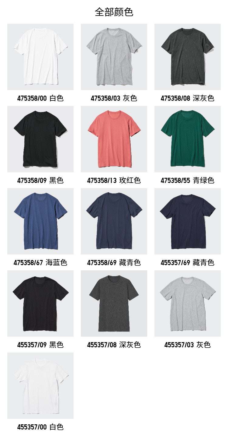 Uniqlo Men's and Women's Clothing Couple Versatile T-Shirt Quick-Drying Round Neck T-Shirt Short-Sleeved Plain T-Shirt Base Layer 475358