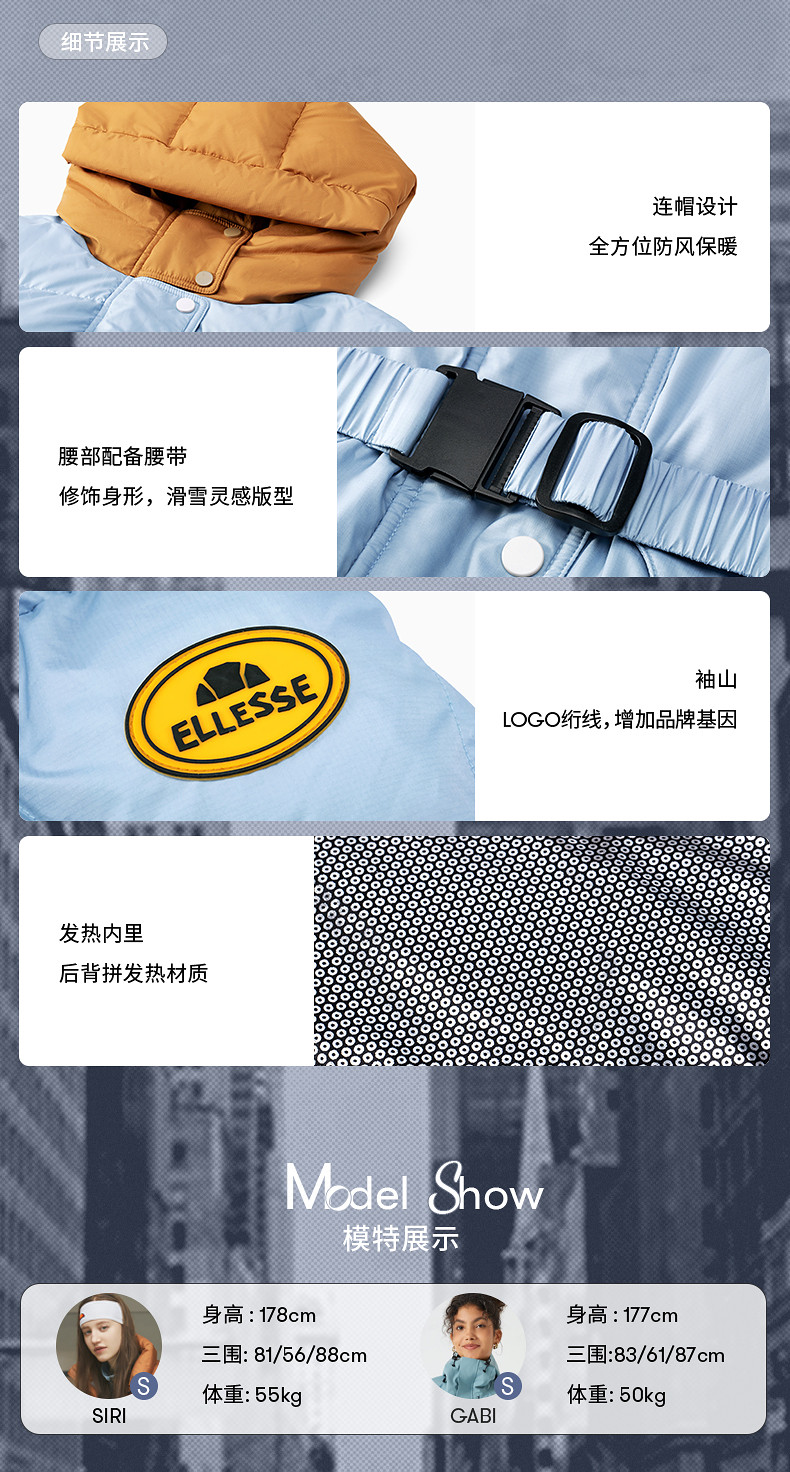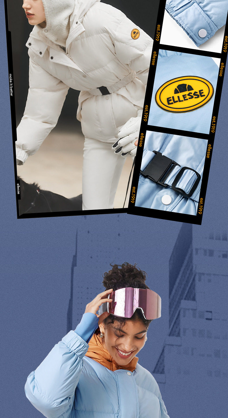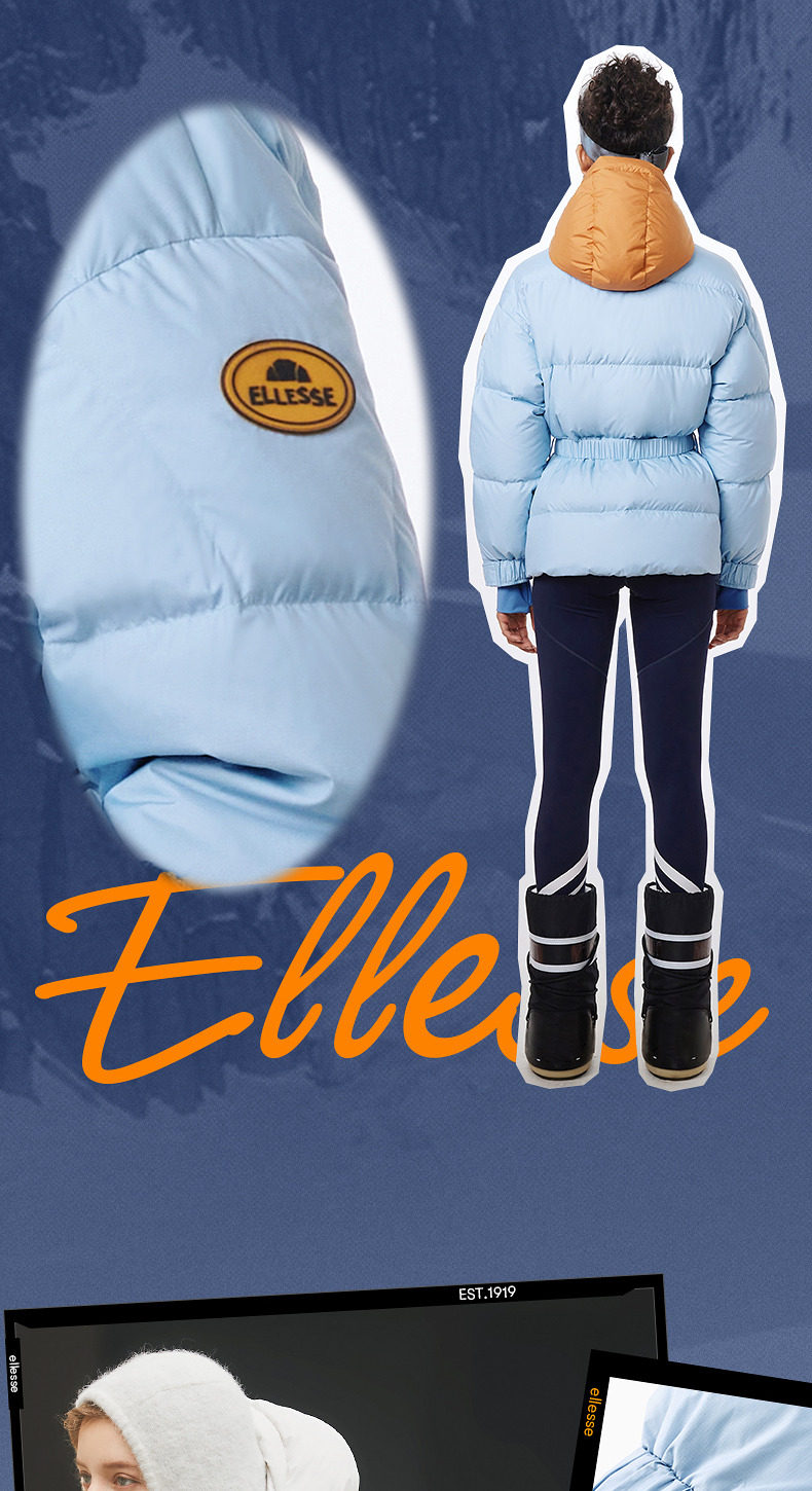 Ellesse Small Shell Autumn and Winter New Slim Fit Warm down Jacket Sports Lightweight Waist-Cinching Ski Jacket for Women