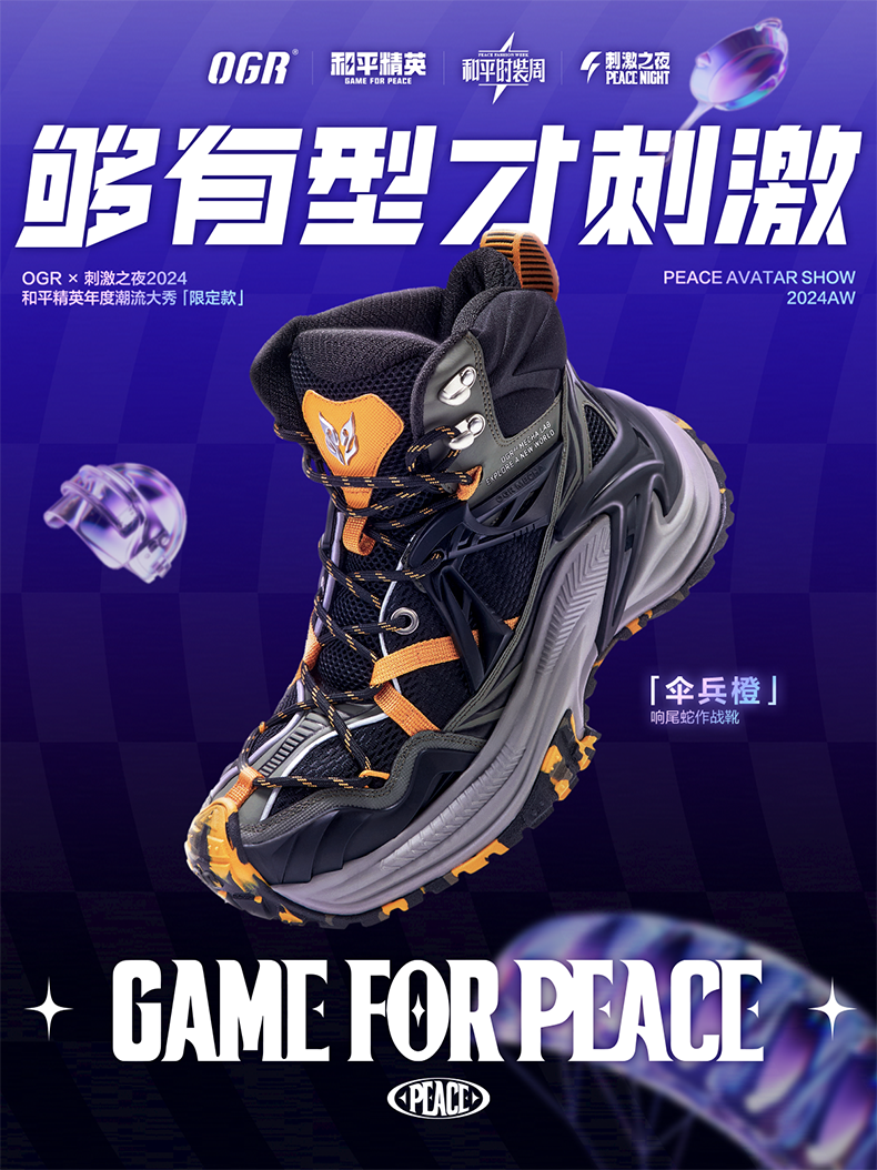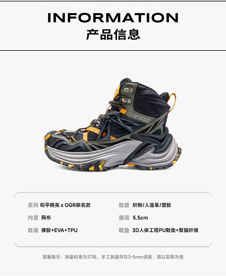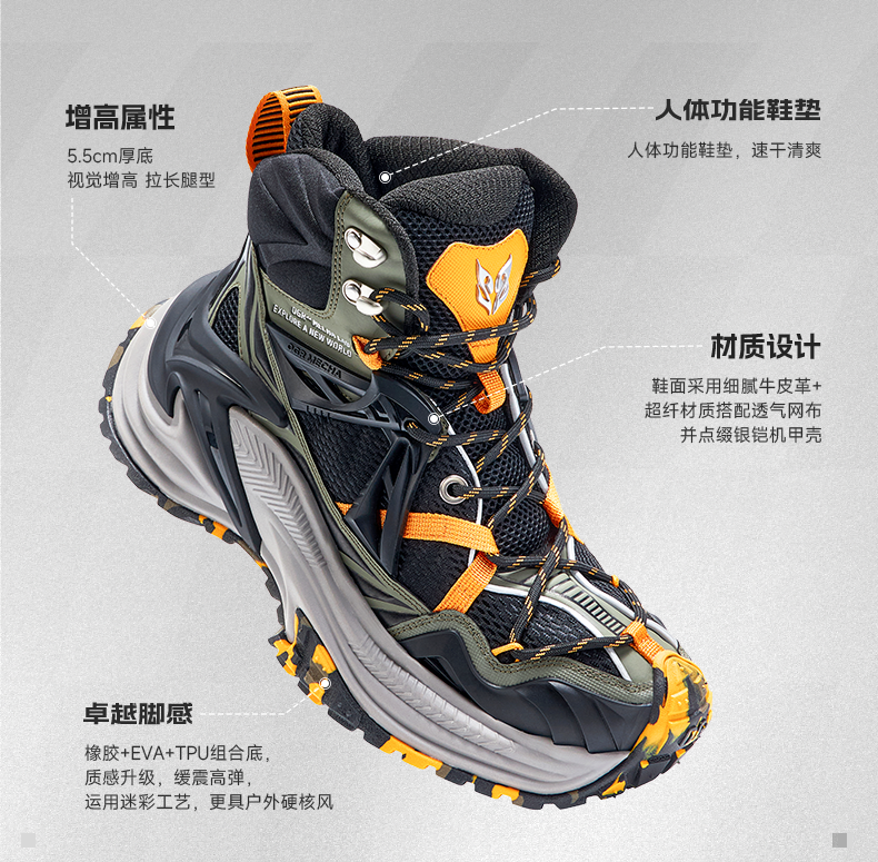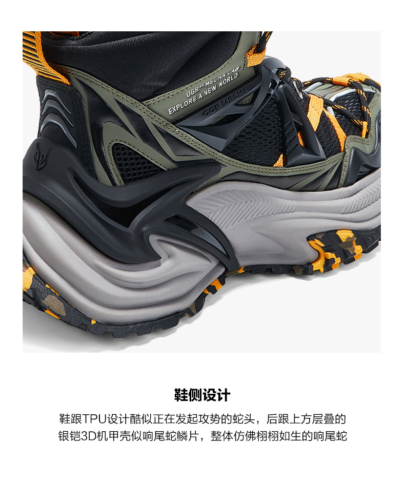 【Ogrx Peace Elite Collaboration】Rattlesnake High-Top Shoes Thick-Soled Height-Increasing Dad Shoes Sports Autumn/Winter New Model