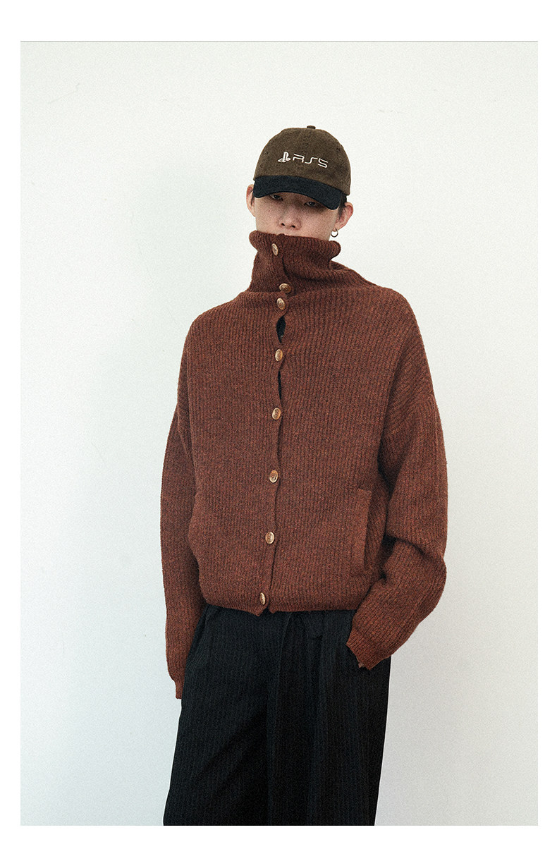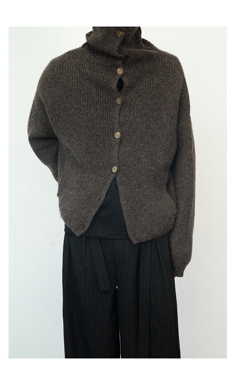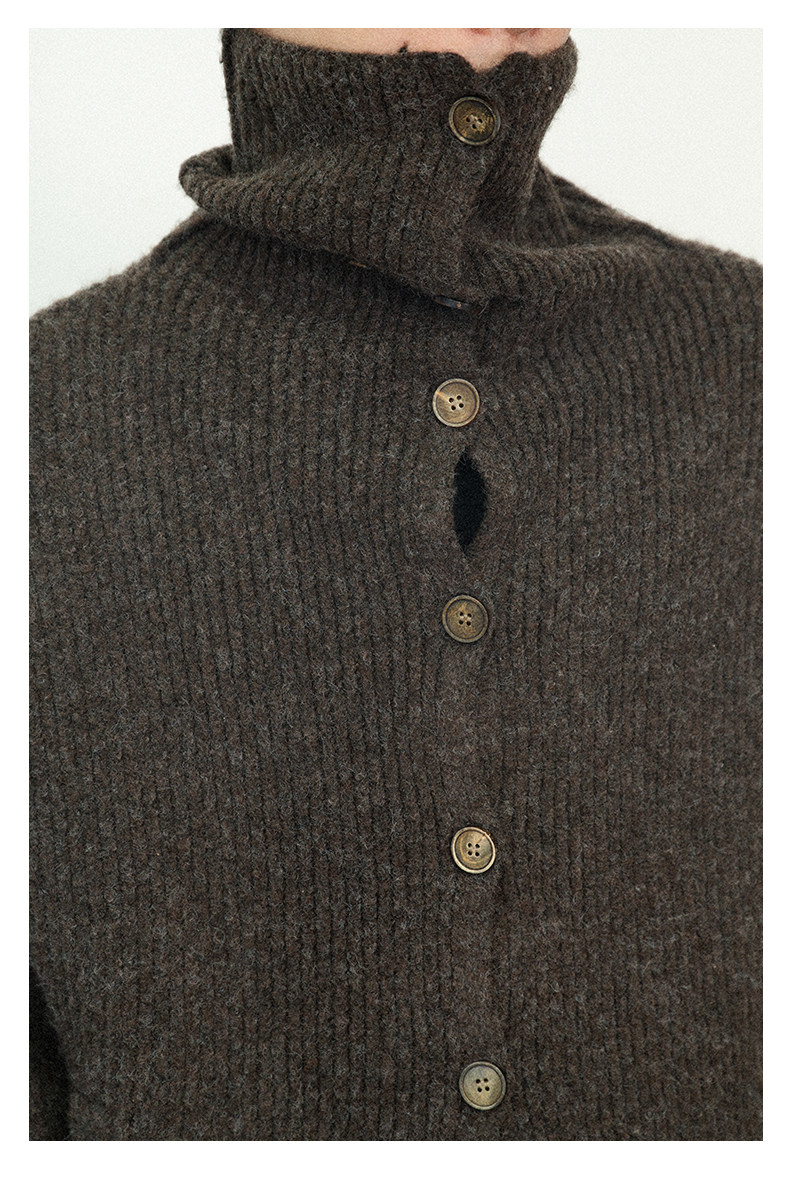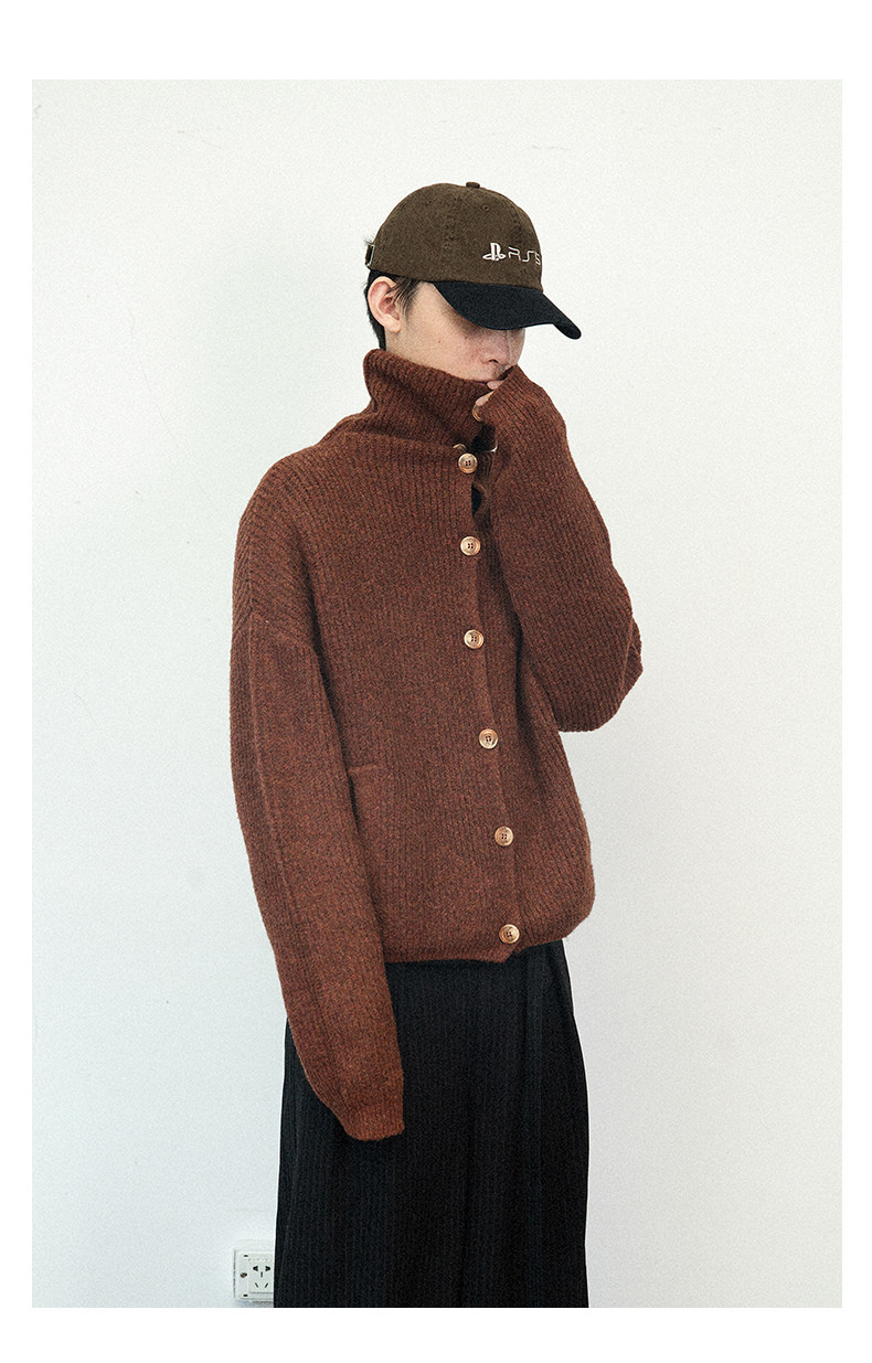 Not Ugly 24Aw Mottled High-Neck Cuffed Wool Vintage Multi-Button Short Knit Sweater Cardigan